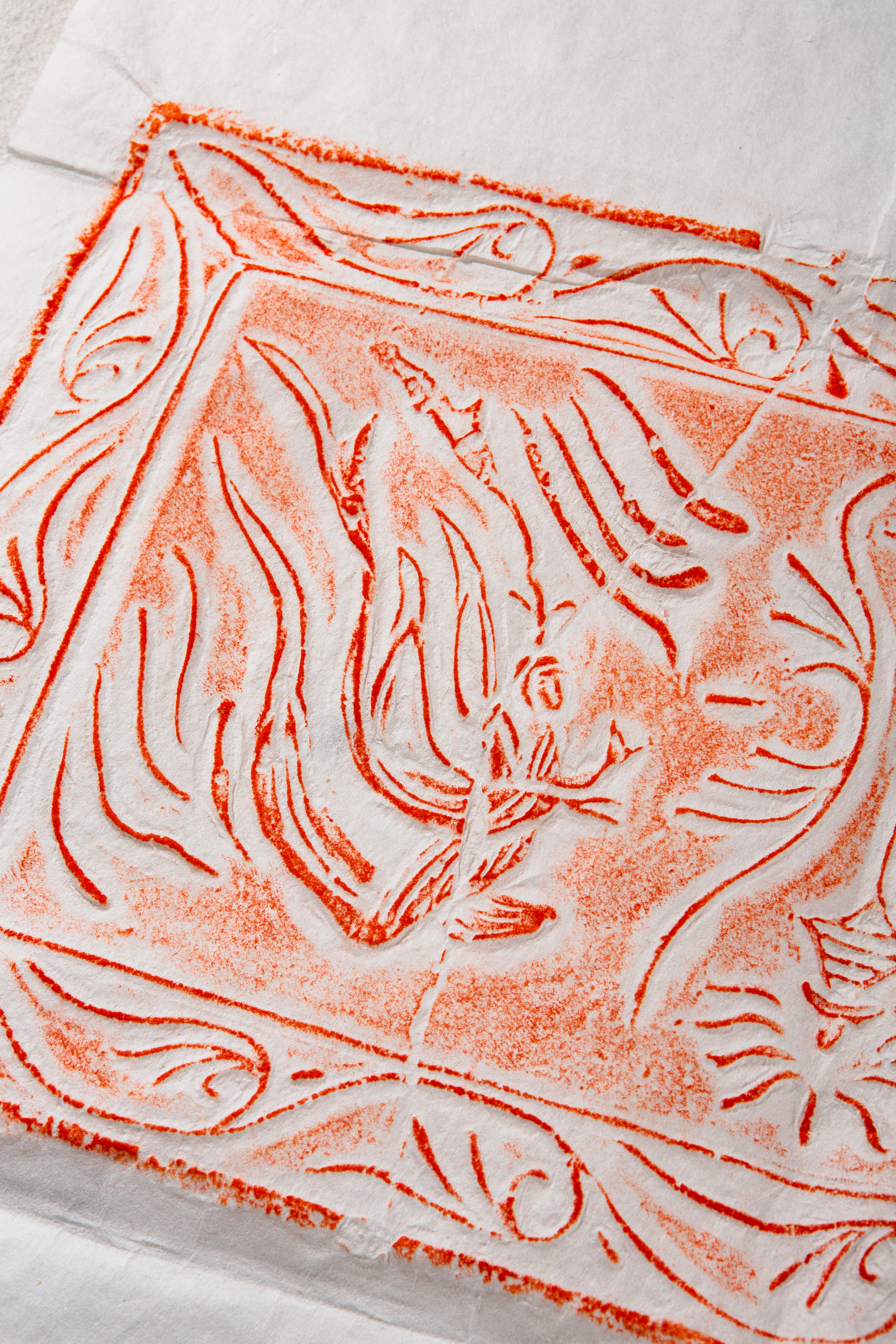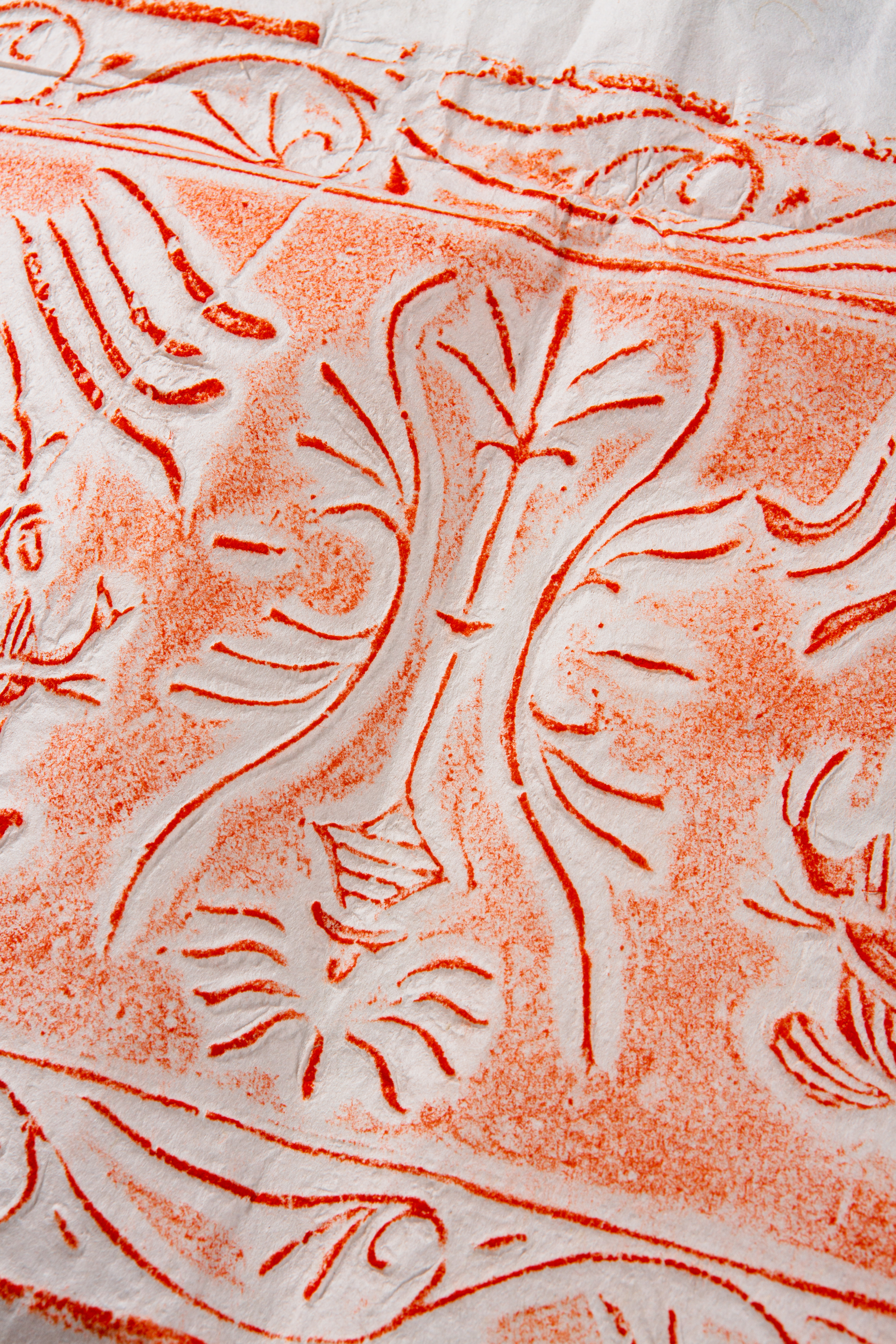 80年代天津杨柳青画店制木版水印草叶纹大画笺(单张)