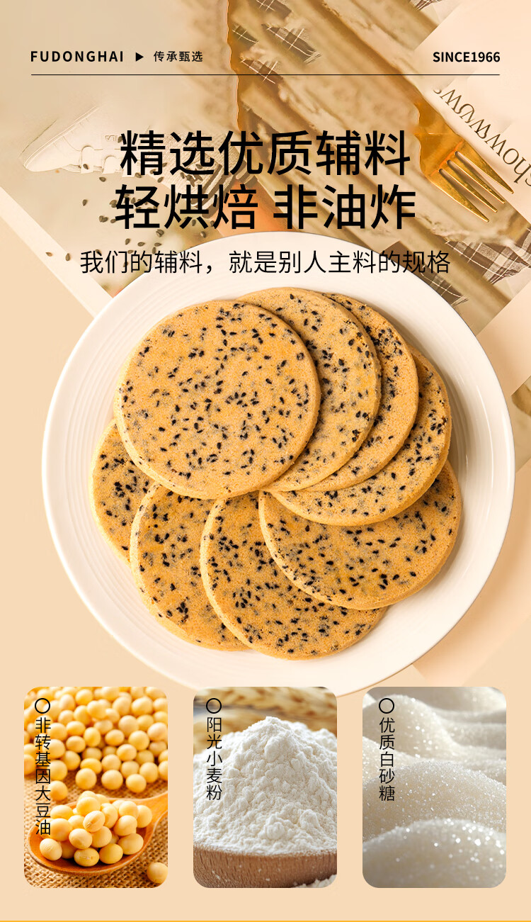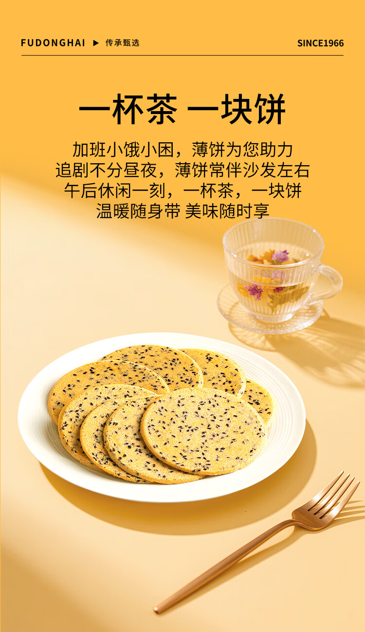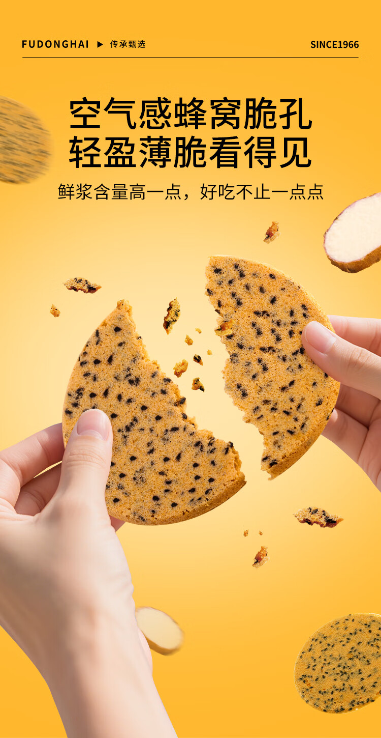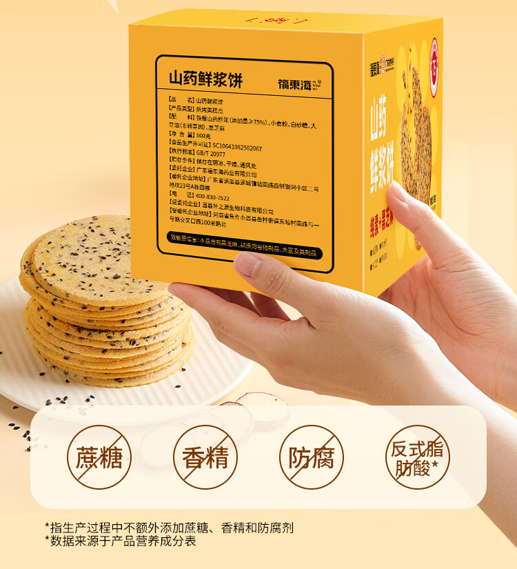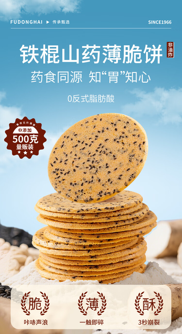 福东海 山药鲜浆薄脆饼500g 黑芝麻饼干孕妇休闲零食 饱腹粗粮独立包装