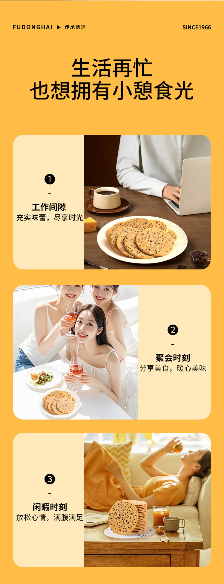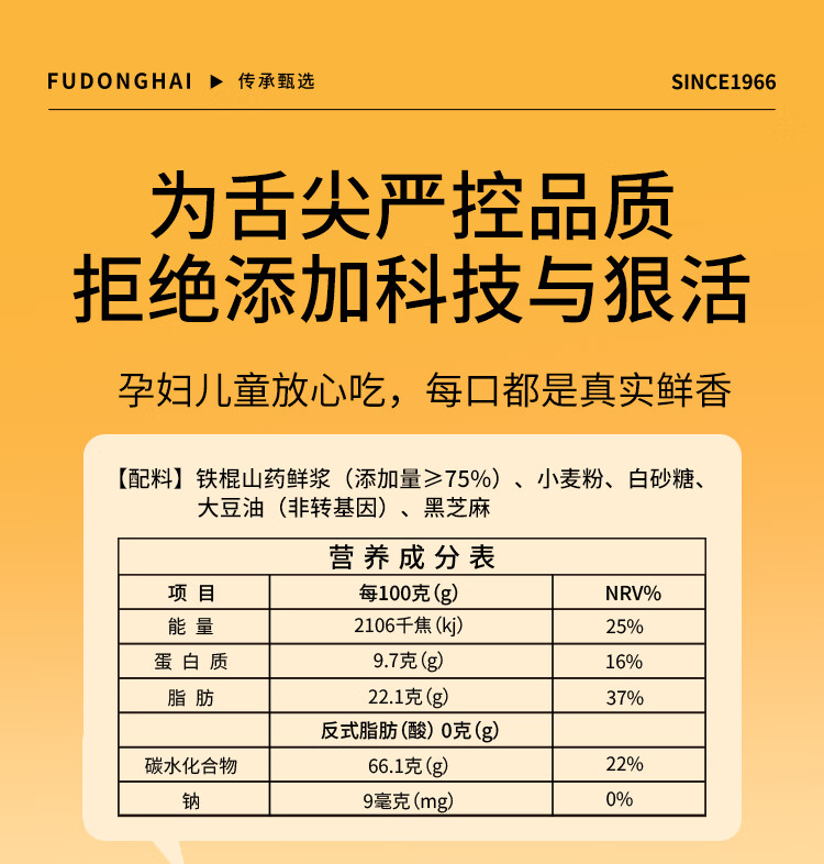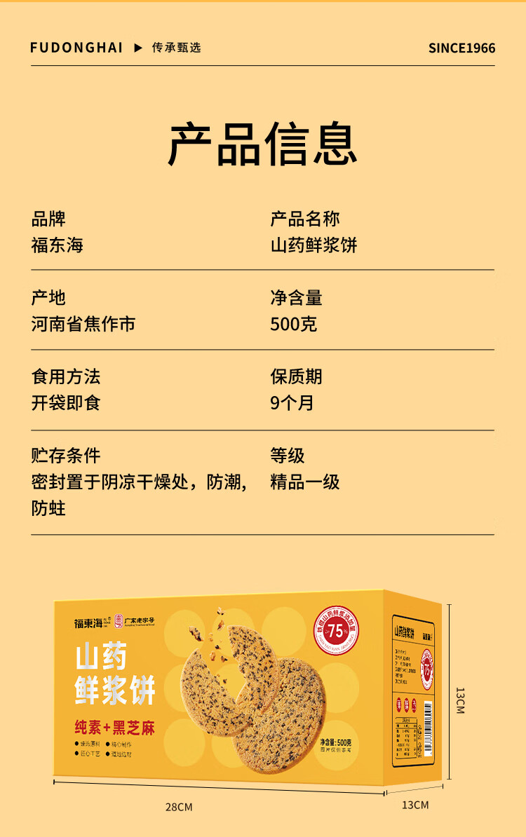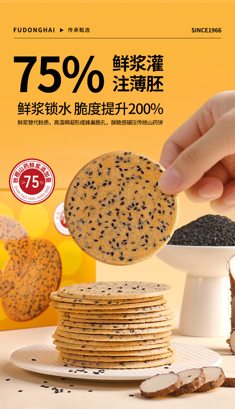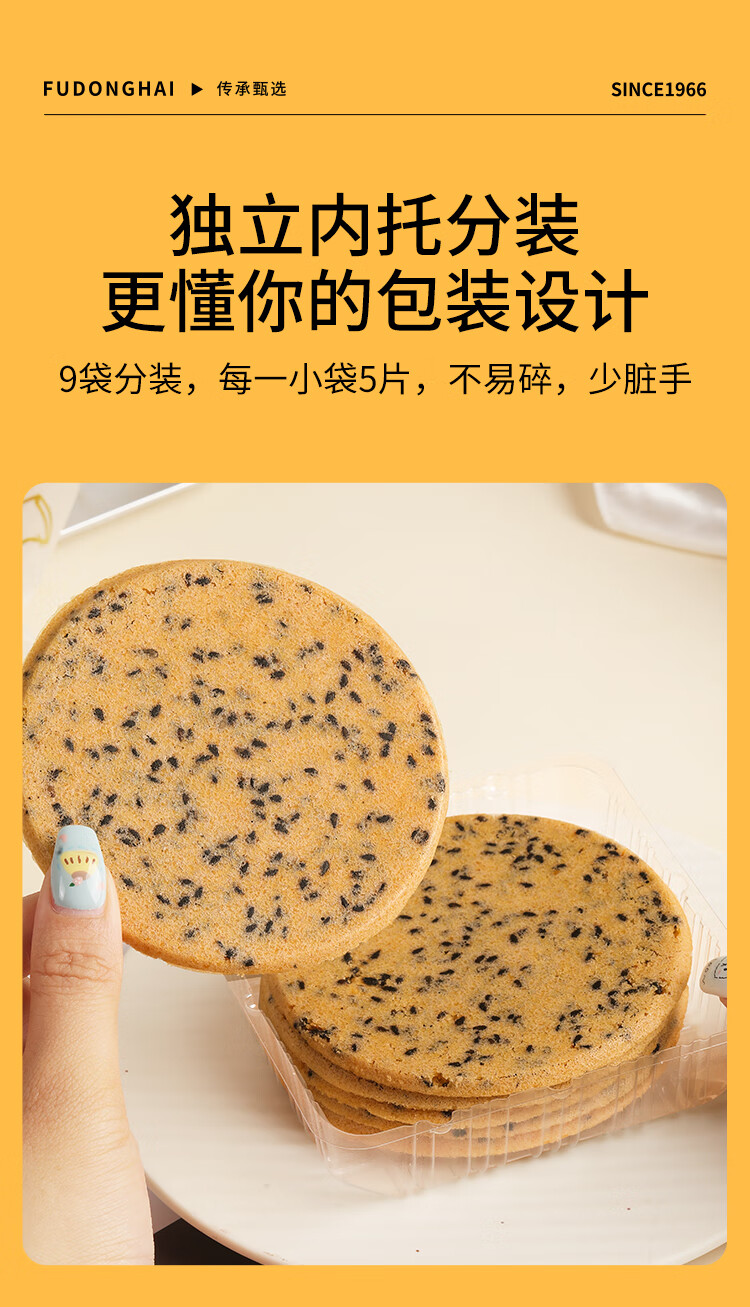福东海 山药鲜浆薄脆饼500g 黑芝麻饼干孕妇休闲零食 饱腹粗粮独立包装
