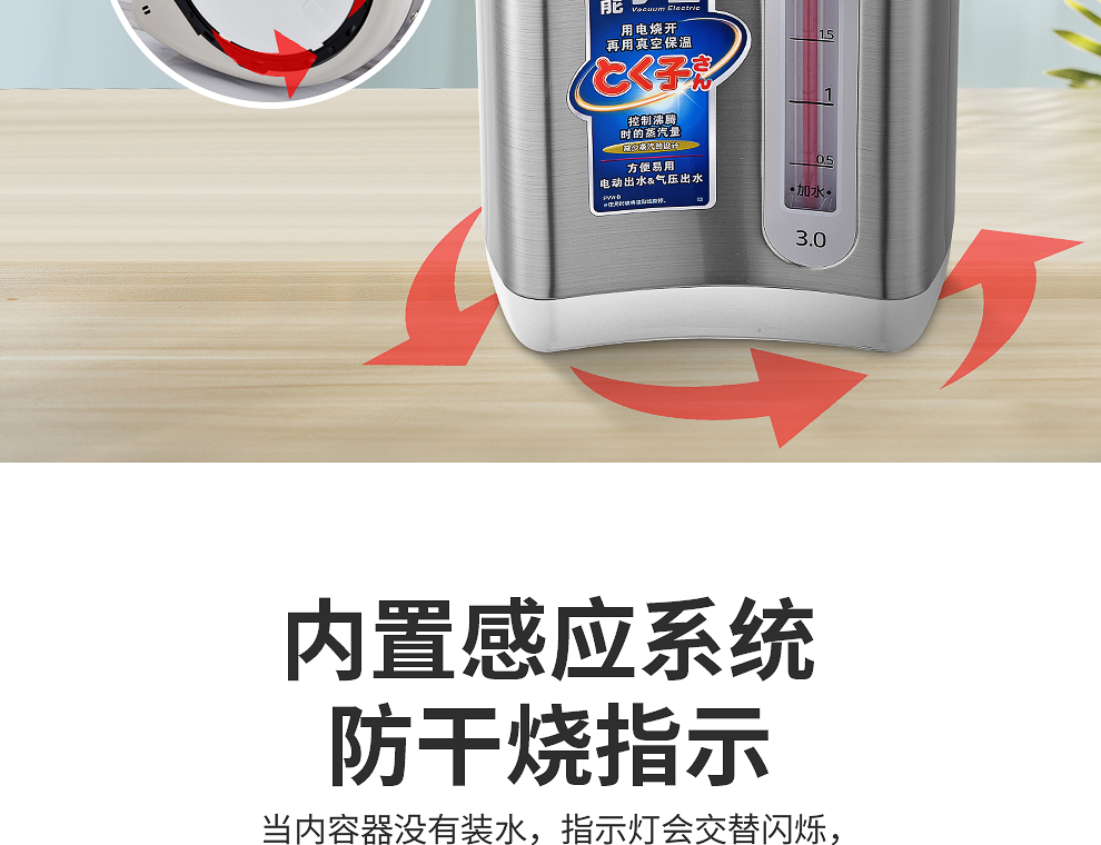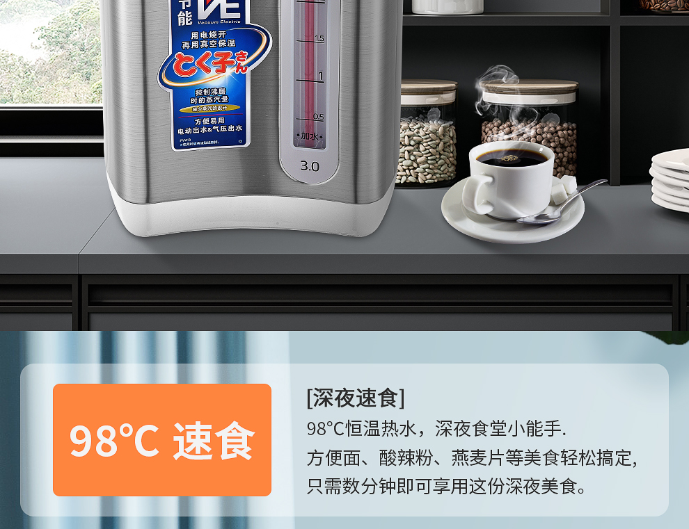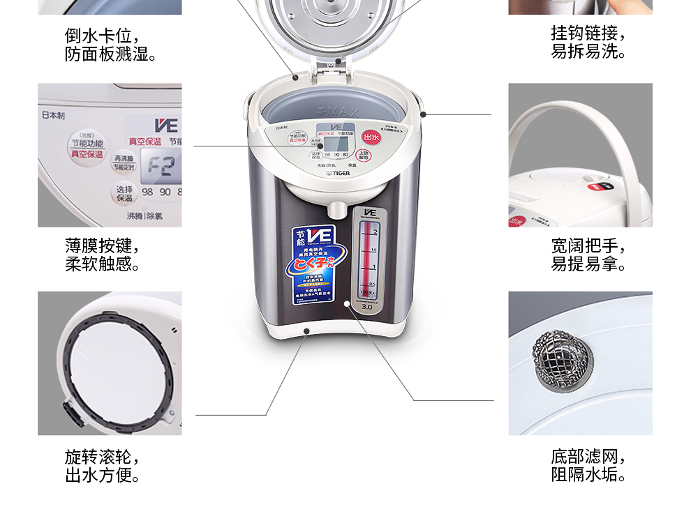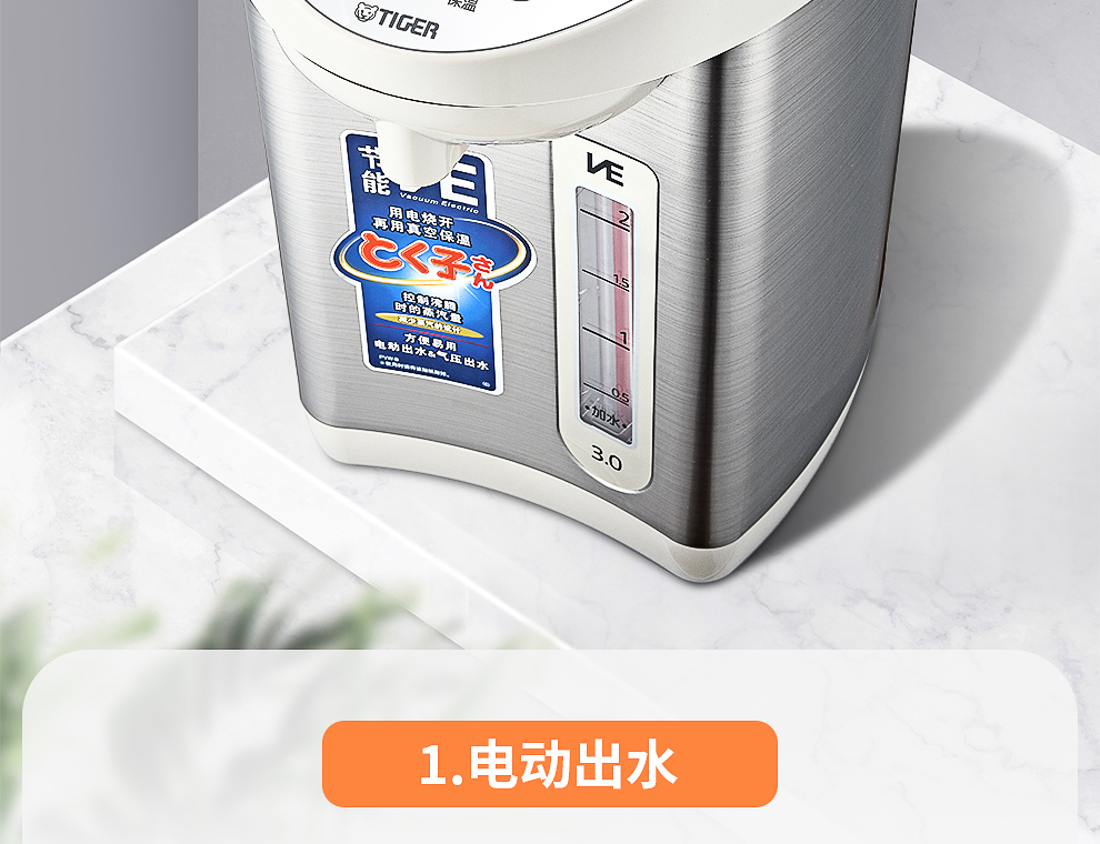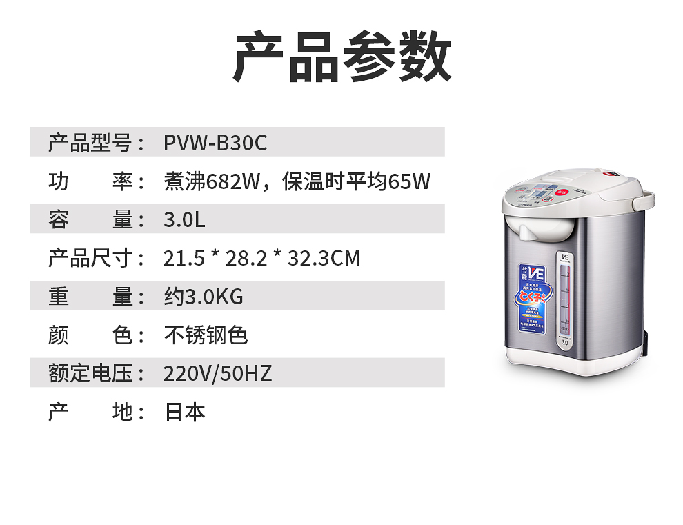 【6F】虎牌(Tiger)电热水瓶电水壶热水壶真空保温日本原装进口PVW-B30C 3L