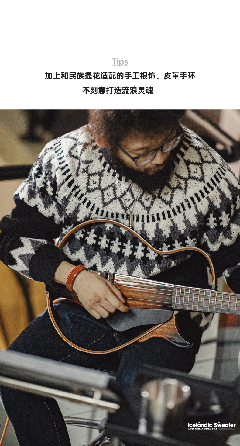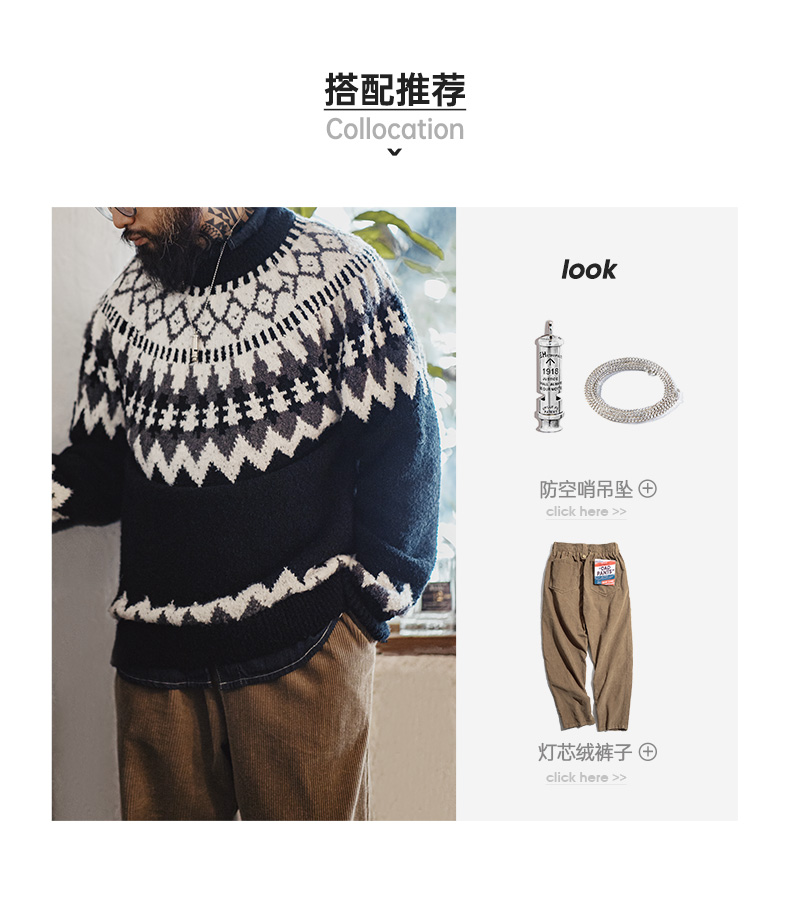 工装优选 美式复古重磅冰岛毛衣圆领费尔岛提花打底针织衫男秋冬