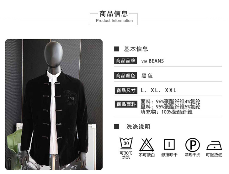 【男装】VIA BEANS 立领盘扣绣龙外套9113010012