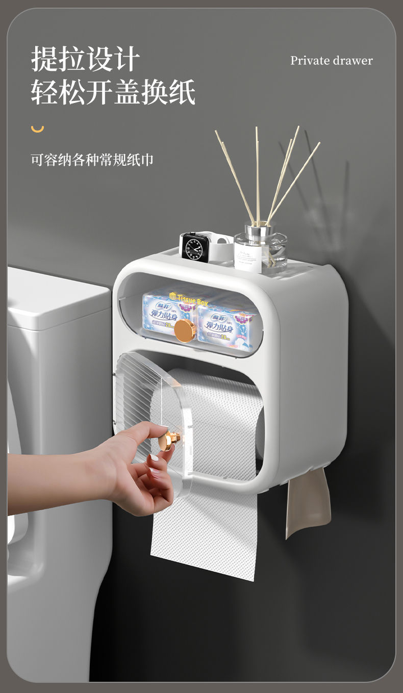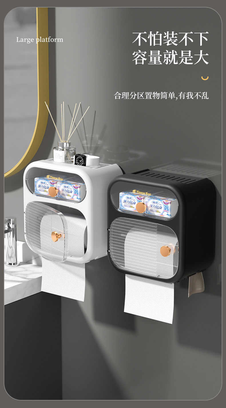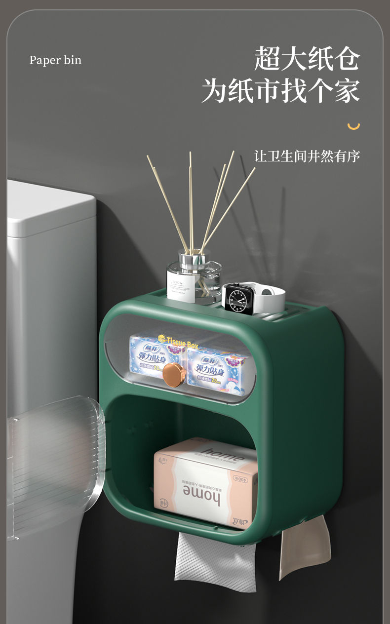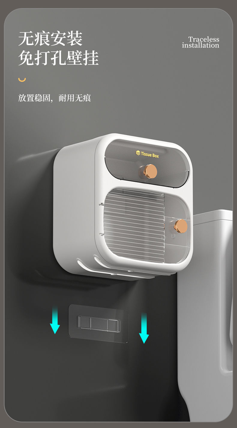 新款纸巾盒厕所卫生纸置物架防水免打孔纸巾架高档壁挂式卷纸盒