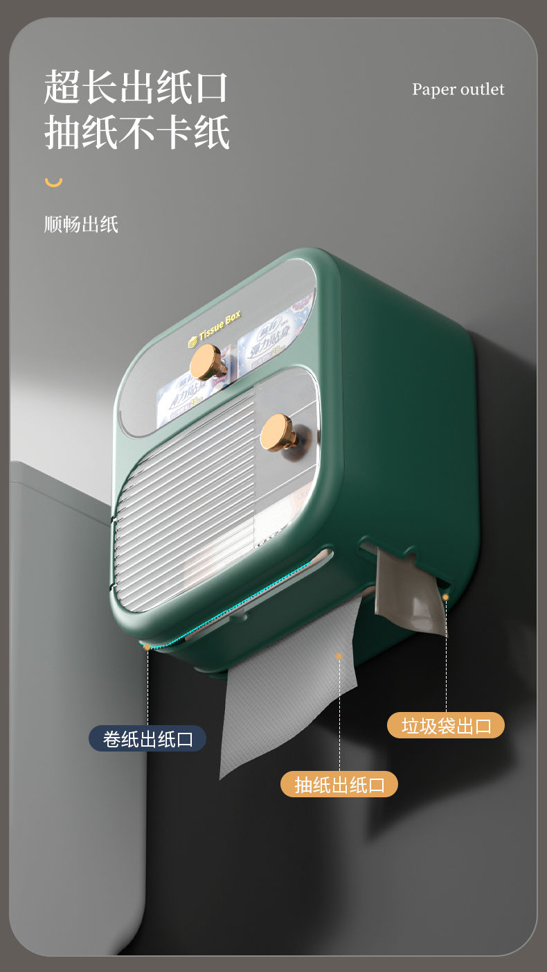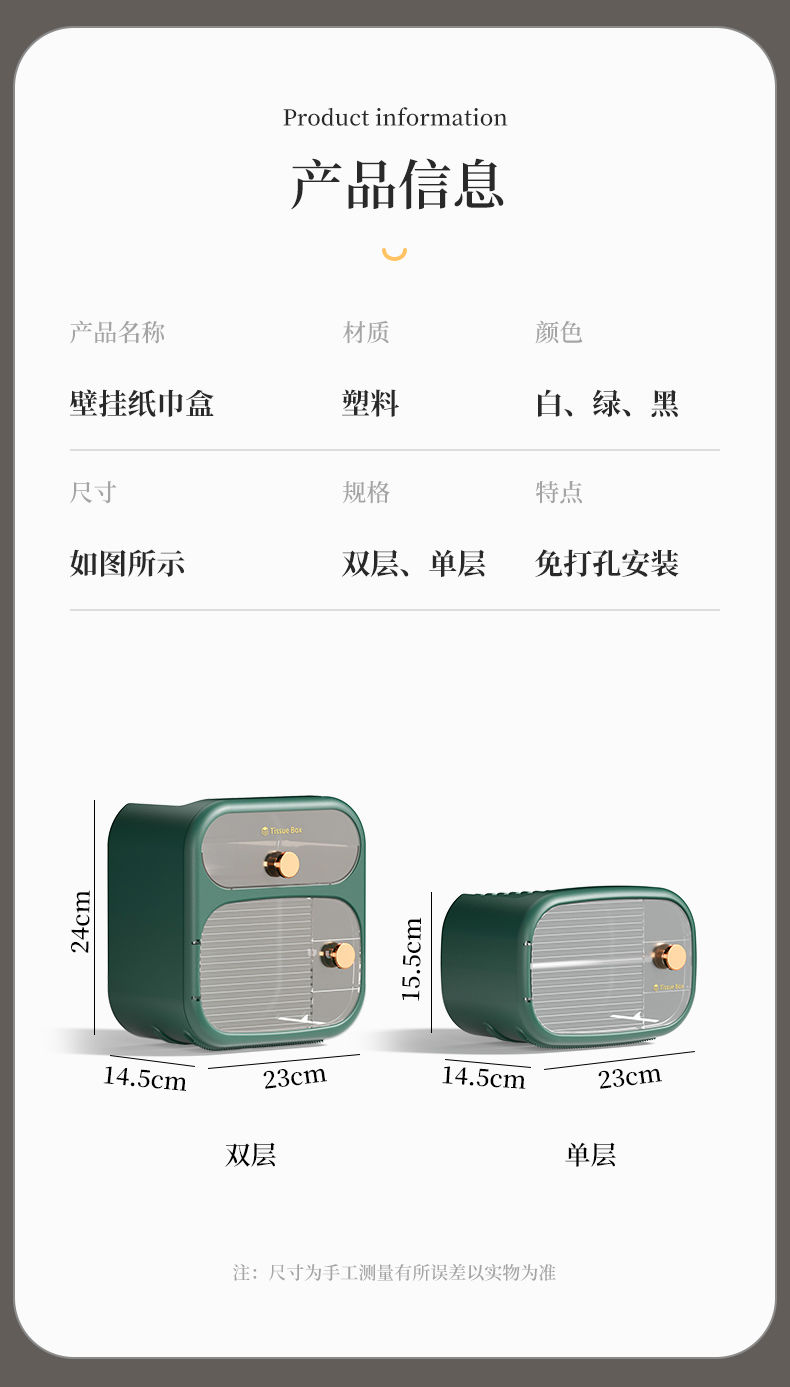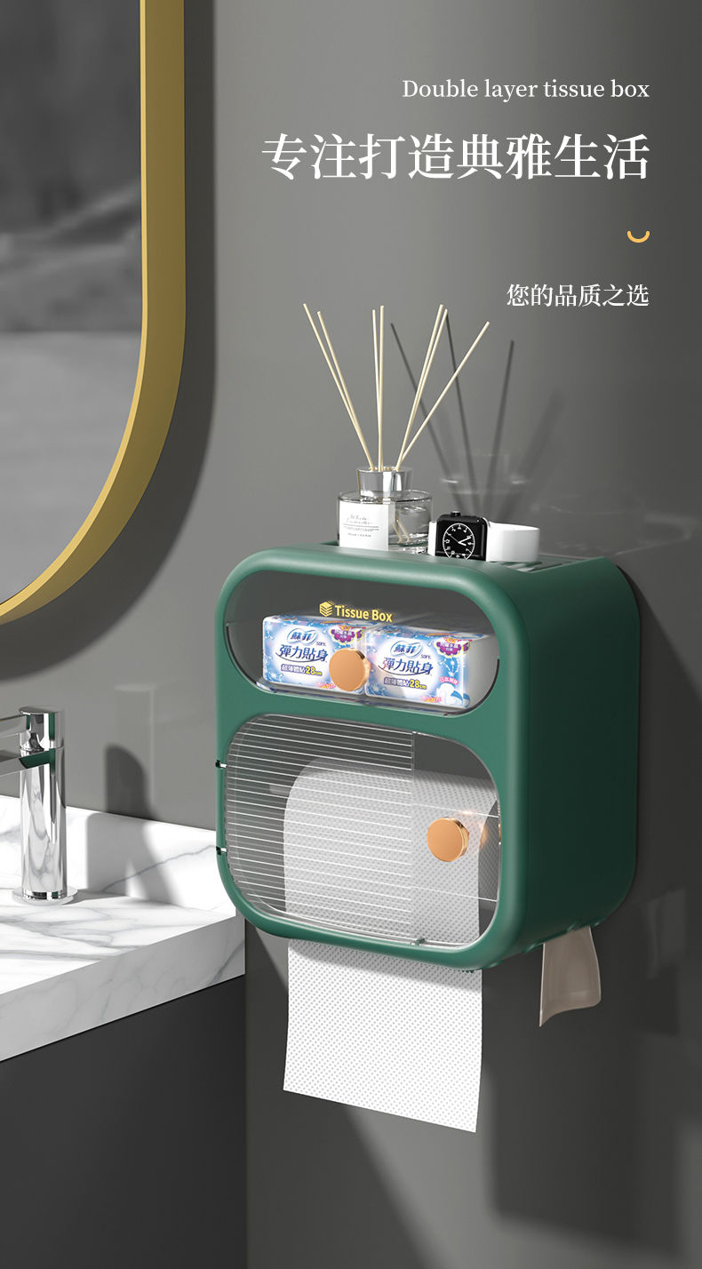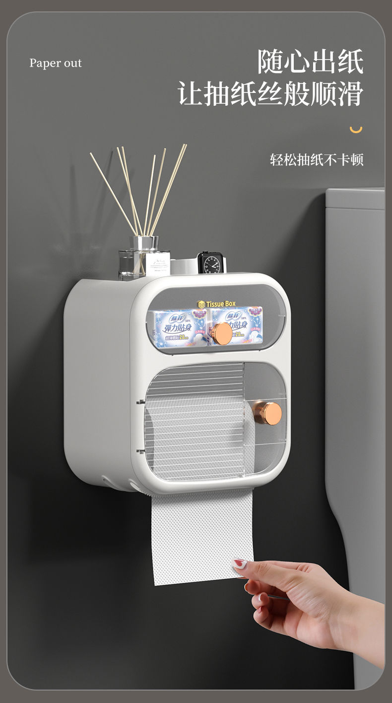 新款纸巾盒厕所卫生纸置物架防水免打孔纸巾架高档壁挂式卷纸盒
