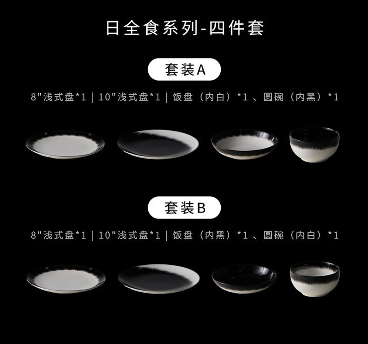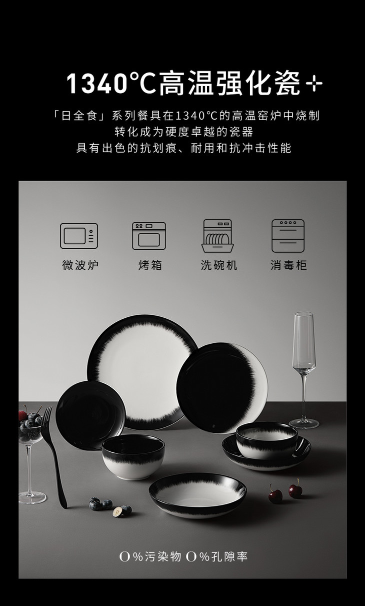 [屁侠推荐]温仑山Velosan 日全食陶瓷餐碗套装选釉下彩工艺 微波炉、洗碗机、消毒机通用 4件套礼盒装