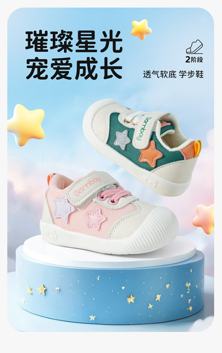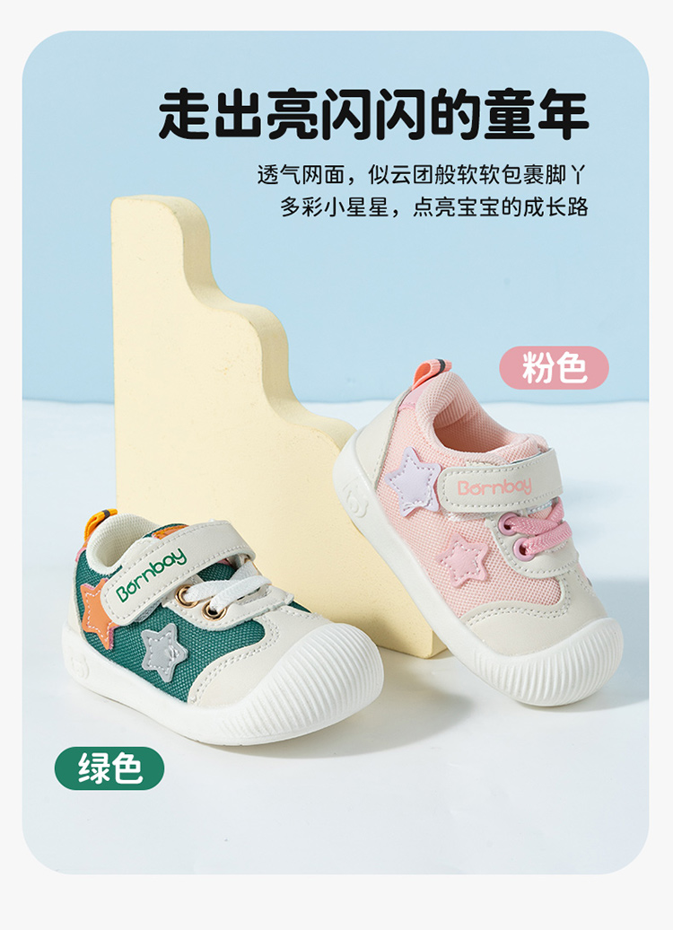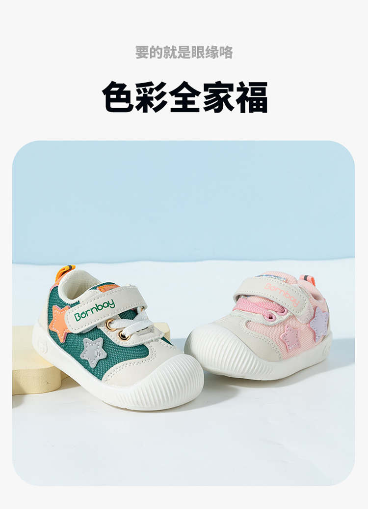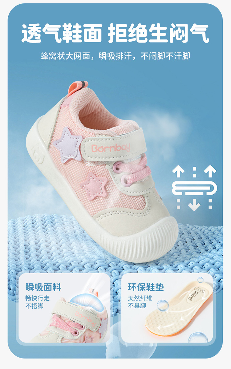贝贝怡2025春秋新款男女宝宝学步鞋中小童软底休闲鞋网眼透气包头鞋ZB1EX010