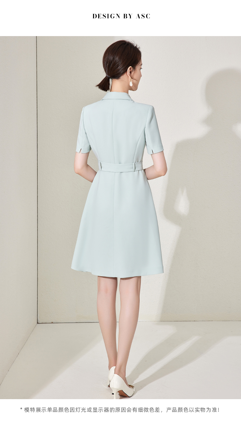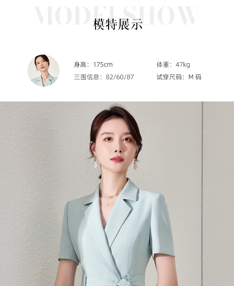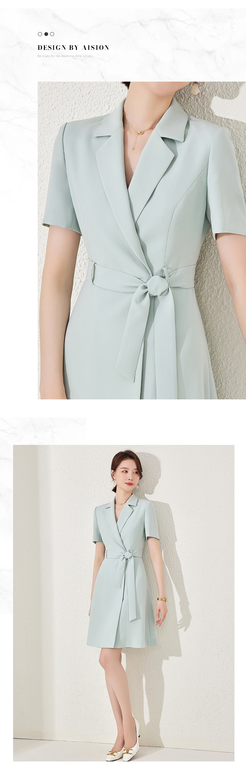 艾尚臣绿色职业连衣裙夏季新款气质通勤风职场白领主持人工作制服