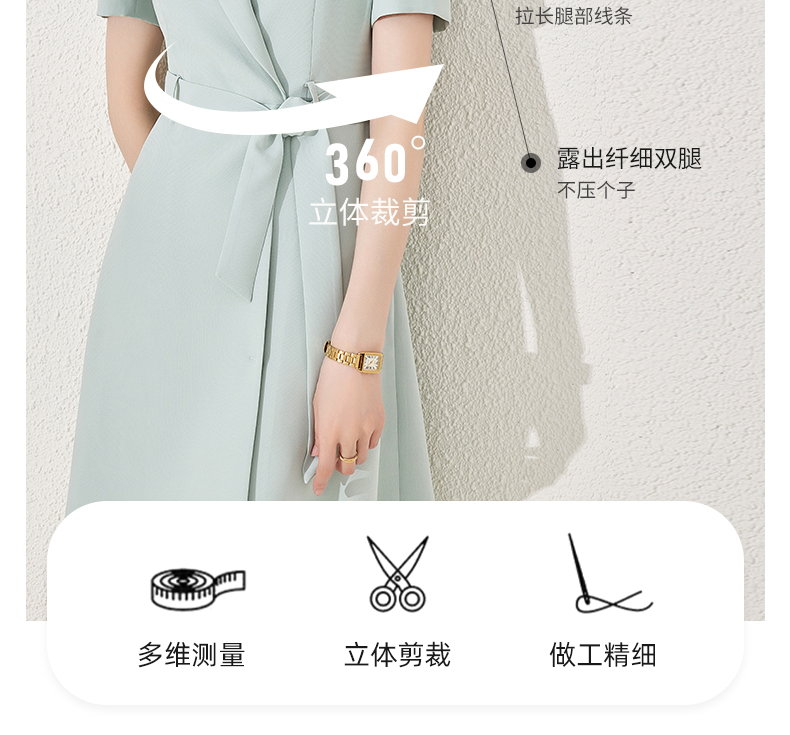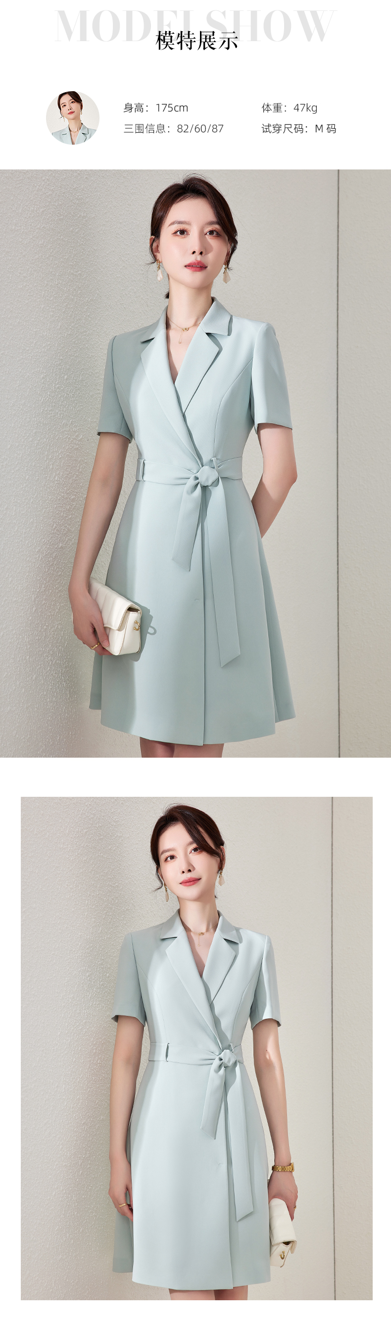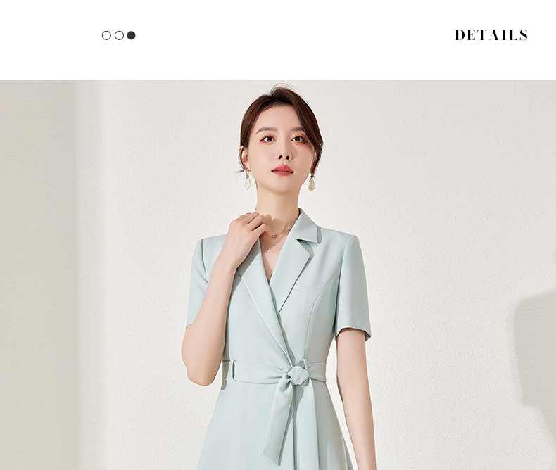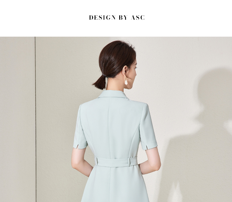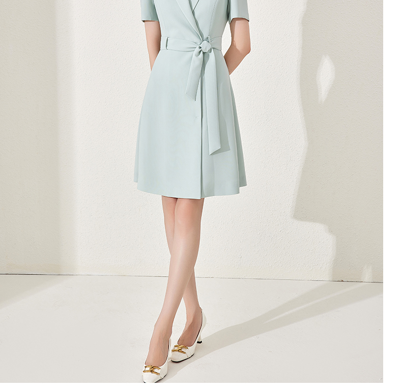 艾尚臣绿色职业连衣裙夏季新款气质通勤风职场白领主持人工作制服