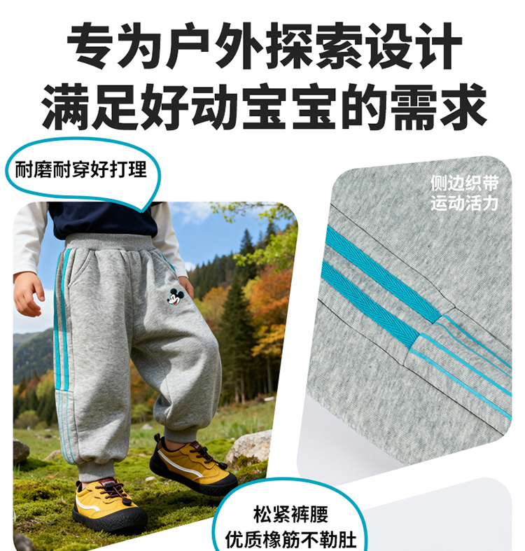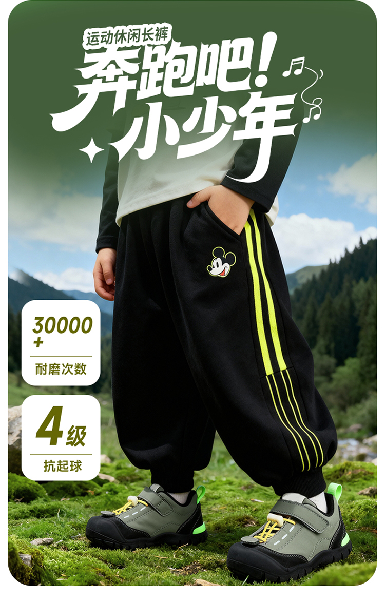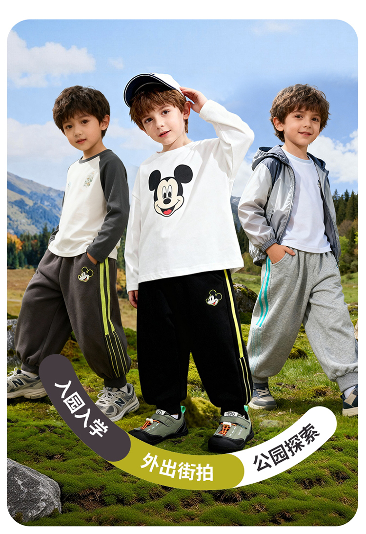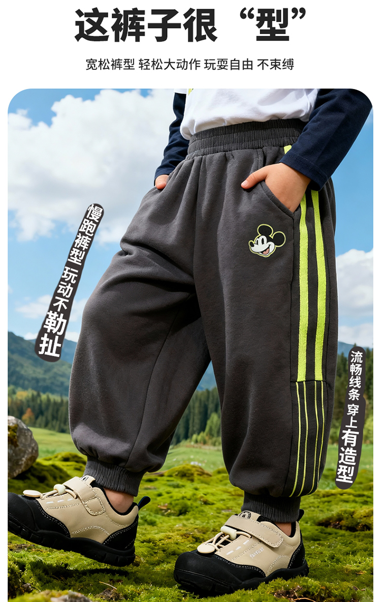 迪士尼(Disney)童装男童束脚长裤潮流帅气束脚运动休闲卫裤2026春季新款裤子ZD1FK001
