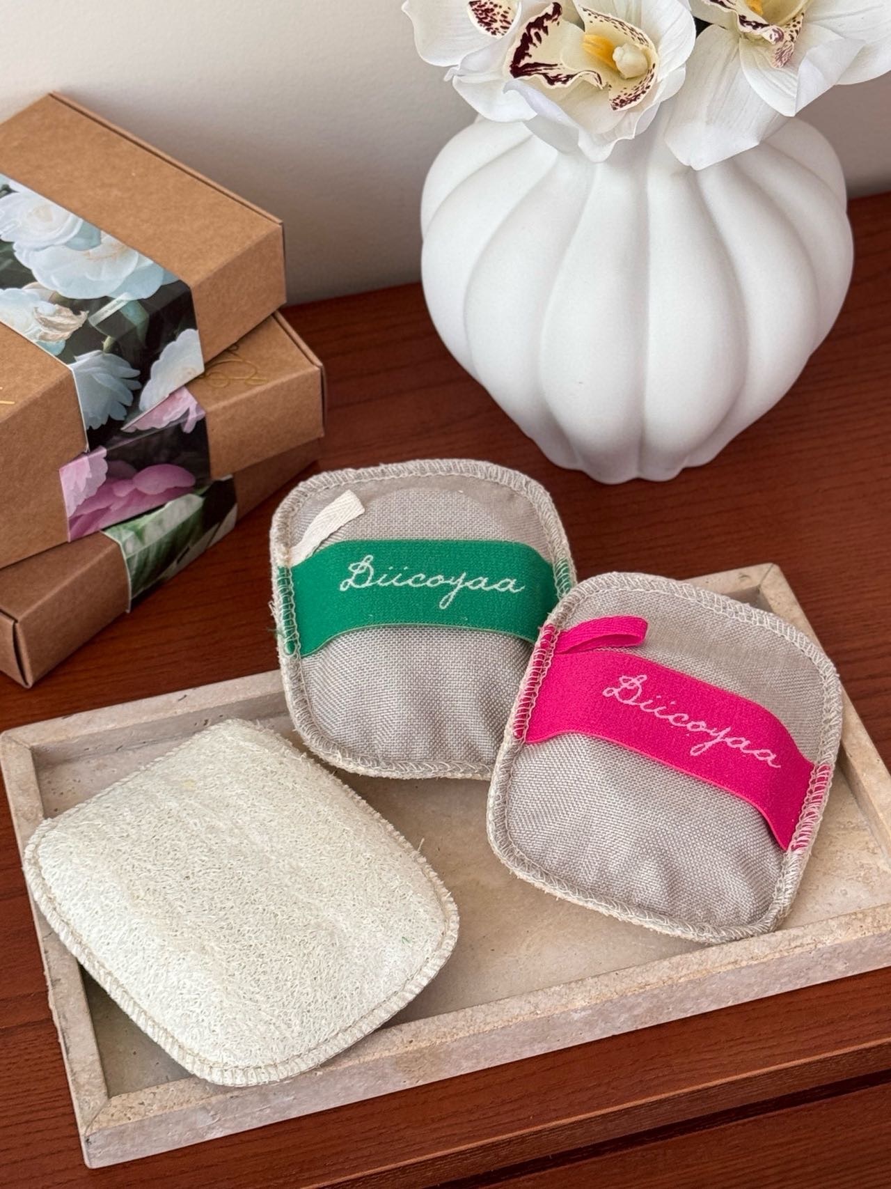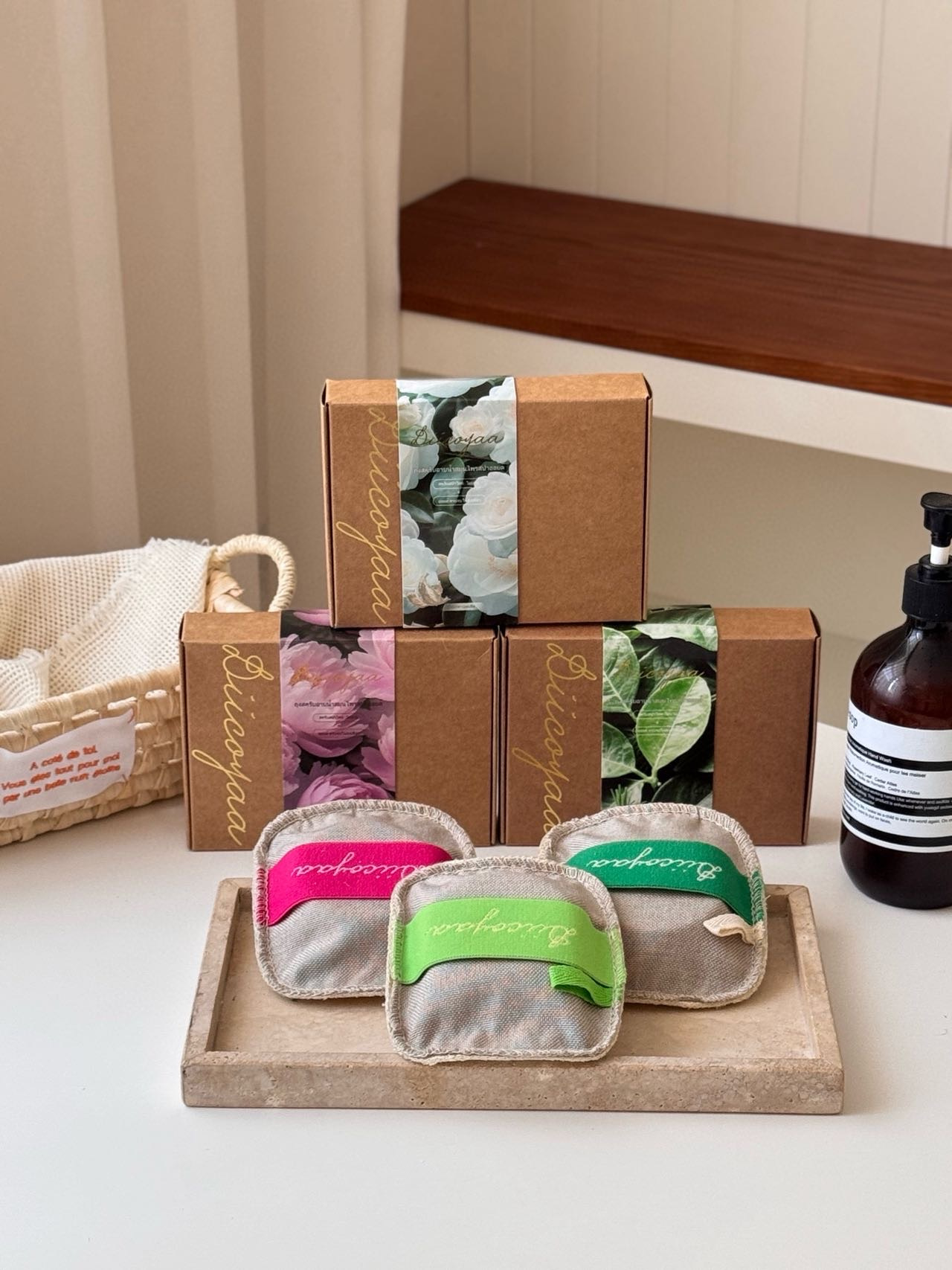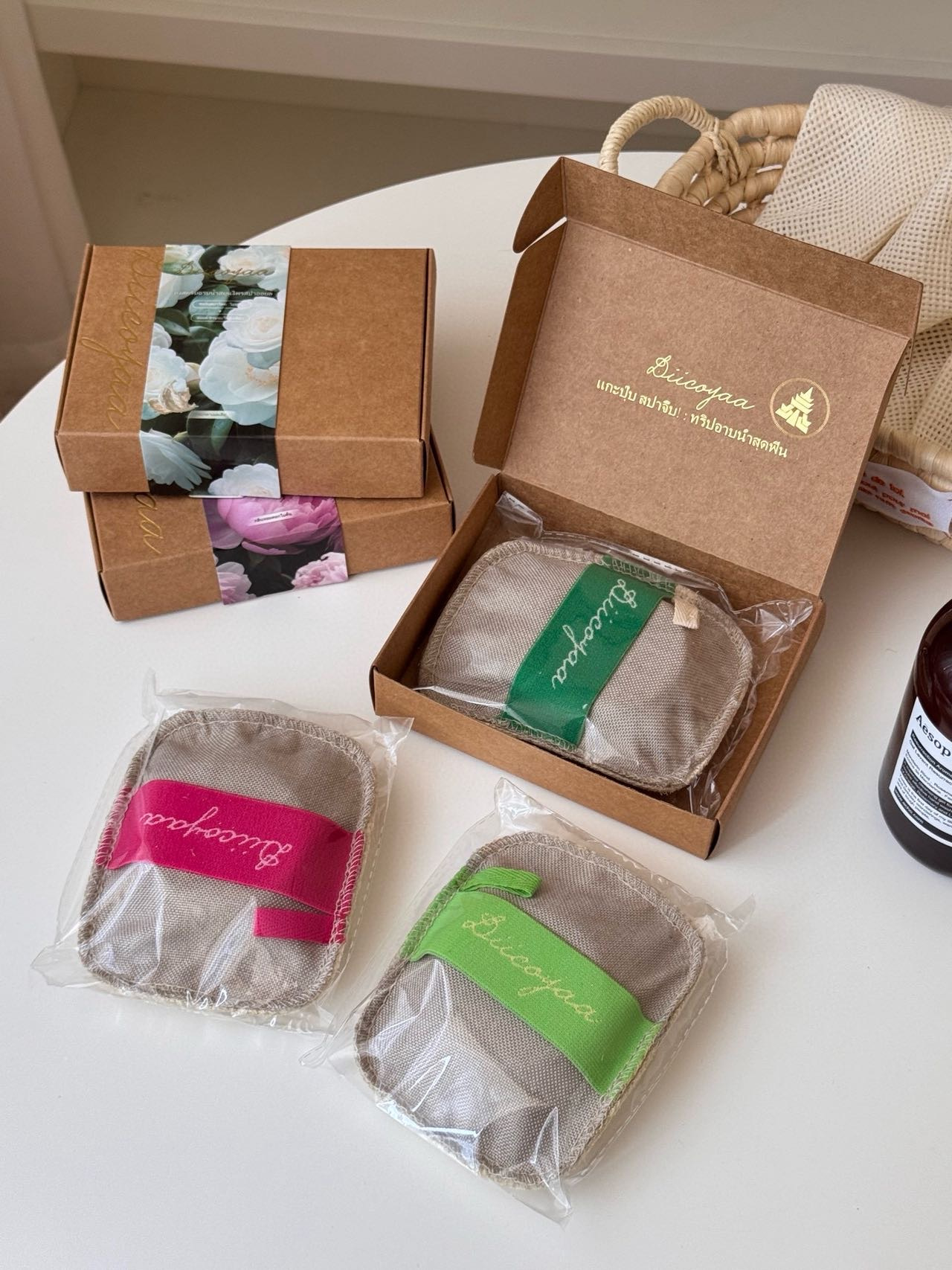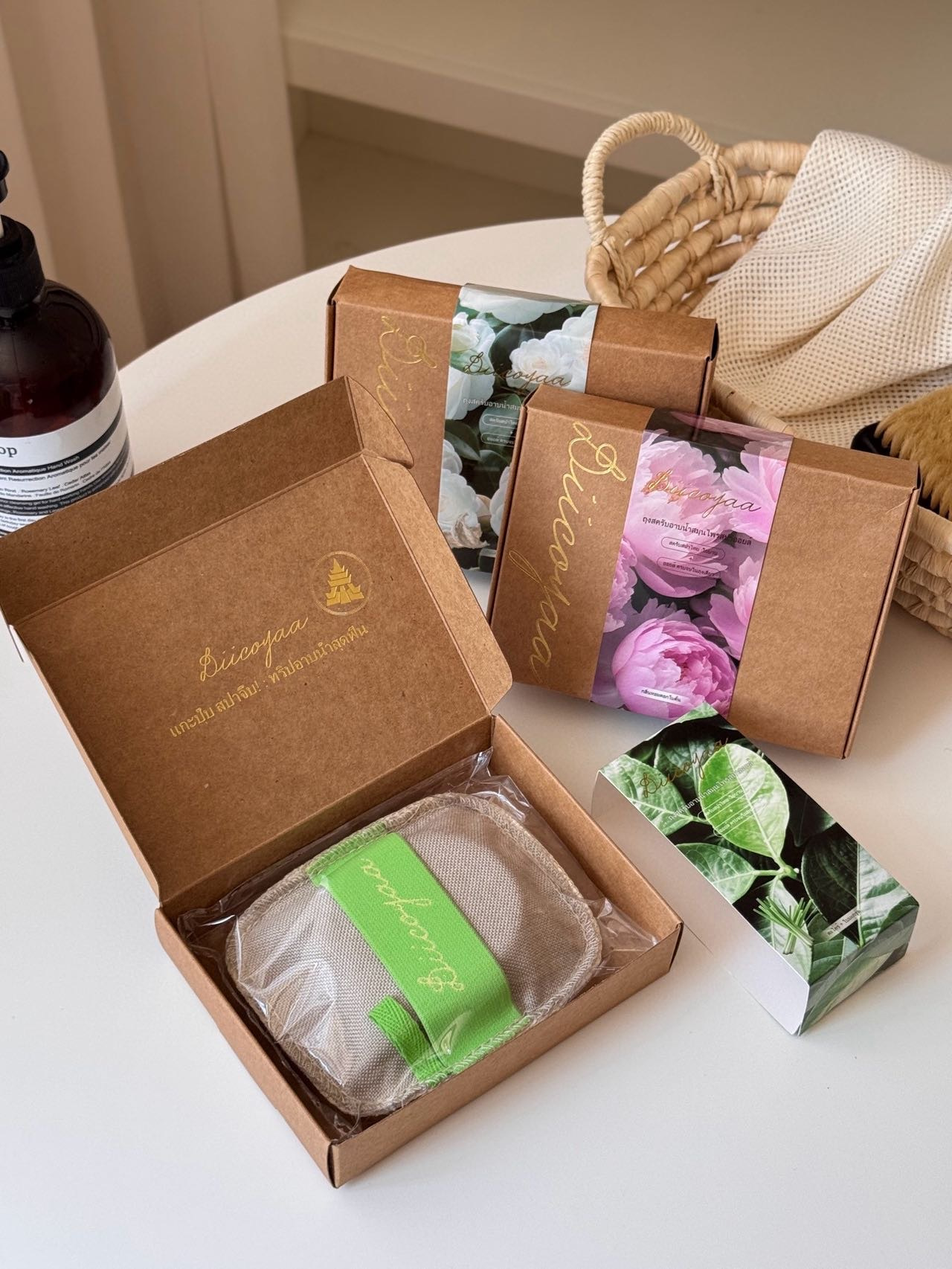 融合泰国传统手工艺(精油皂)与天然沐浴工具(丝瓜络)