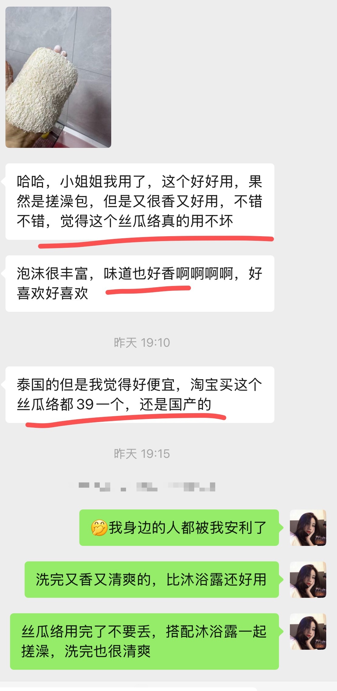 ★tip:🚿前两次使用丝瓜络不够软、出泡少是正常的,用两三次后会更软,起泡也更顺~