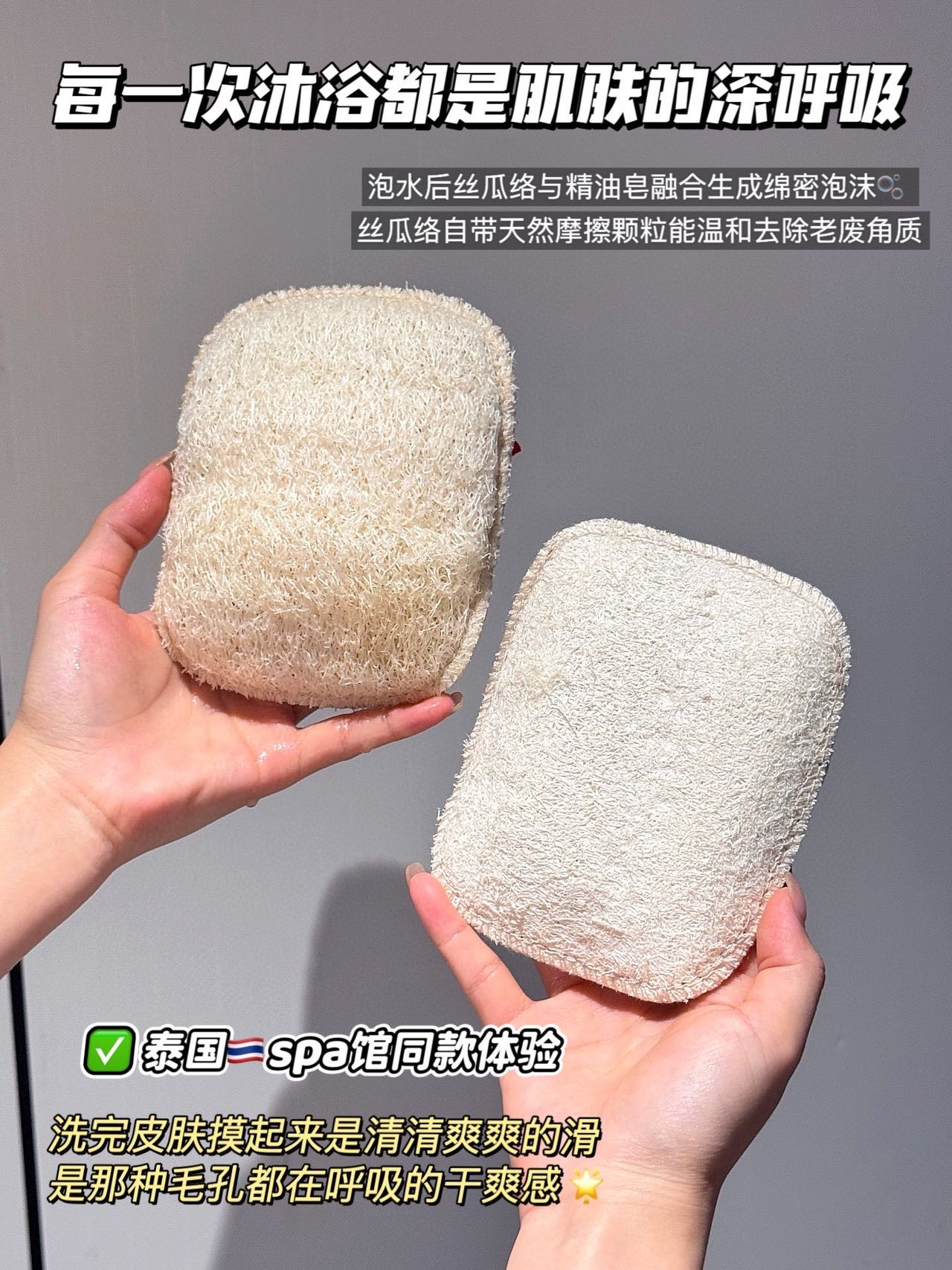 精油疗肤+丝瓜络抛光=越搓越嫩💥 用完毛孔会呼吸🚿