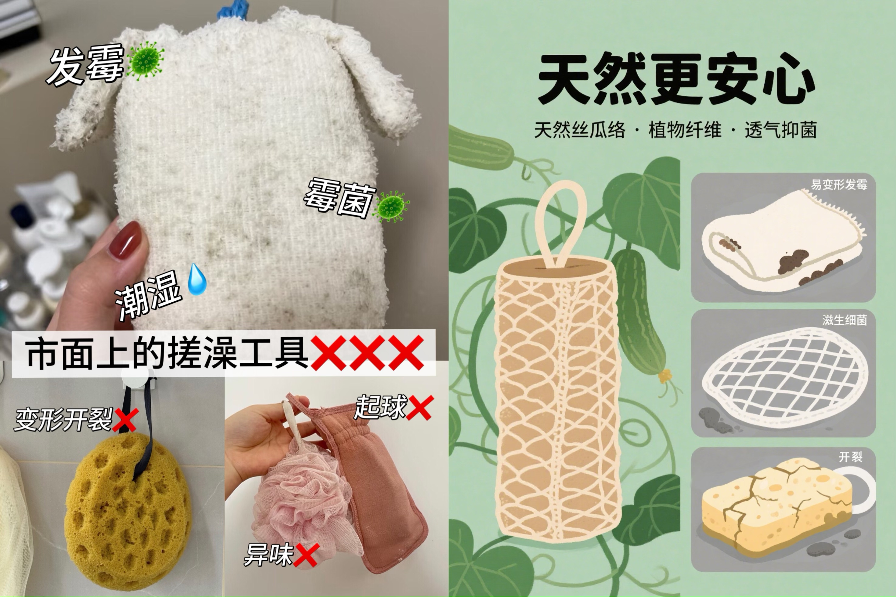 可别再用棉质、涤纶、海绵做的搓澡巾了,易变形还爱发霉,细菌跟着洗澡水贴皮肤多不放心!