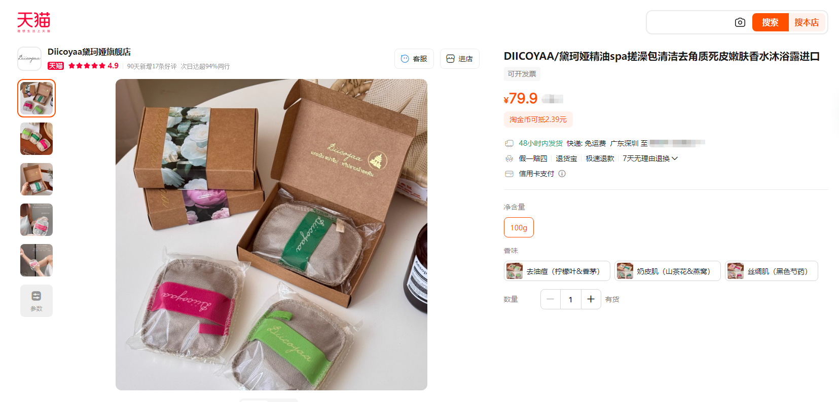 【产品名称】泰国Diicoyaa精油SPA搓澡包