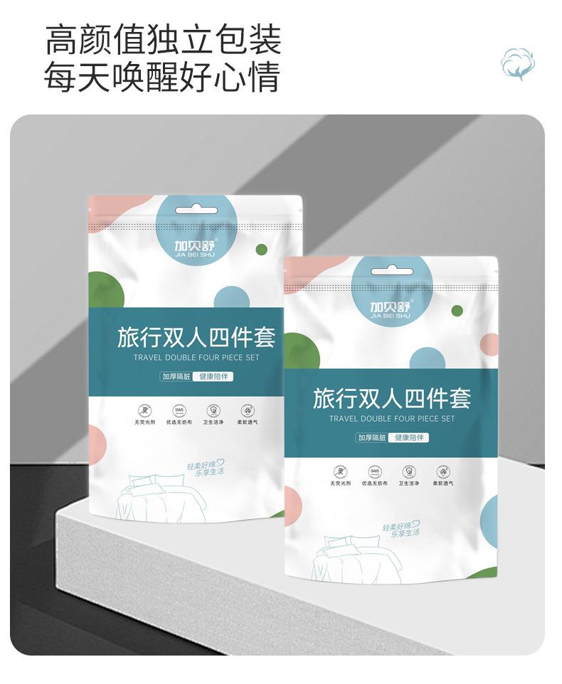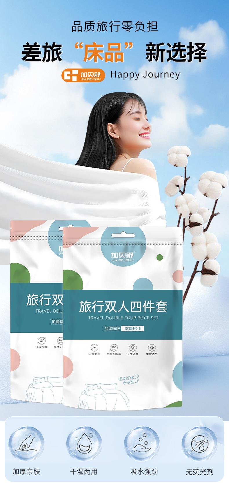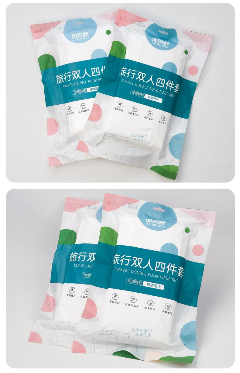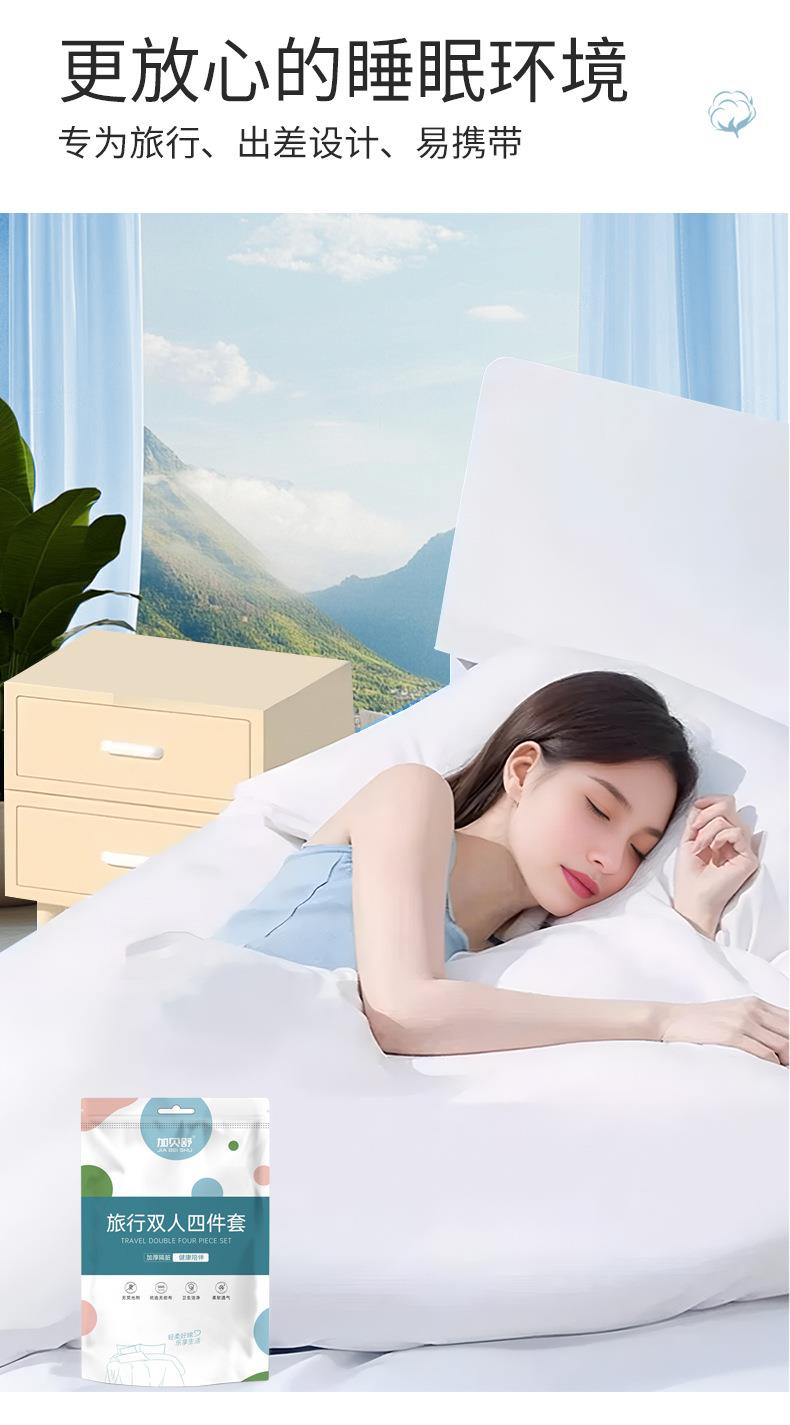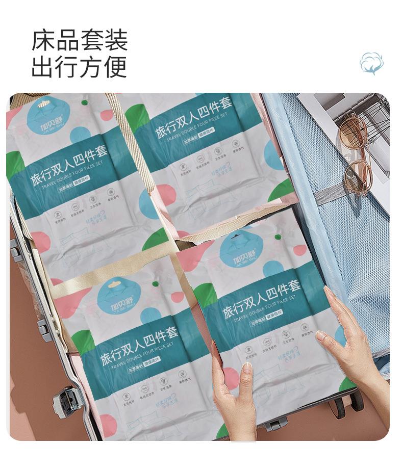 加贝舒旅行一次性床单四件套纯棉卡通印花被套枕不跑位酒店出差便携床单一次性用品