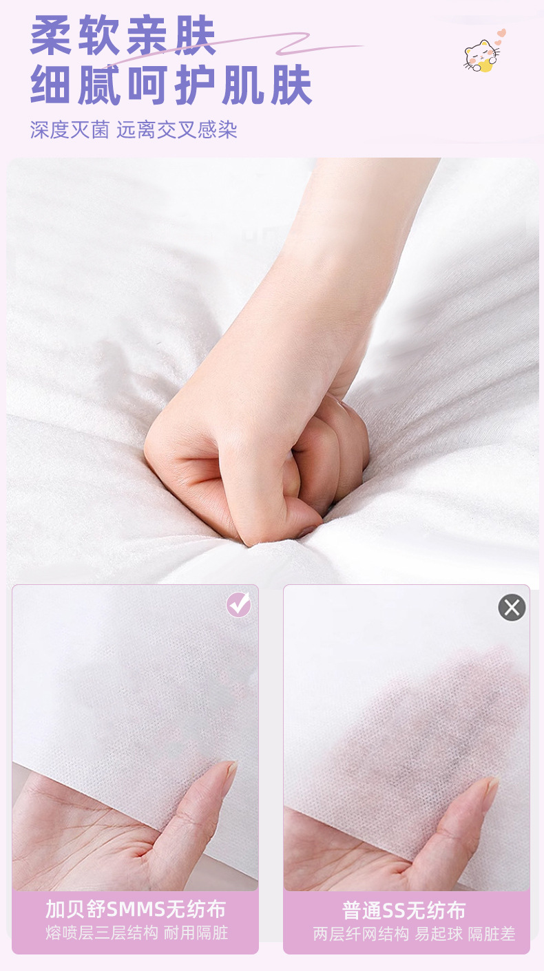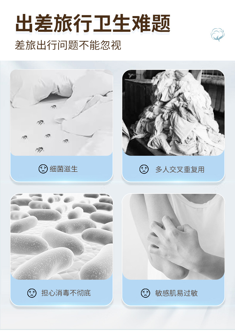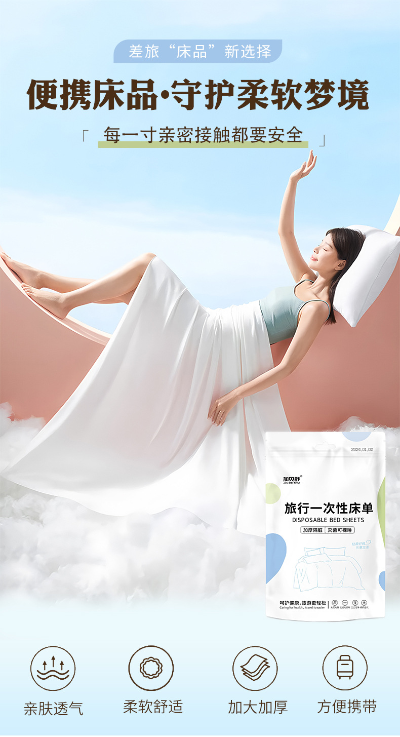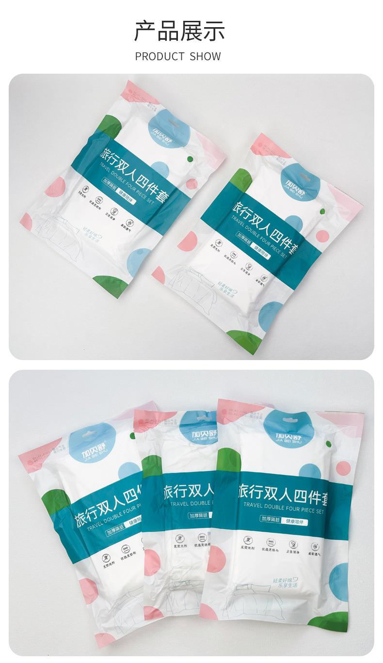 加贝舒旅行一次性床单四件套纯棉卡通印花被套枕不跑位酒店出差便携床单一次性用品