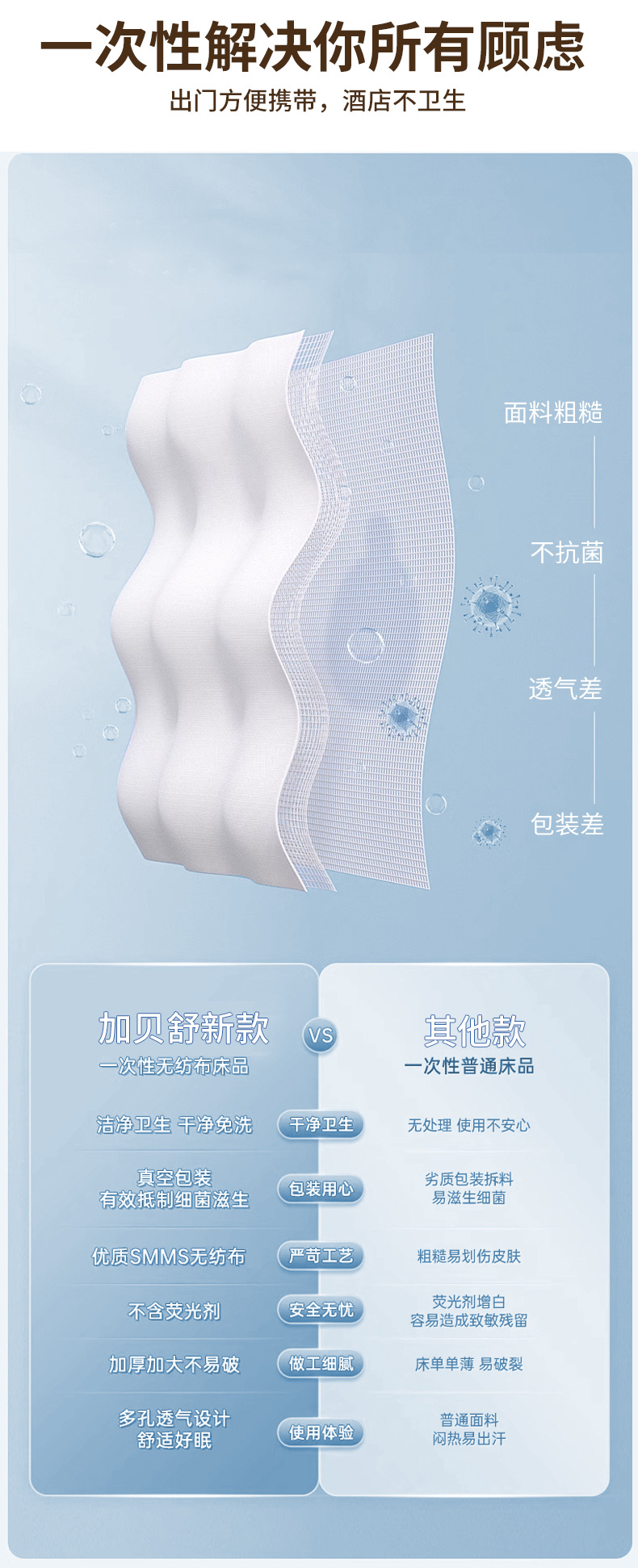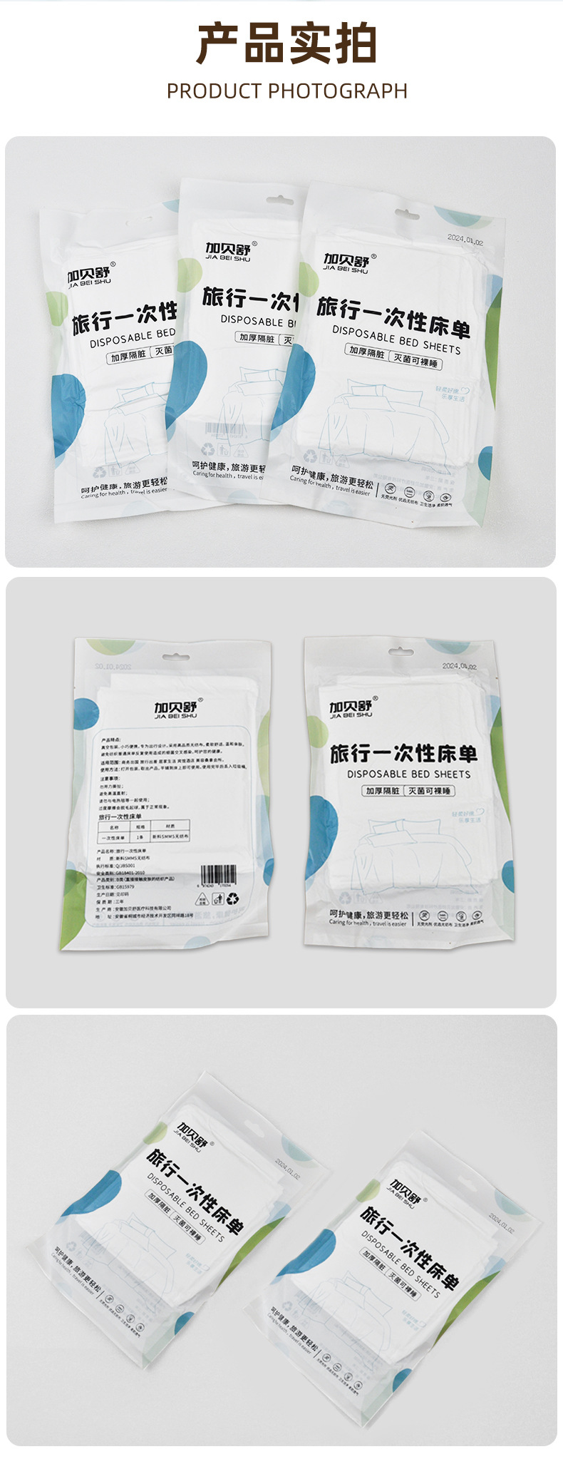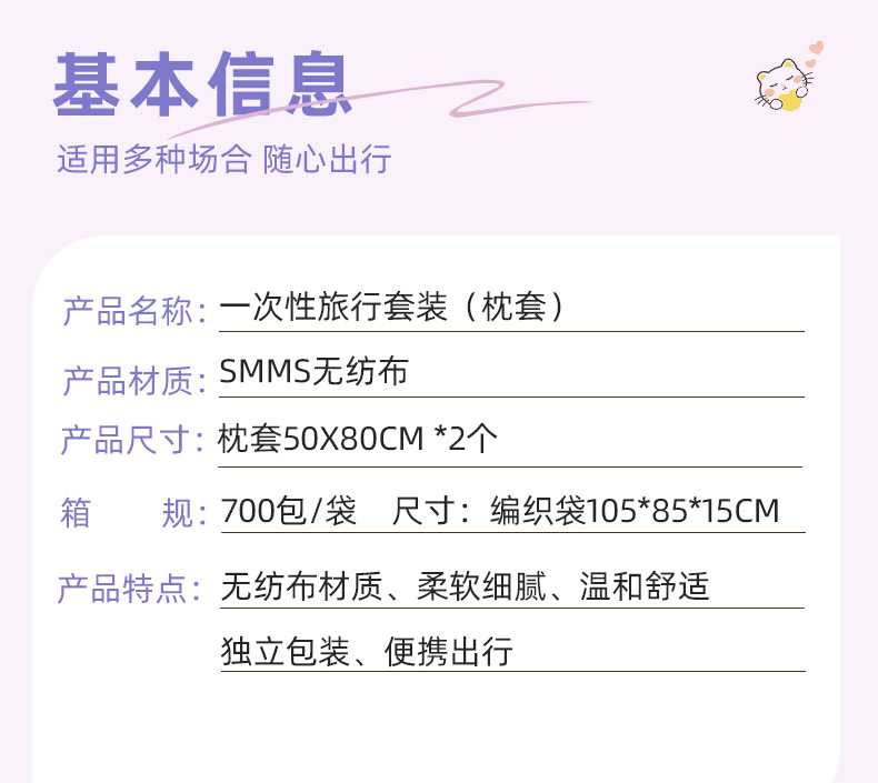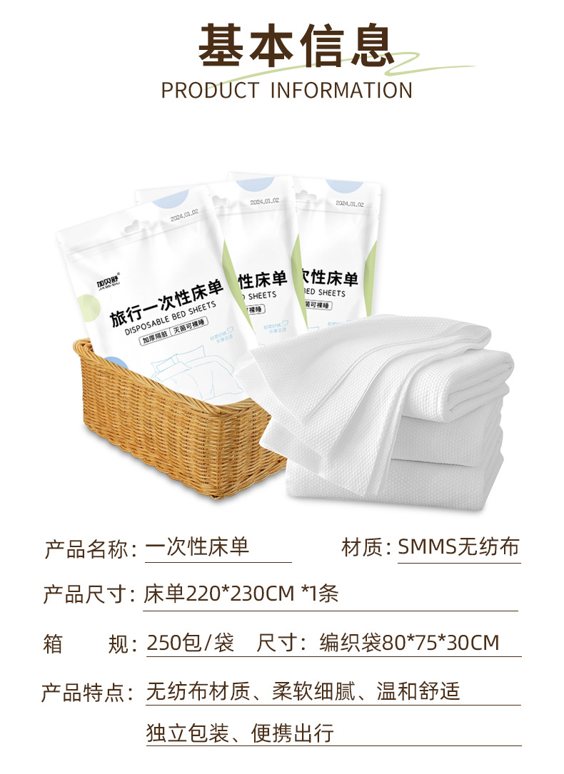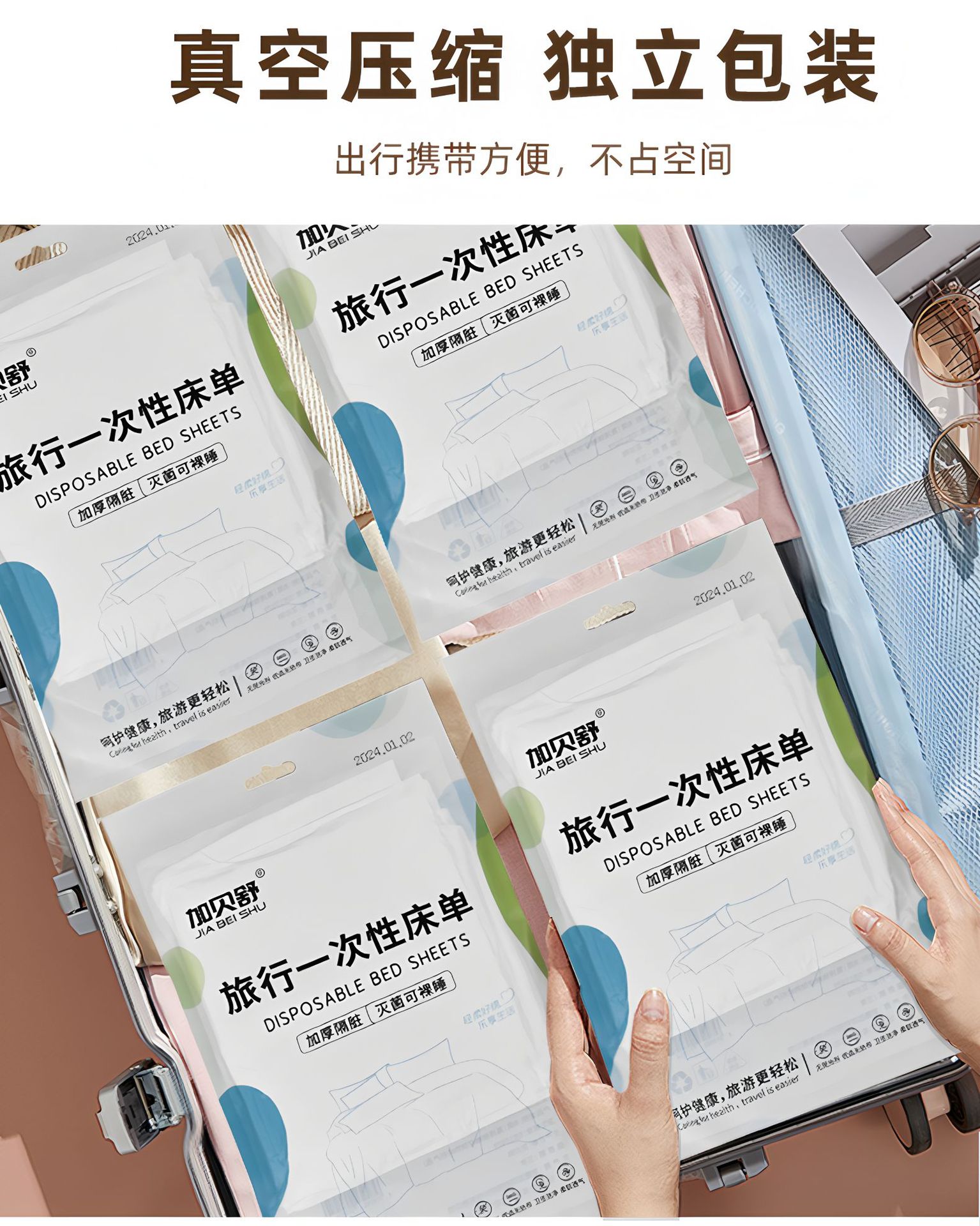 加贝舒旅行一次性床单四件套纯棉卡通印花被套枕不跑位酒店出差便携床单一次性用品
