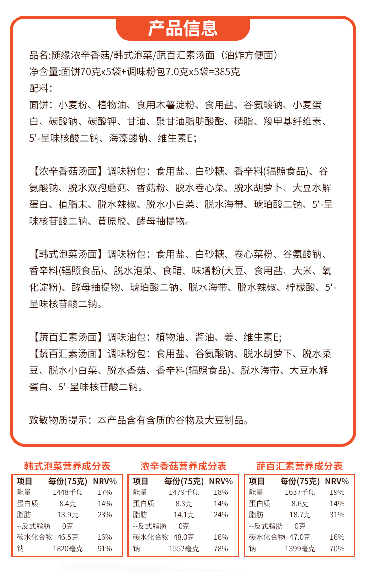 随缘方便面泡汤面 | 全素三种口味台湾进口