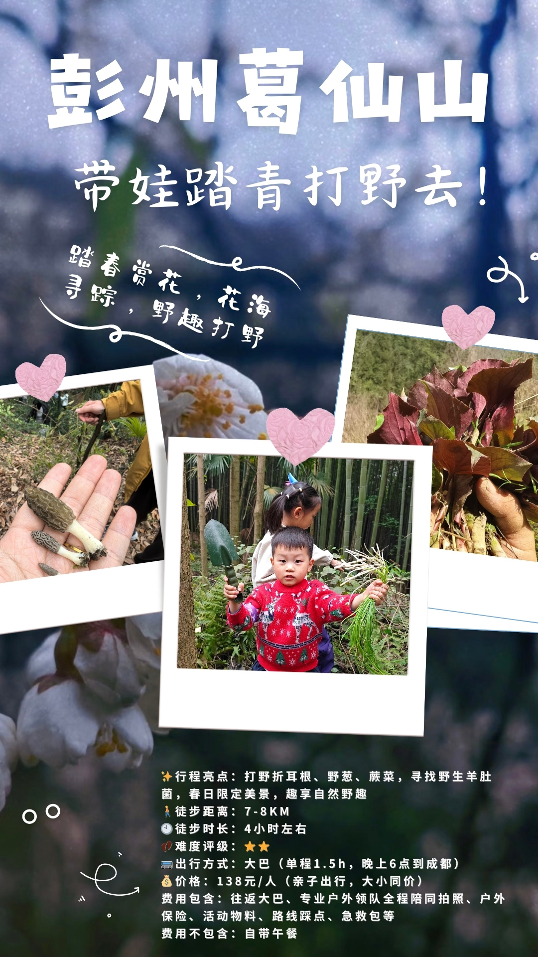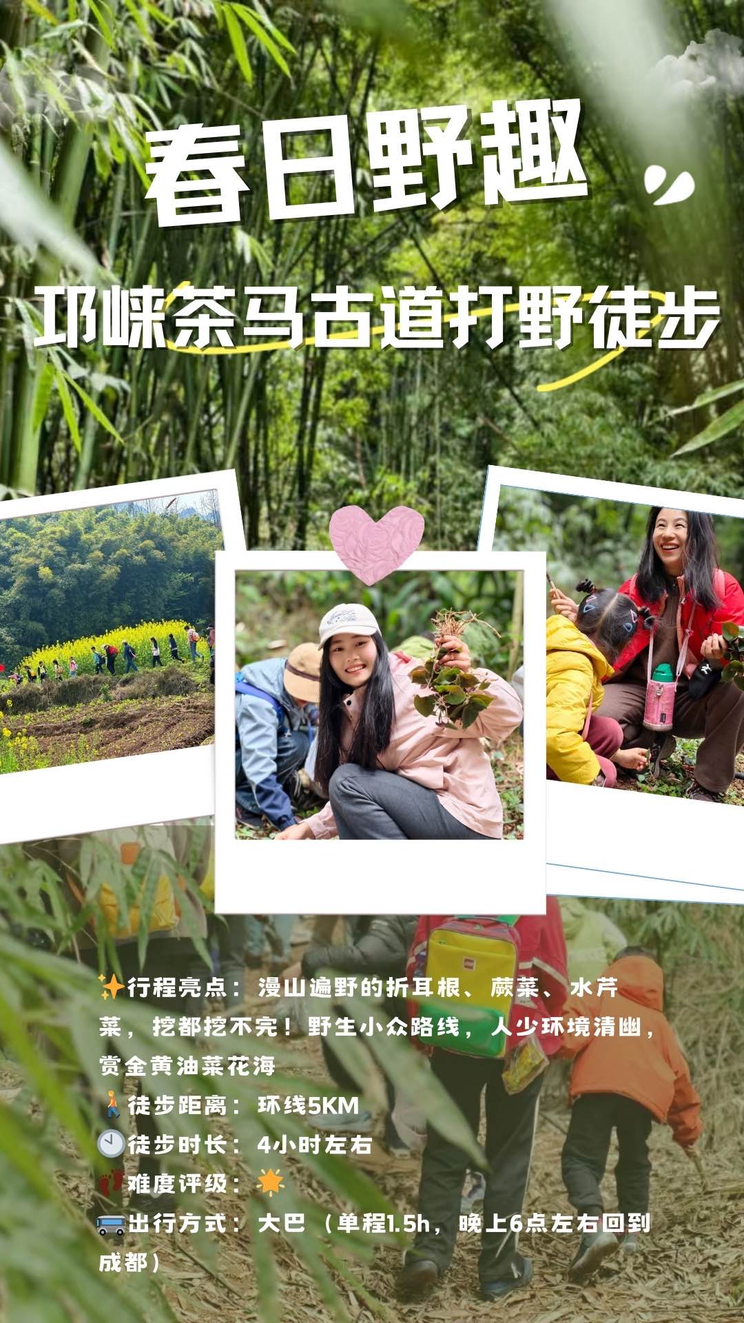 3.14/3.15/4.1/4.2每周一山,亲子徒步!去葛仙山挖野菜,野葱、蕨菜,寻找野生羊肚菌,春日限定美景,趣享自然野趣,走邛崃茶马古道,野生小众路线,人少环境清幽