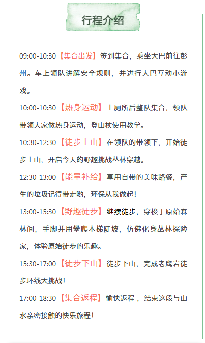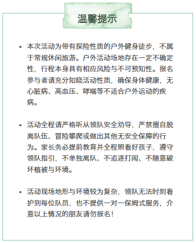 (每周不同徒步路线,请根据当周招募路线介绍为准)