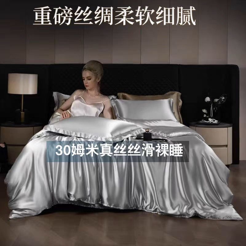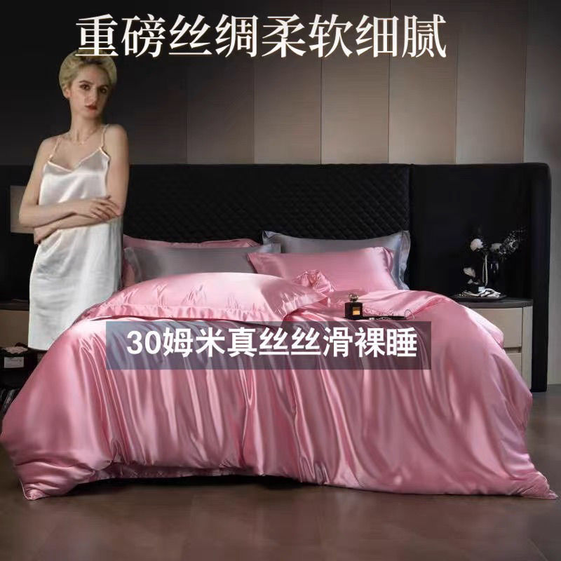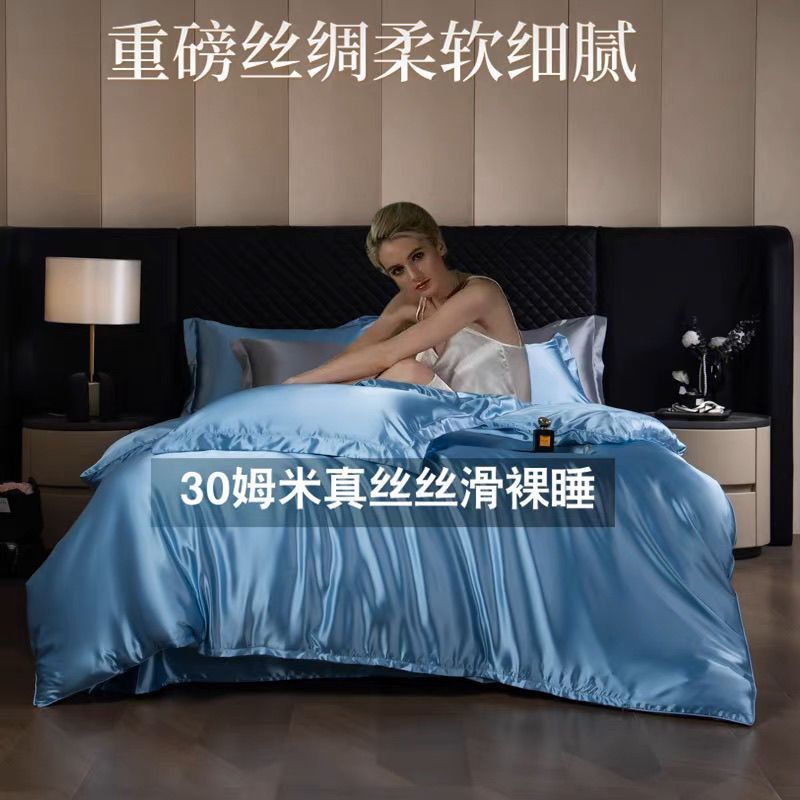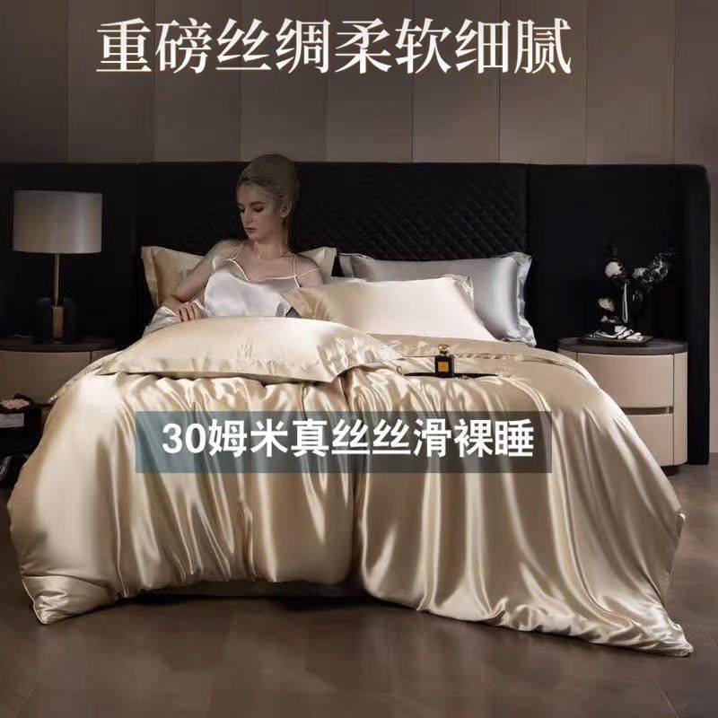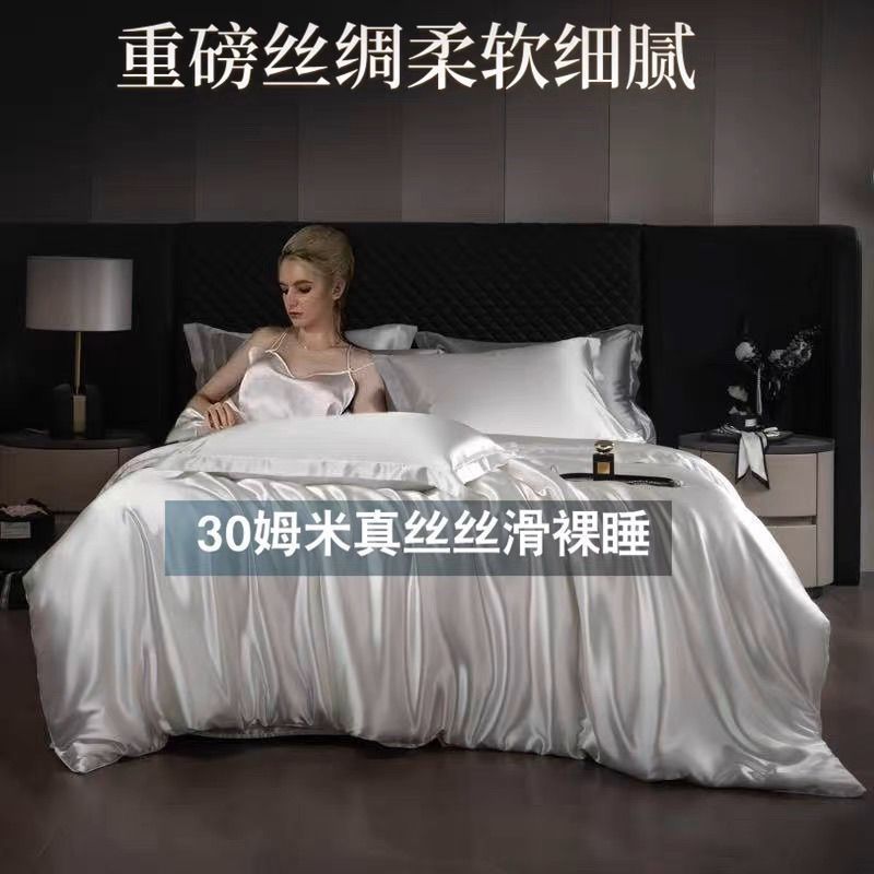 重磅真丝30姆桑蚕丝真丝三四件套双面丝绸裸睡被套冰丝天丝春夏秋