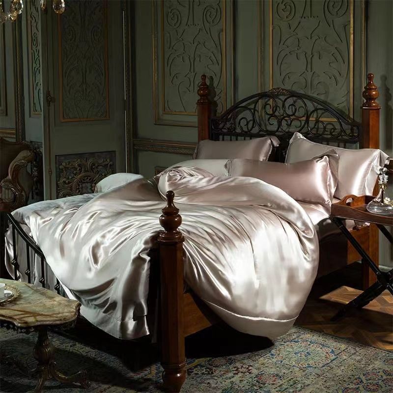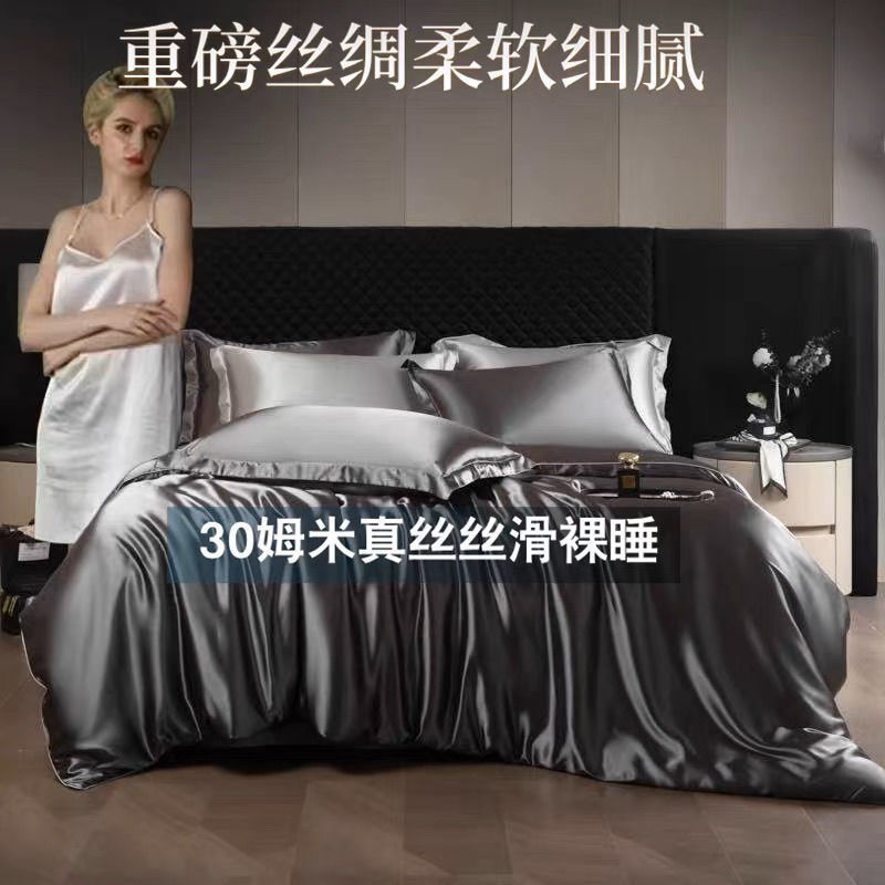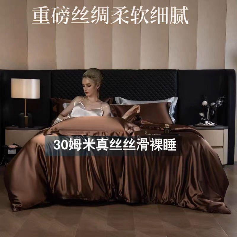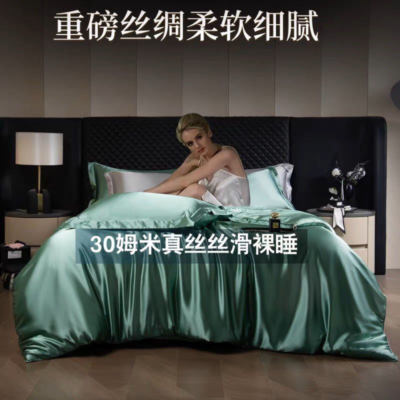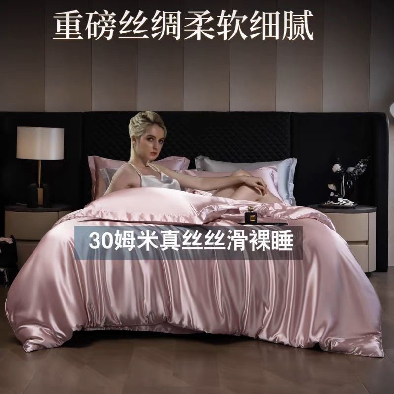 重磅真丝30姆桑蚕丝真丝三四件套双面丝绸裸睡被套冰丝天丝春夏秋