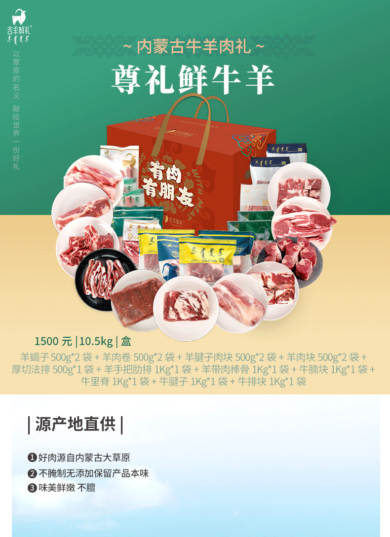 【尊礼鲜牛羊】10.5kg 内蒙古吉羊鲜礼草原牛羊肉 牛羊肉至尊礼