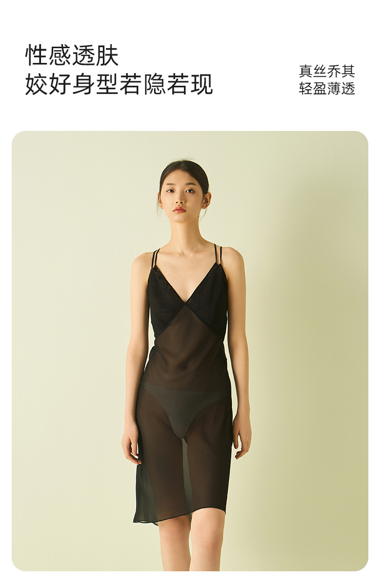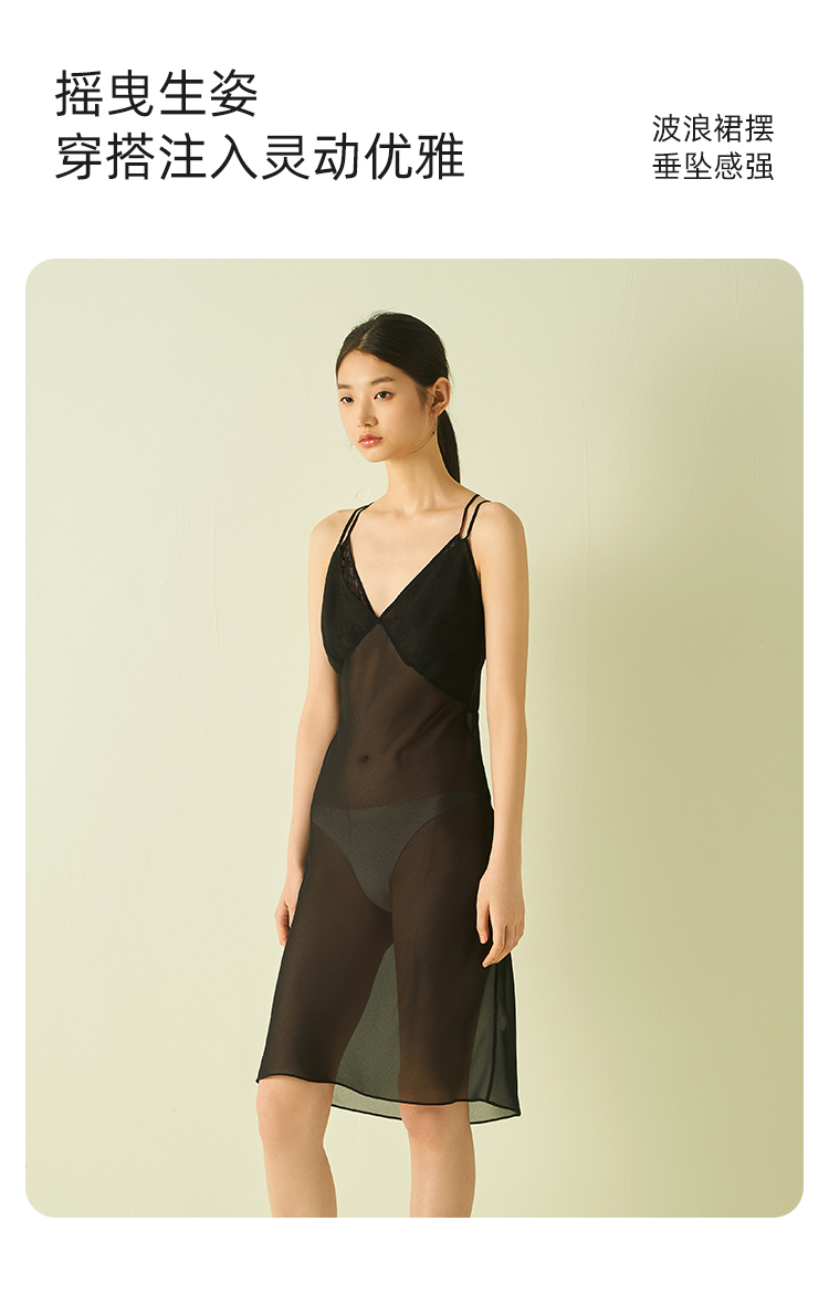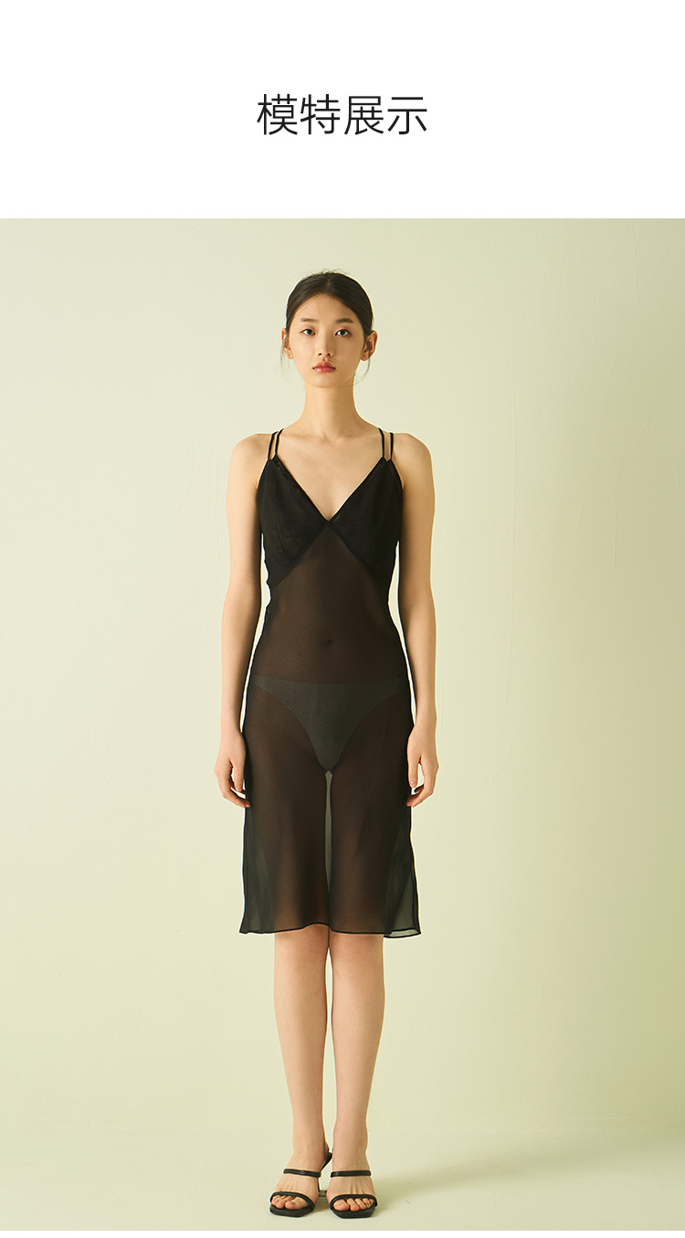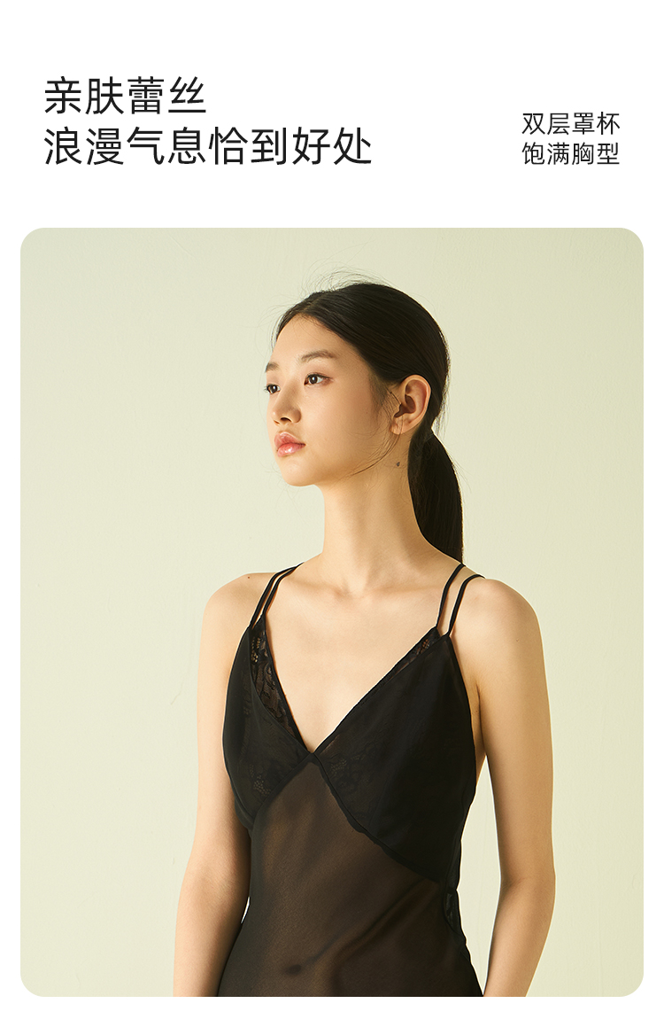 桑罗黑色蕾丝真丝吊带裙性感透视V领25年夏季新品睡裙约会战袍