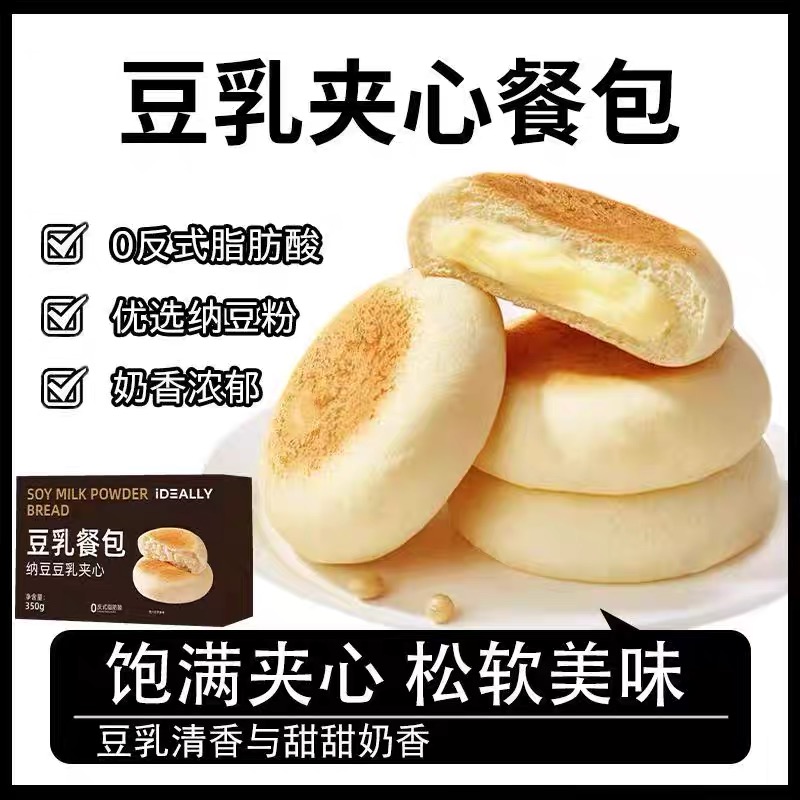 【1件起全国包邮】豆乳餐包 健康早餐面包 代餐纳豆夹心(350g*1箱,含8包)