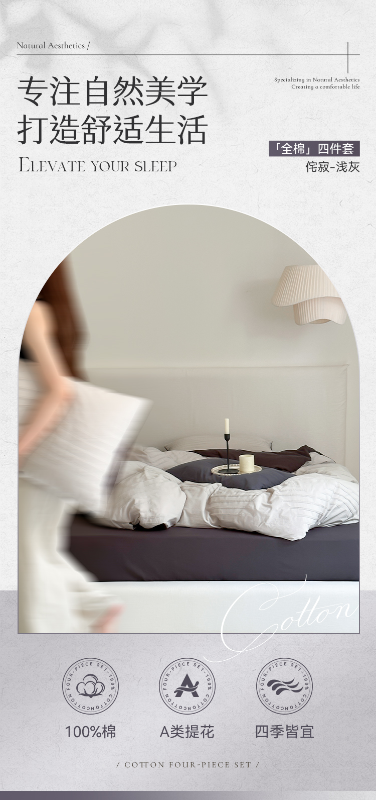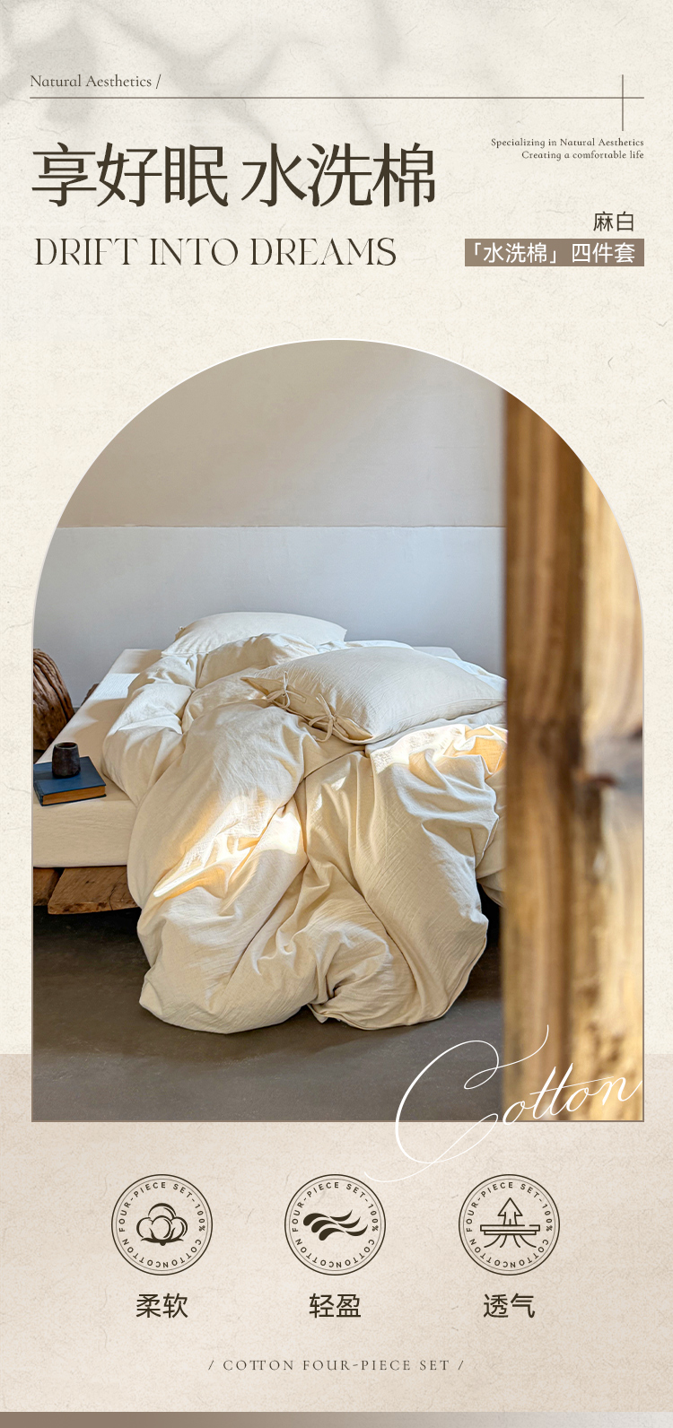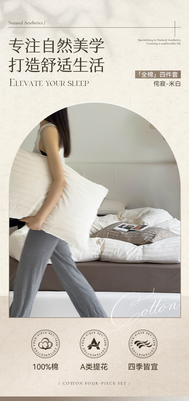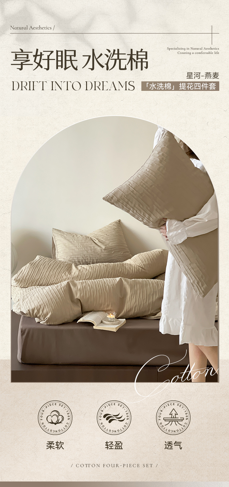 多喜爱 A类提花全棉水洗套件 四件套(浅灰、米白、卡其、星河、麻白)