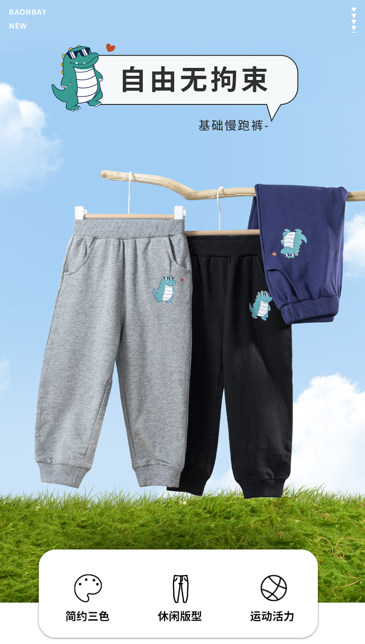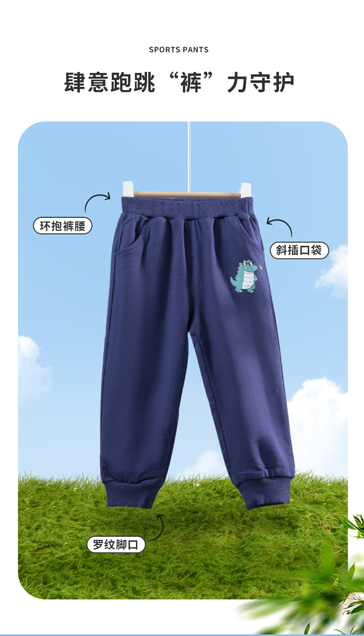 贝贝怡童装男童长裤新款春季针织舒适防蚊束脚儿童休闲裤子