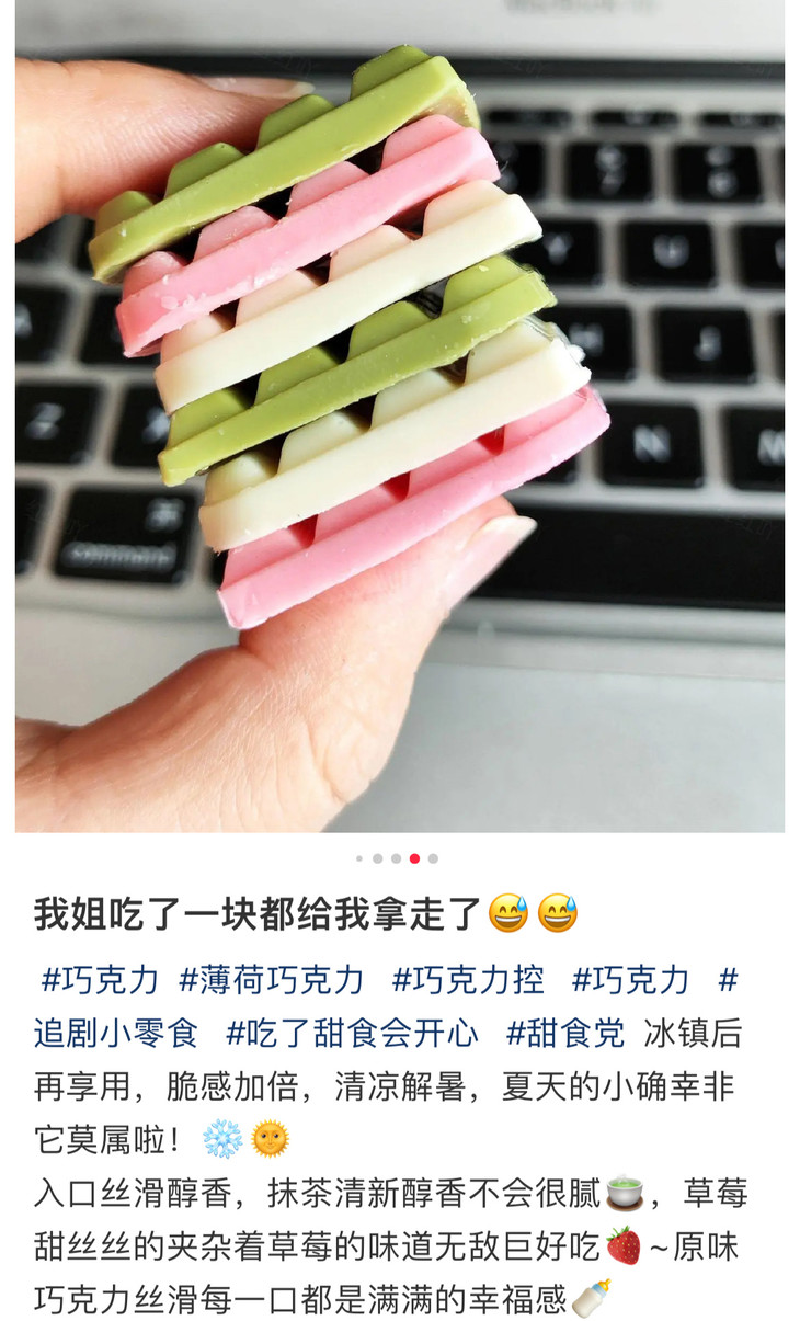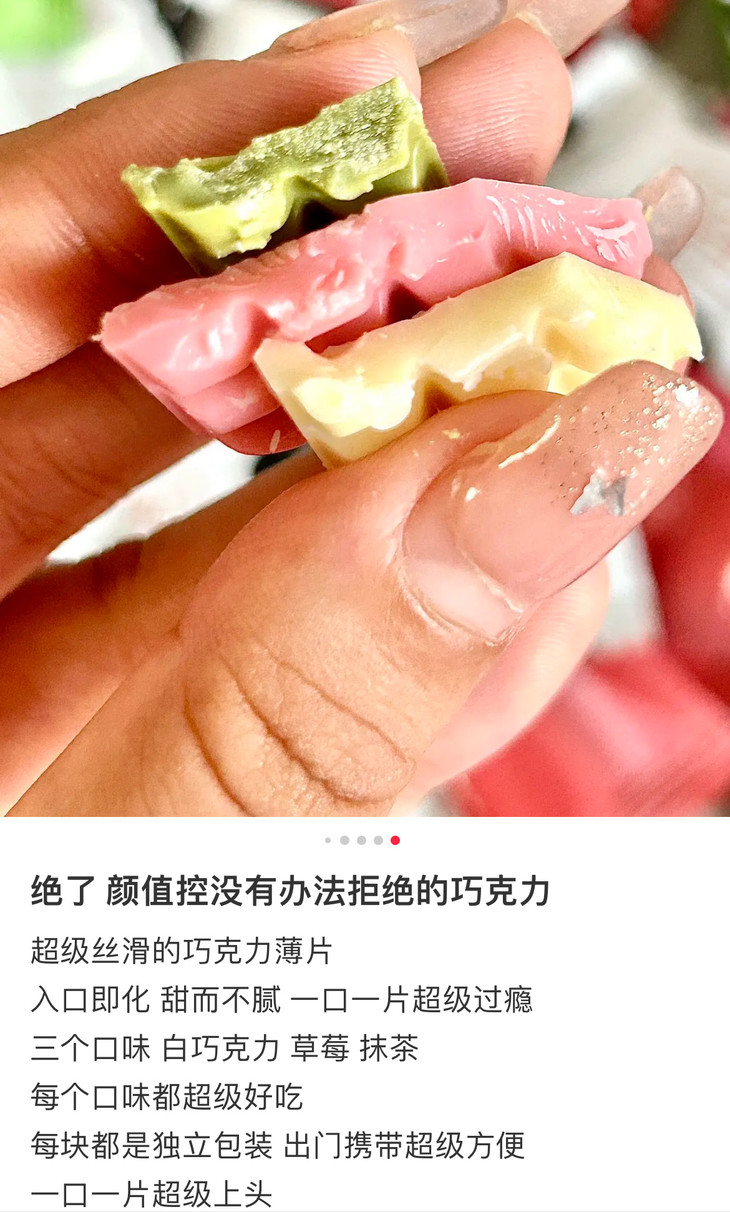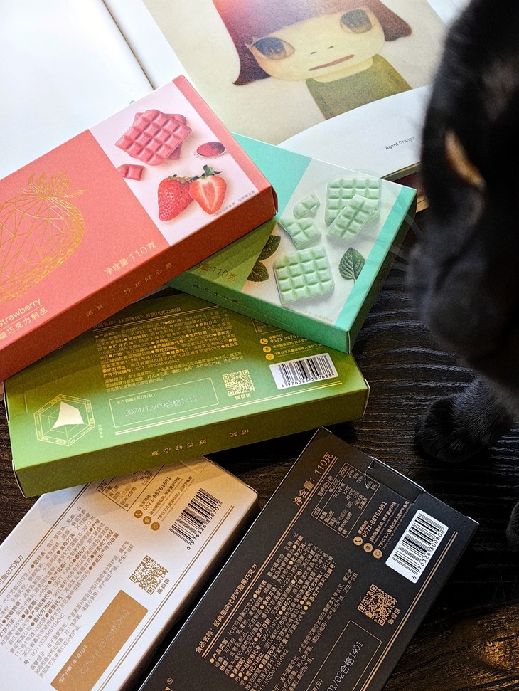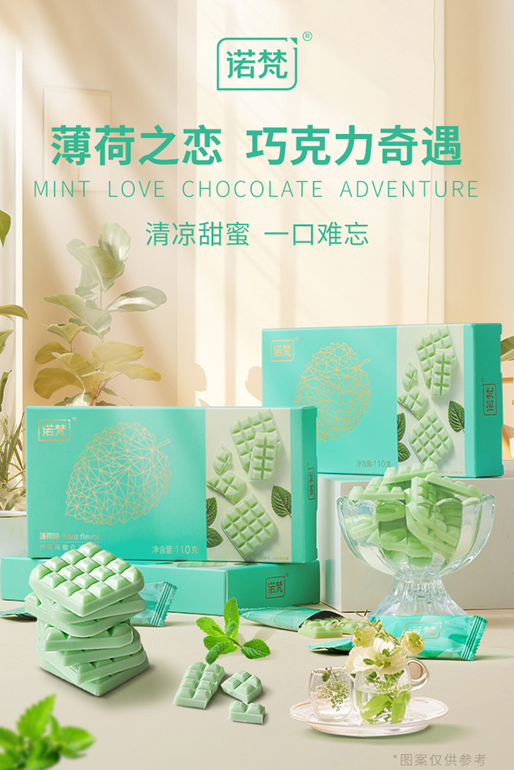 诺梵巧克力系列口味超多!草莓巧克力,清新草莓香气扑鼻而来,入口顺滑浓郁,回味无穷;抹茶巧克力,用的是新鲜研磨的抹茶粉,淡淡的茶香与浓郁的巧克力风味相得益彰;薄荷巧克力,清新薄荷叶与可可的巧妙搭配,带来清爽的薄荷香气,一秒清爽,口味超特别!还有白色的奶香巧克力,新鲜牛奶与可可的经典组合,丝滑口感与丰富层次感让人沉醉!