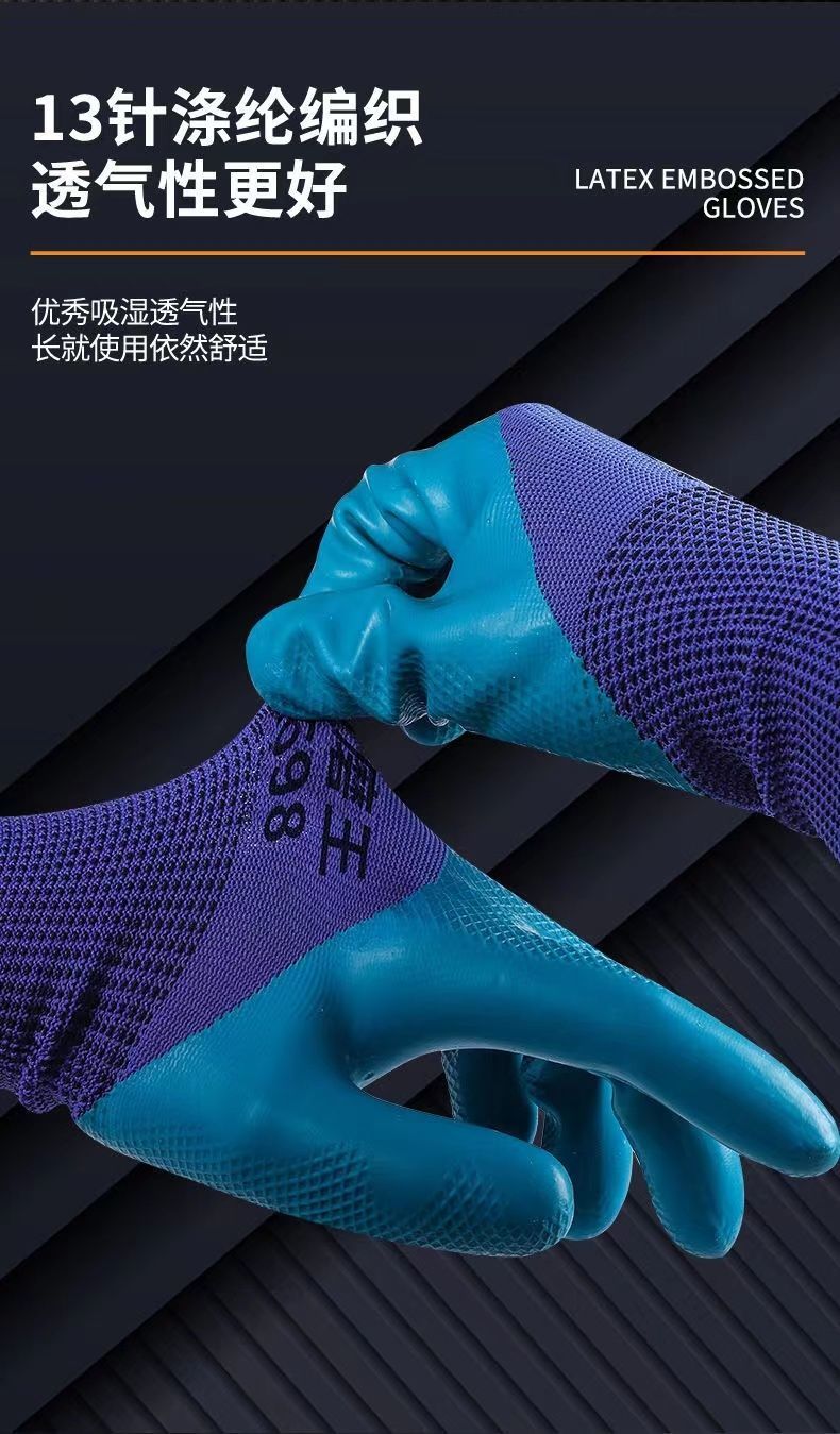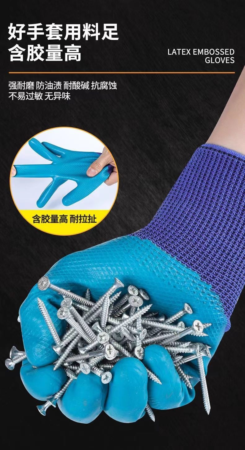 【6双】手套压纹耐磨耐用防滑劳动防护手套