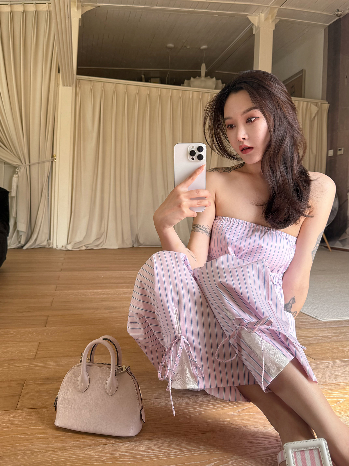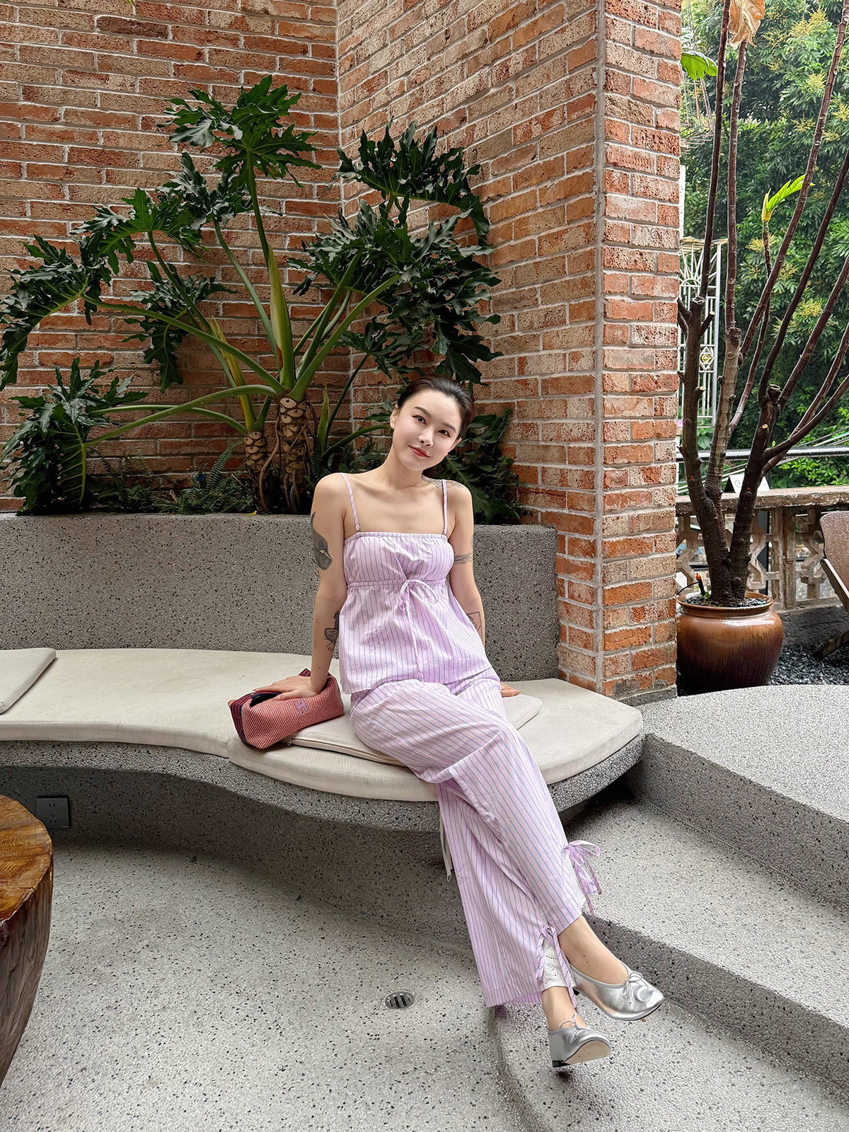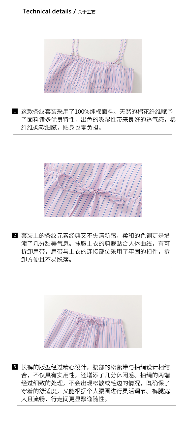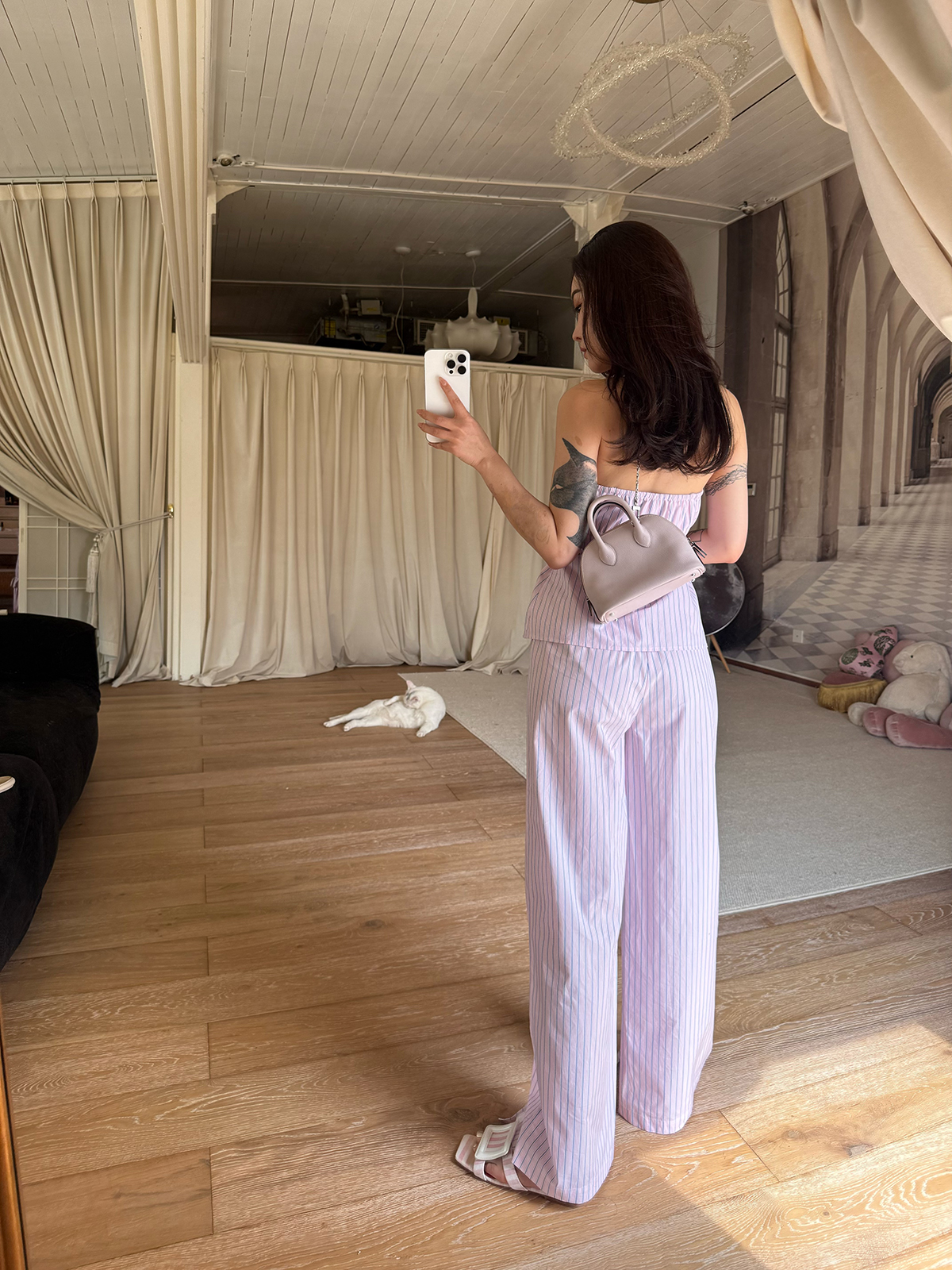 DUO智仙生 粉标 白女美学套装粉红条纹抹胸和阔腿裤