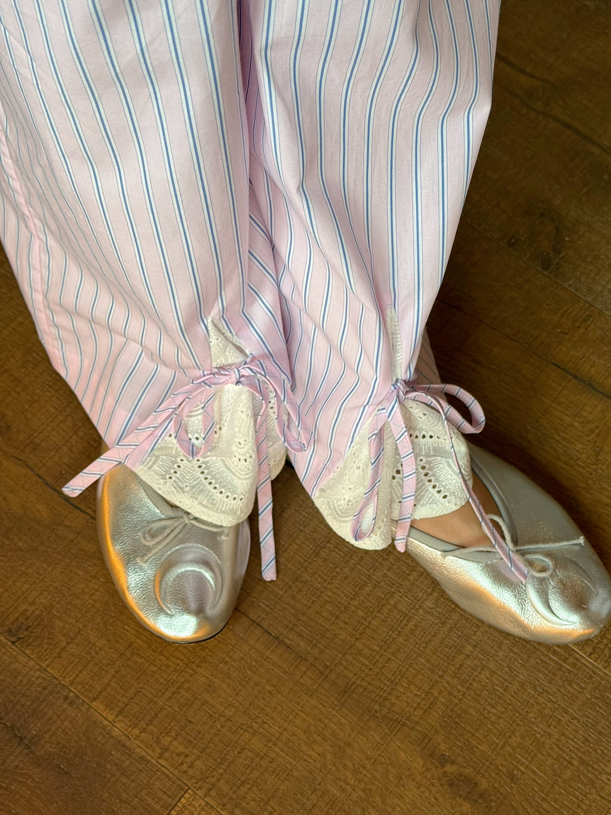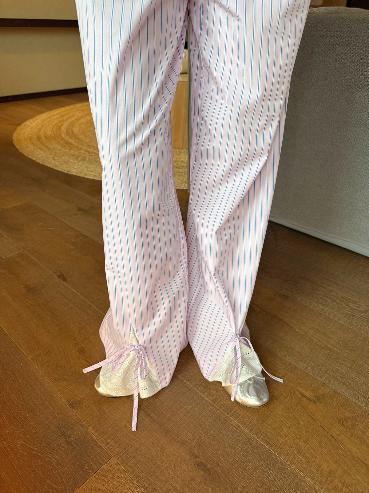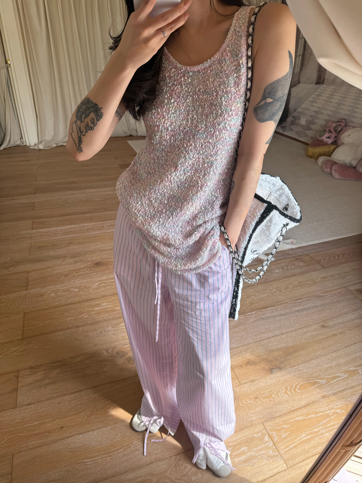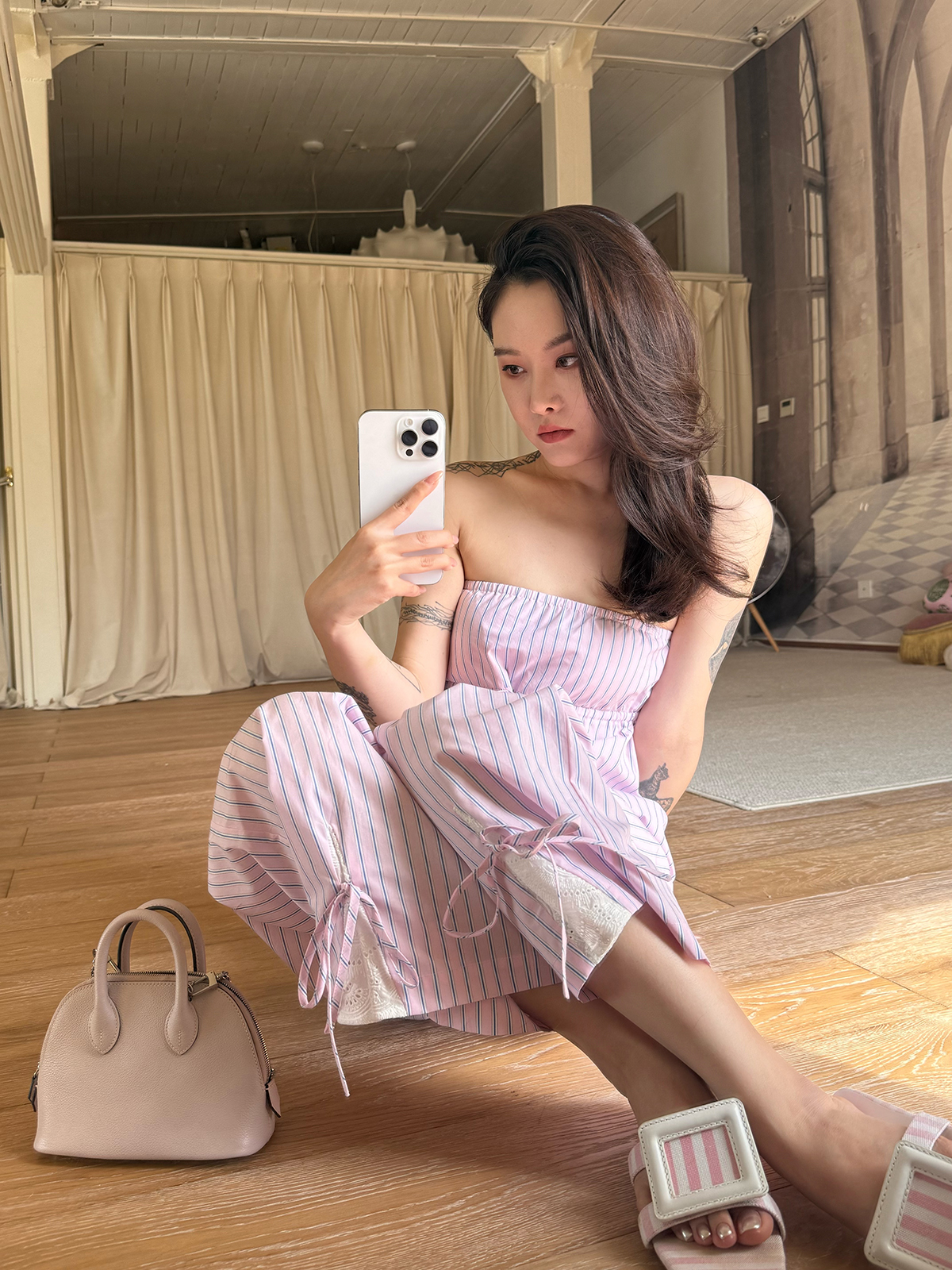 DUO智仙生 粉标 白女美学套装粉红条纹抹胸和阔腿裤