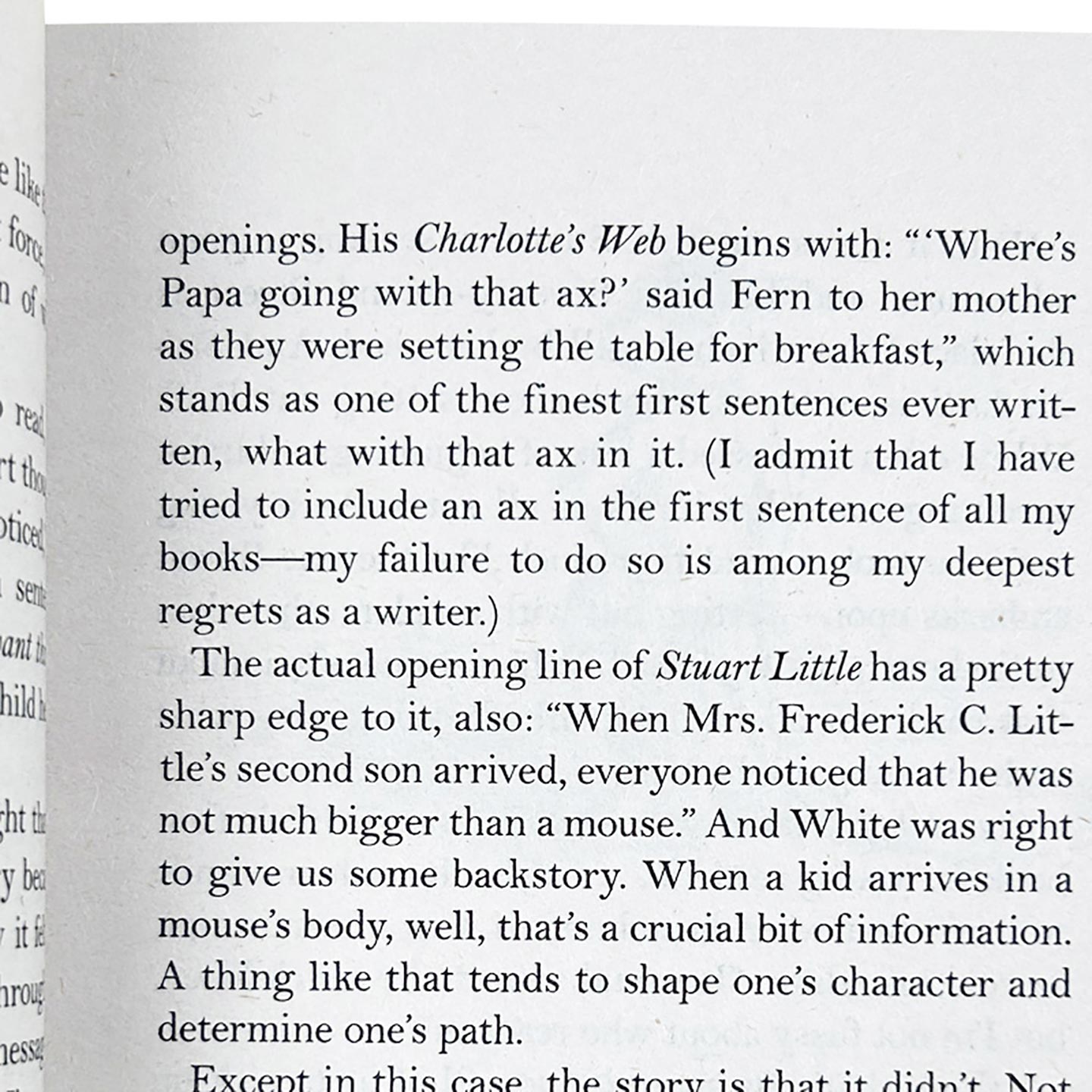 E.B. White, the author of twenty books of prose and poetry, was awarded the 1970 Laura Ingalls Wilder Medal for his children’s books, Stuart Little and Charlotte’s Web. In 1973, it received the Sequoyah Award (Oklahoma) and the William Allen White Award (Kansas), voted by the school children of those states as their "favorite book" of the year. He also received honorary degrees from seven colleges and universities. Mr. White died on October 1, 1985.