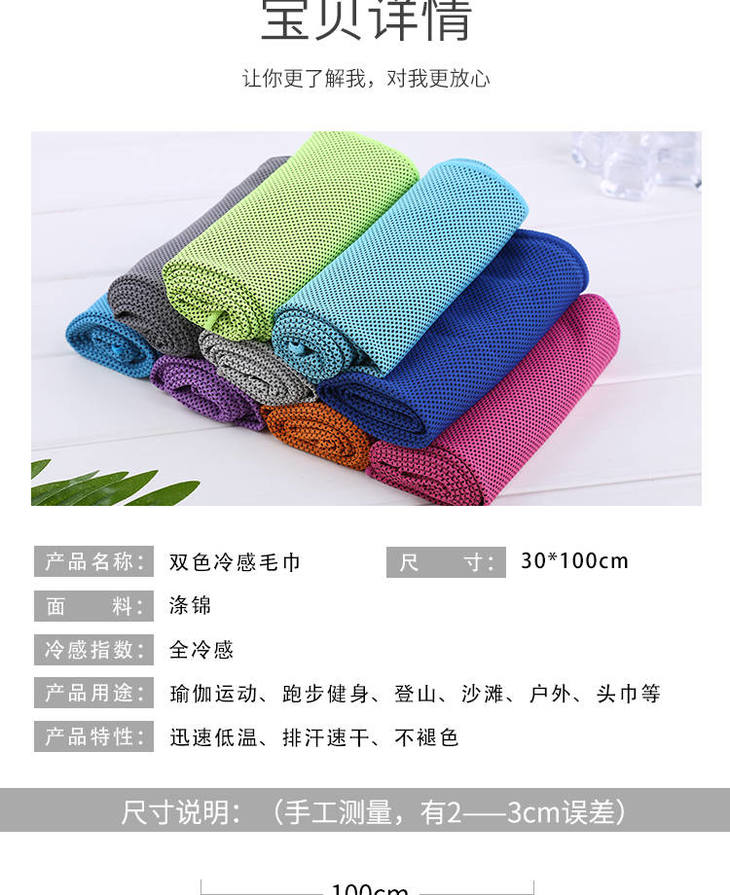 夏季男女健身冷感运动毛巾速干降温冰凉巾双色防暑户外神器吸汗巾