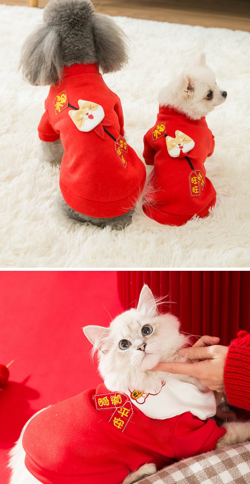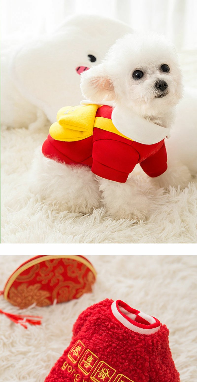 狗狗新年衣服秋冬装泰迪猫咪过年喜庆比熊宠物冬天保暖小型犬加厚