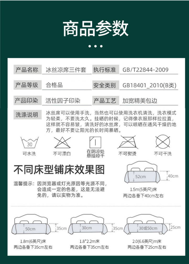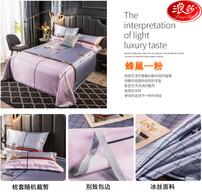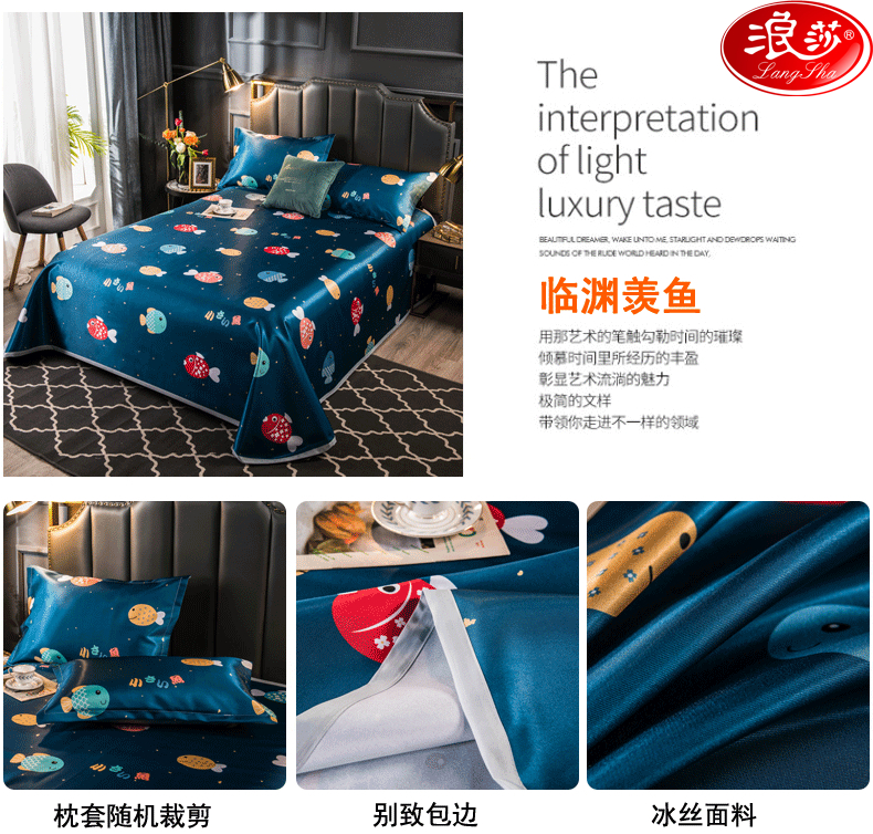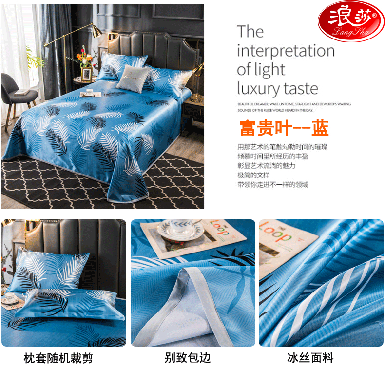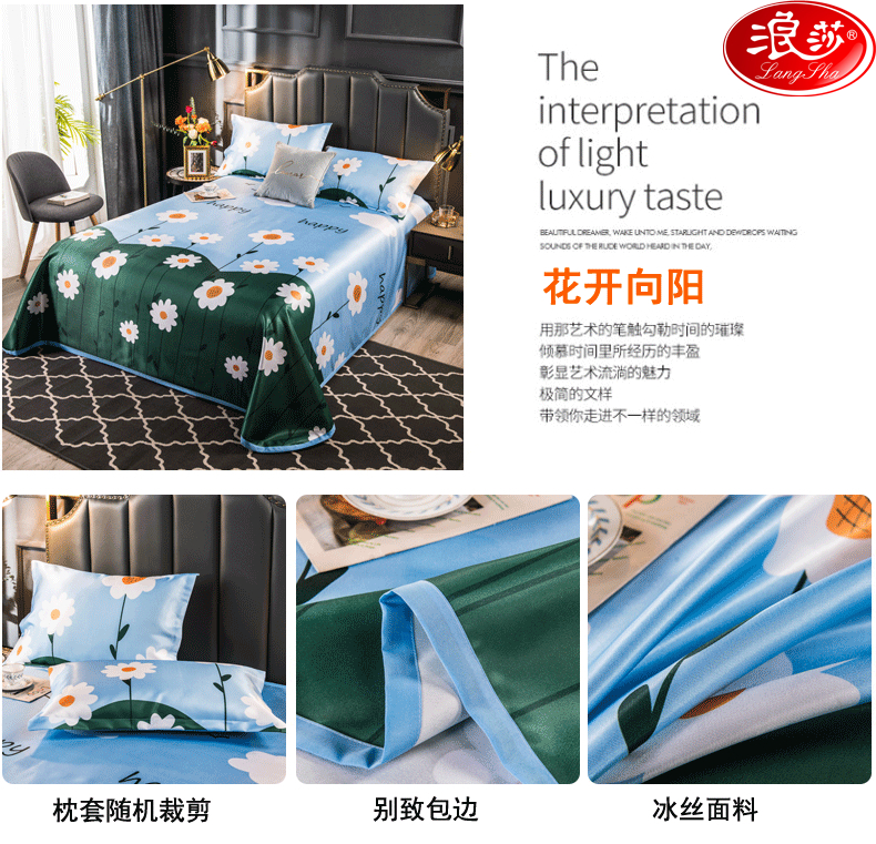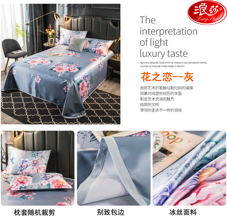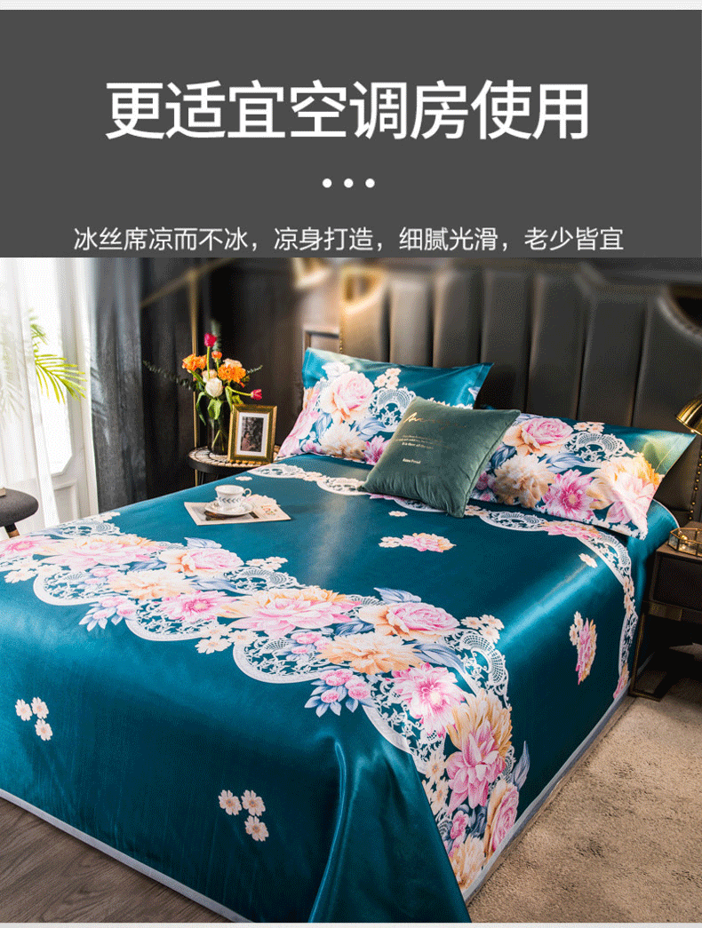浪莎冰丝软凉席三件套可水洗折叠床单式床上用品空调凉席子包邮