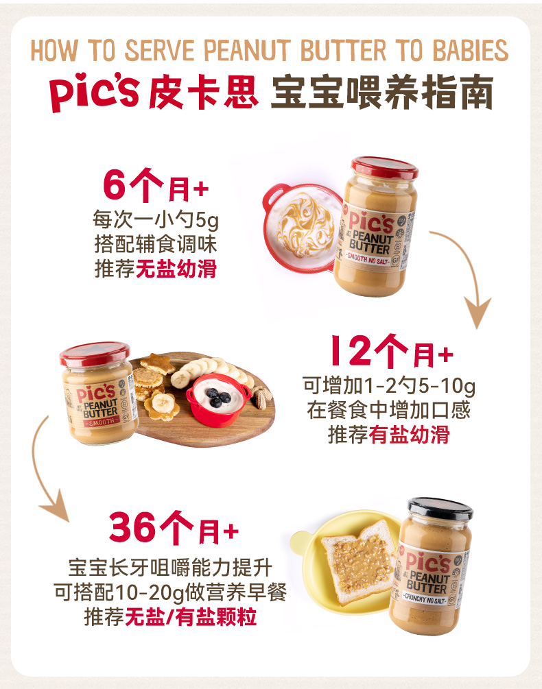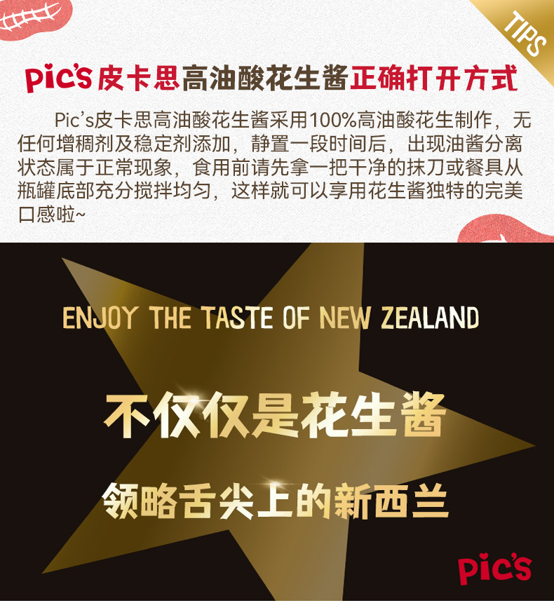 皮卡思Pic's 新西兰花生酱 高蛋白 低GI 营养丰富 多口味选择 宝宝辅食理想之选 全家共享