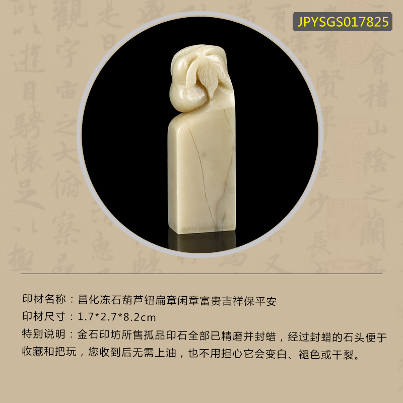 孤品17825昌化冻石葫芦钮扁章闲章富贵吉祥保平安1.7*2.7*8.2cm
