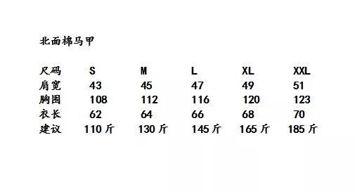 TNF北面情侣款刺绣LOGO棉衣背心马甲