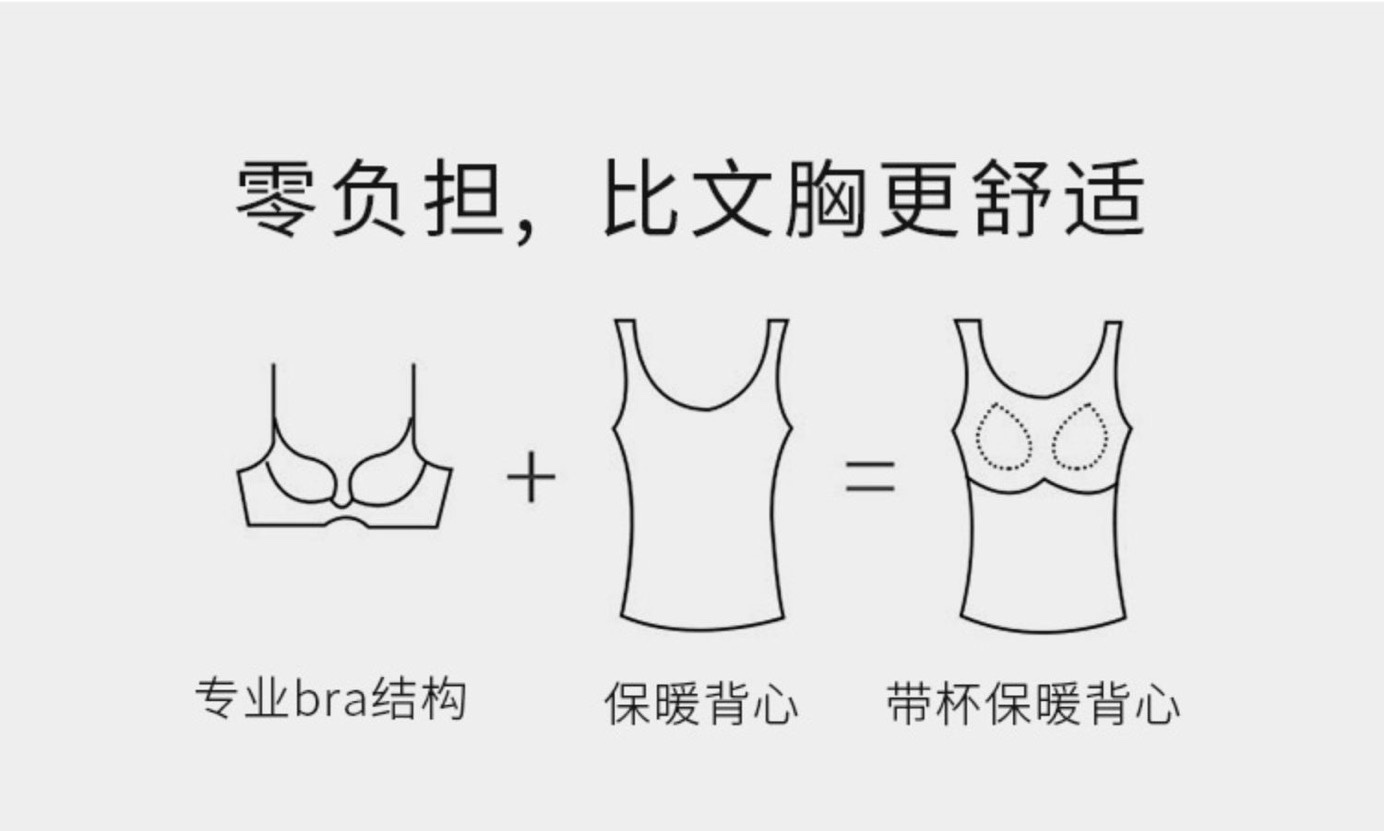 bra+保暖背心一体设计,一件顶多件,化繁为简,高效保暖。
