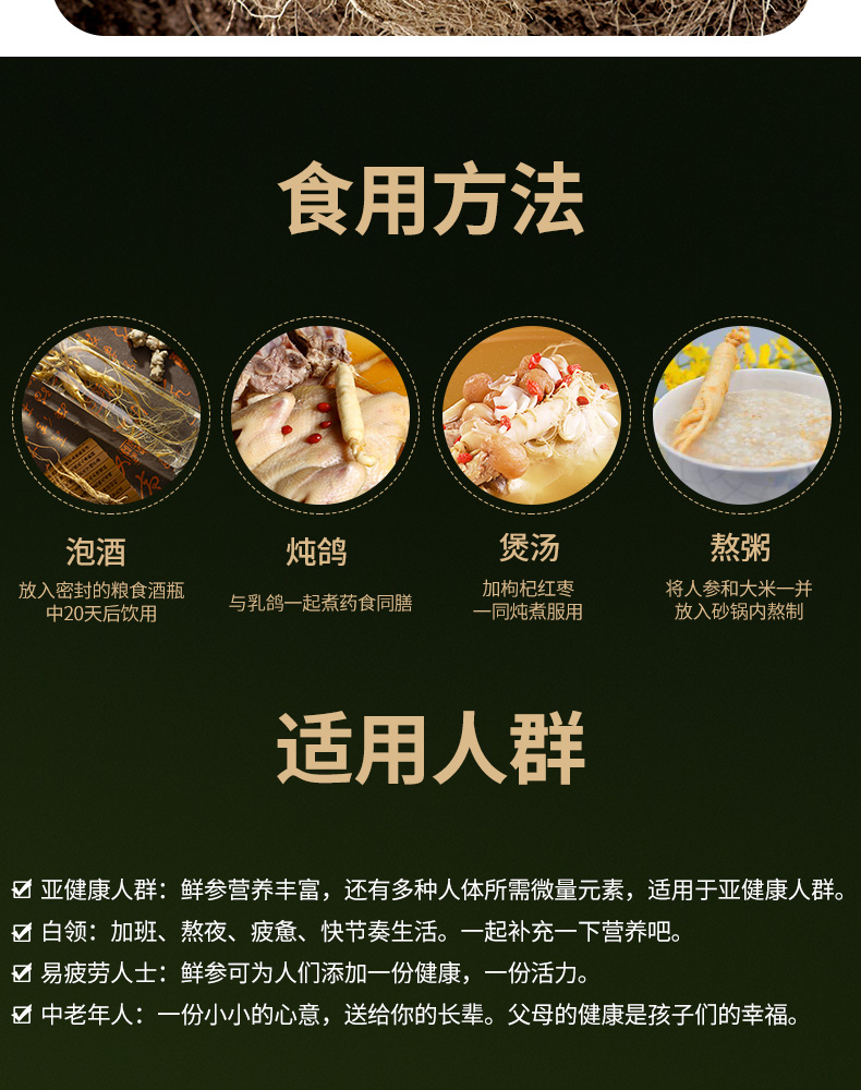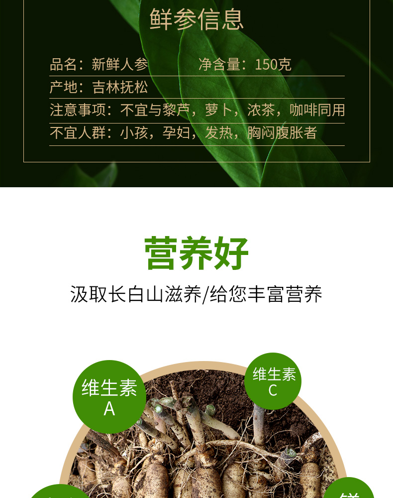 【吉林 • 长白山鲜人参】 鲜人参更健康 秋冬滋补不上火 切一片鲜参 炖一只鸡 一锅参汤 全家一参健康