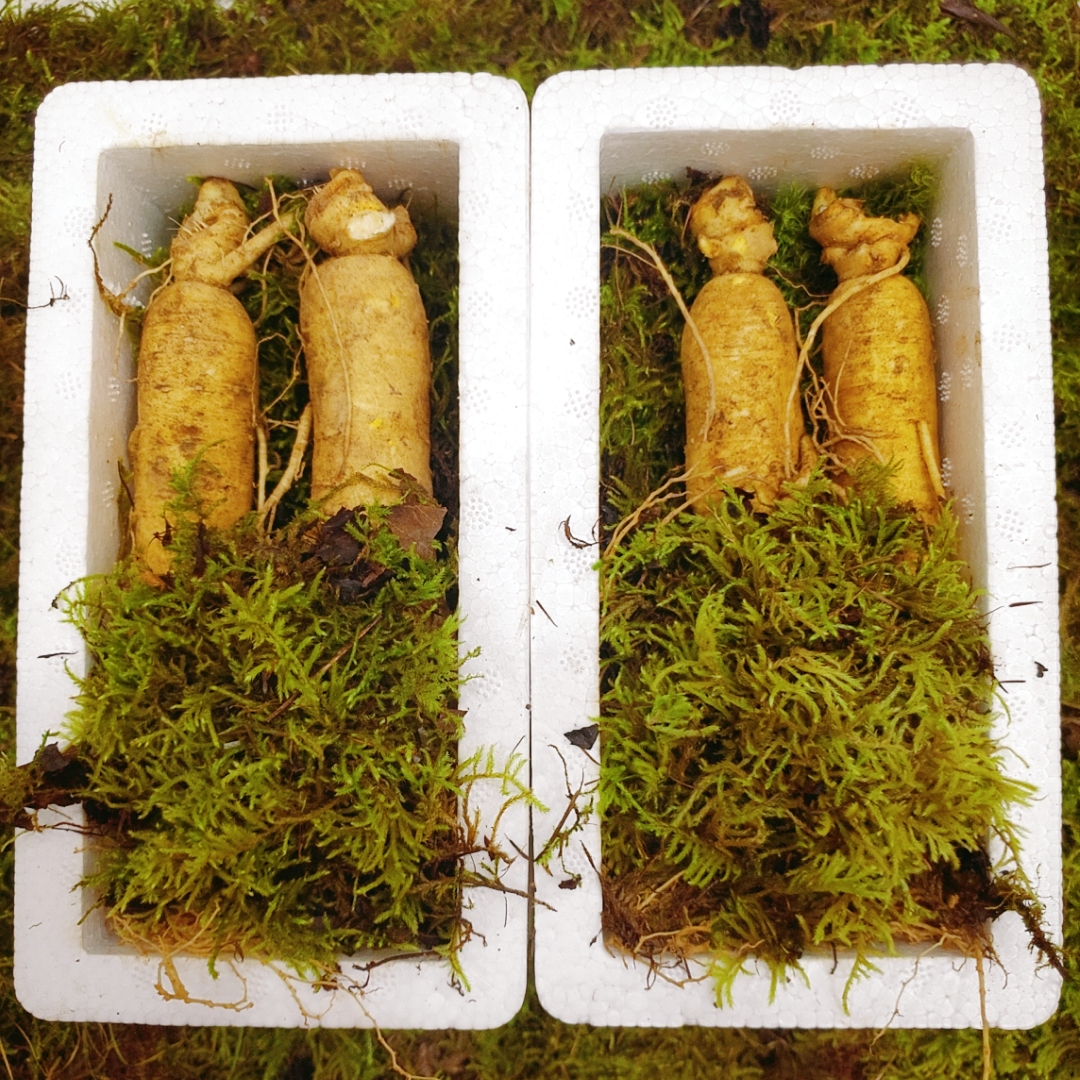 品名:长白山鲜人参 规格1:1盒装150g(5-6支装) 规格2:1盒装150g(3支装) 规格3:1盒装150g(2支装) 规格4:1盒精品礼盒装200g(2支装) 注:【1盒装150g(5-6支装),单只重量:25-30g;1盒装150g(3支装),单只重量:50g左右;1盒装150g(2支装),单只重量:75g左右;1盒精品礼盒装200g(2支装),单只重量:100g左右】 包装: 泡沫箱+青苔 快递: 极兔快递 发货时效:48小时 运费模板:新疆、西藏、港澳台不发货;其他地区包邮。 发货地/产地:吉林省白山市 售卖期:9月-次年4月 周天、节假日除外,早上11点之前的订单是48小时发货 ,到货时间约为2-5天,请您耐心等待 。