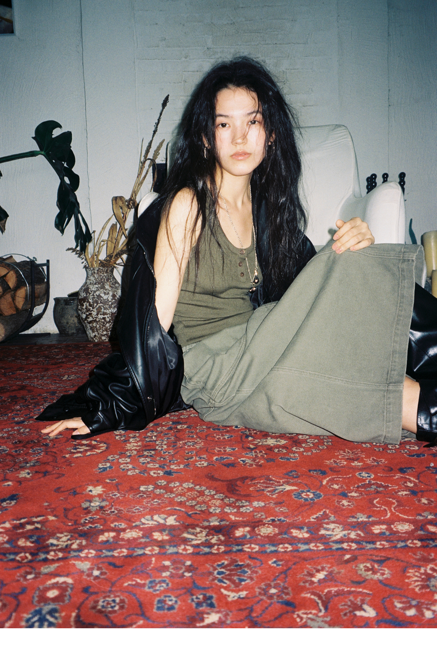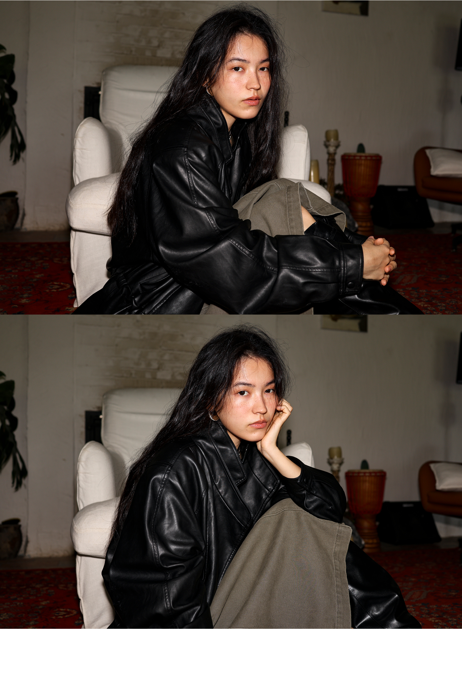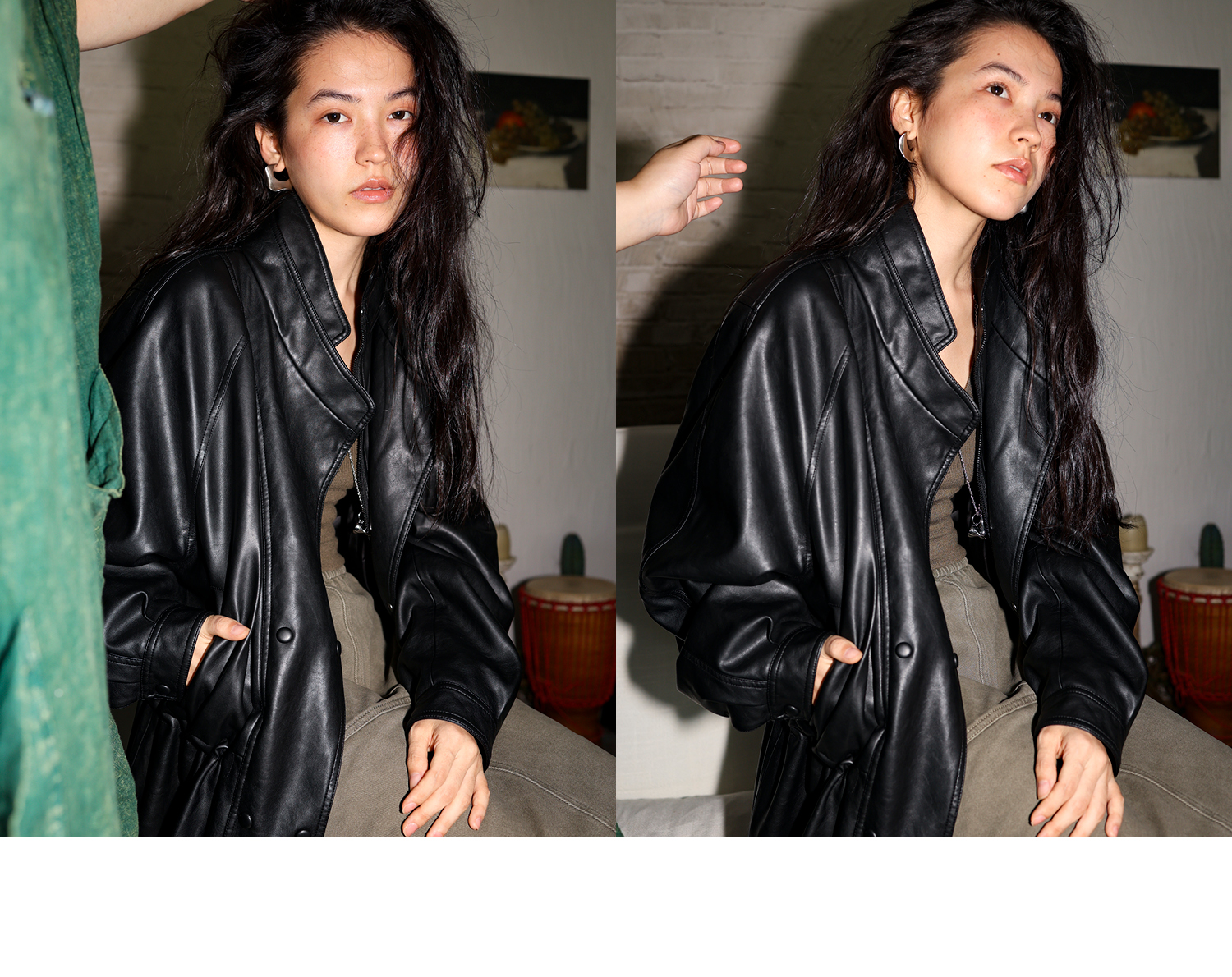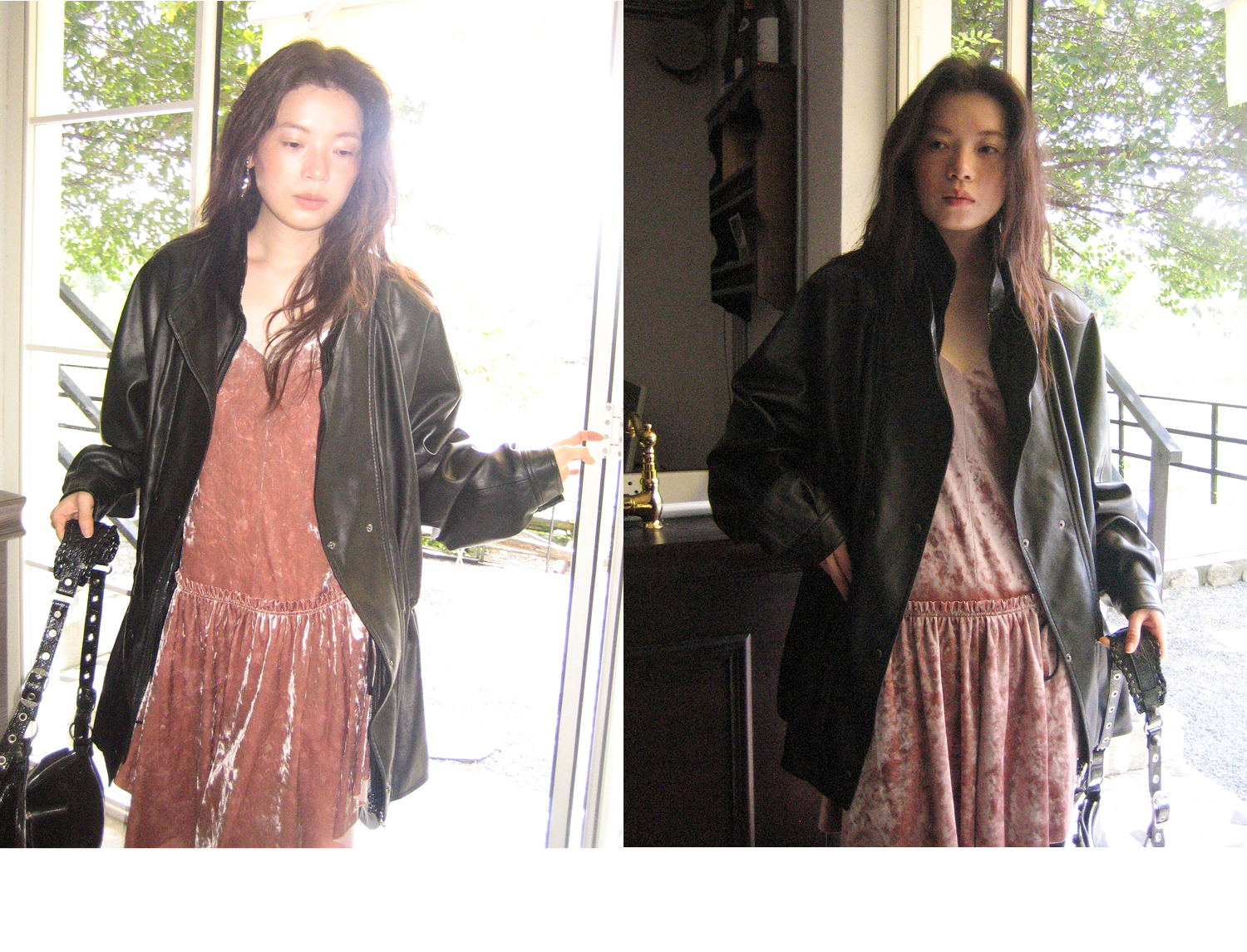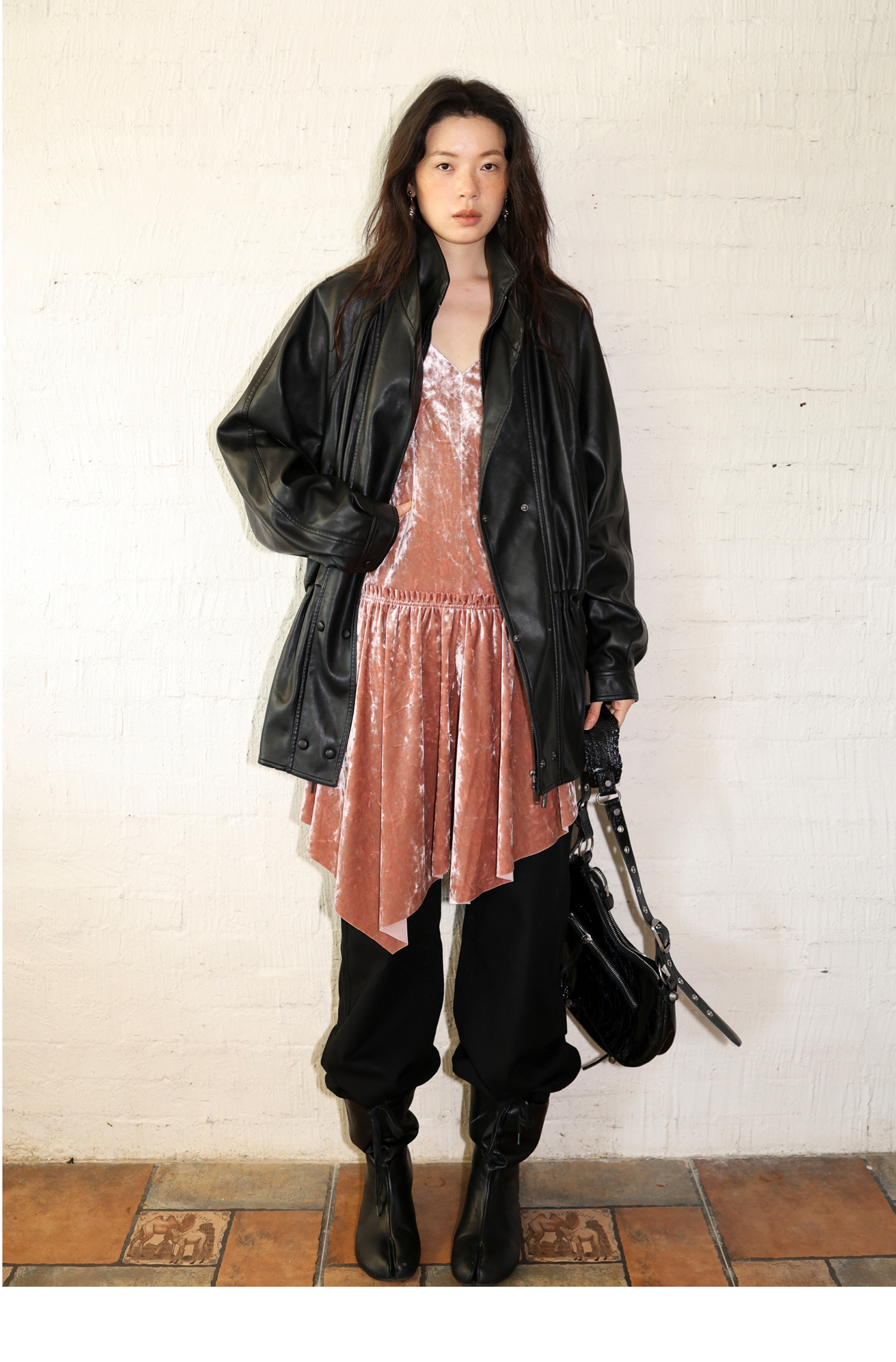 素舶 环保哑光轻洗水抽绳收腰双层立领皮衣夹克
