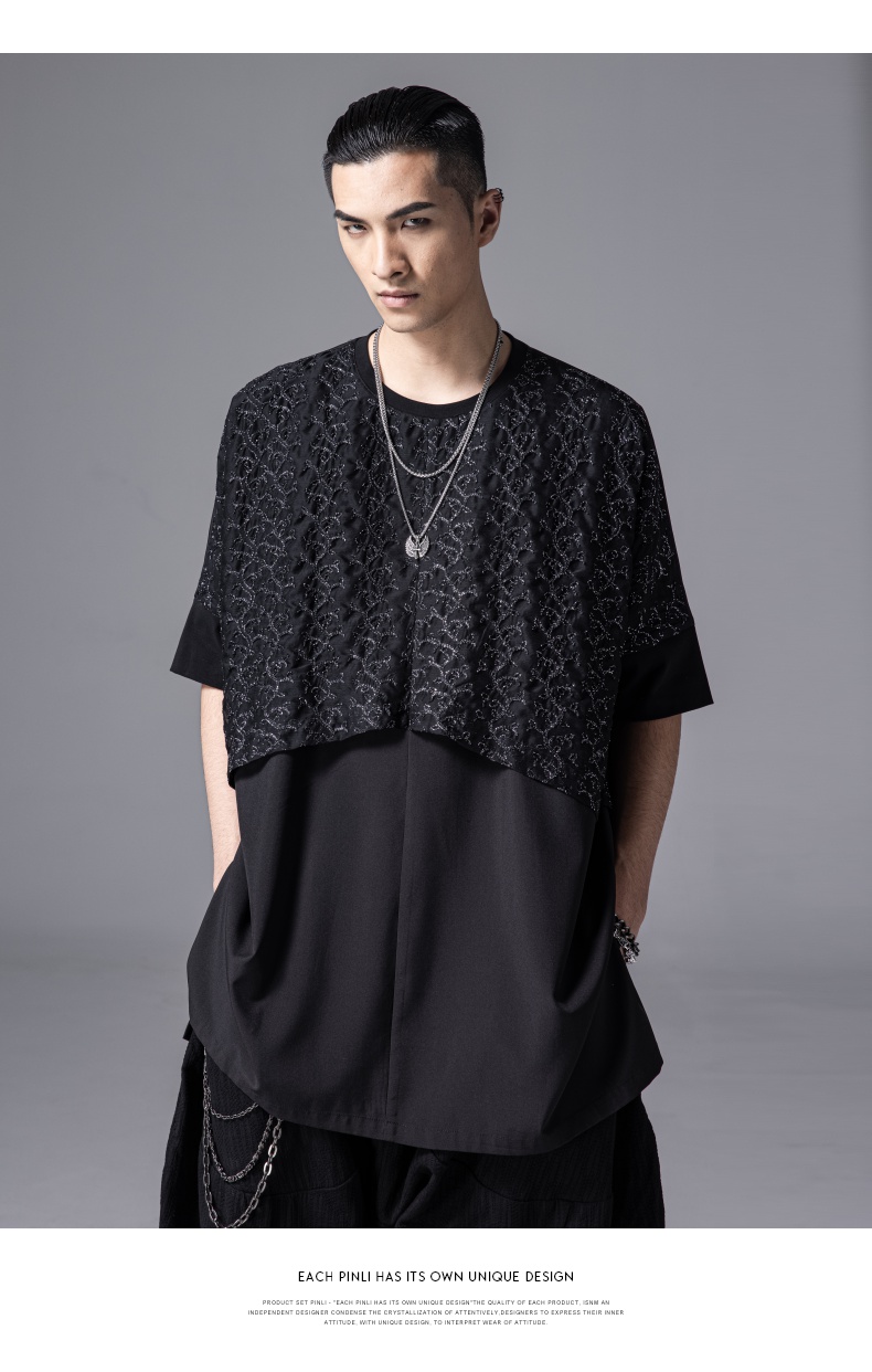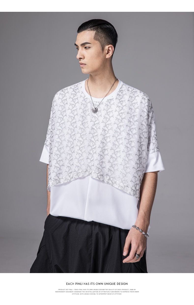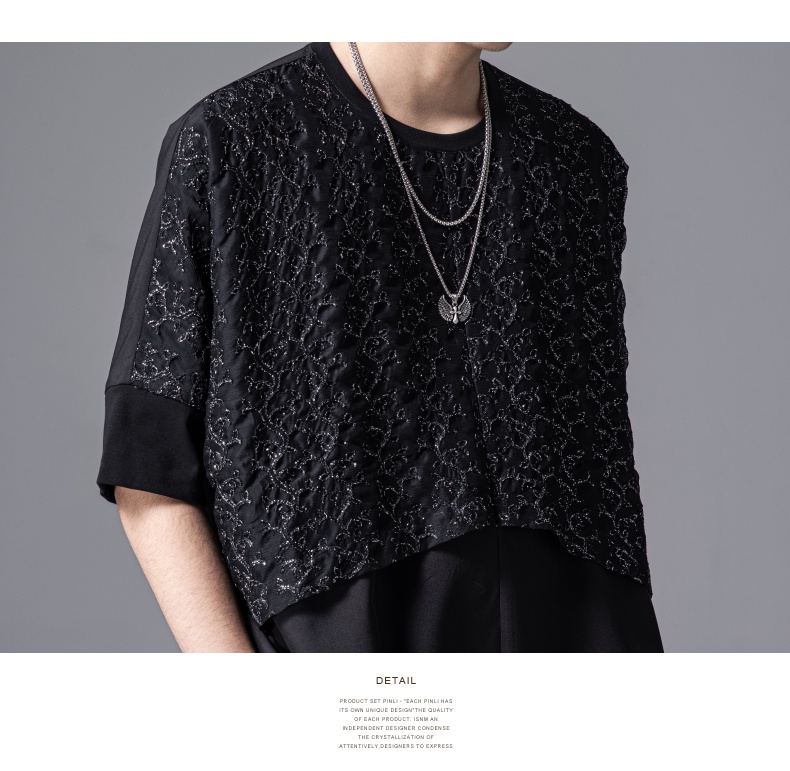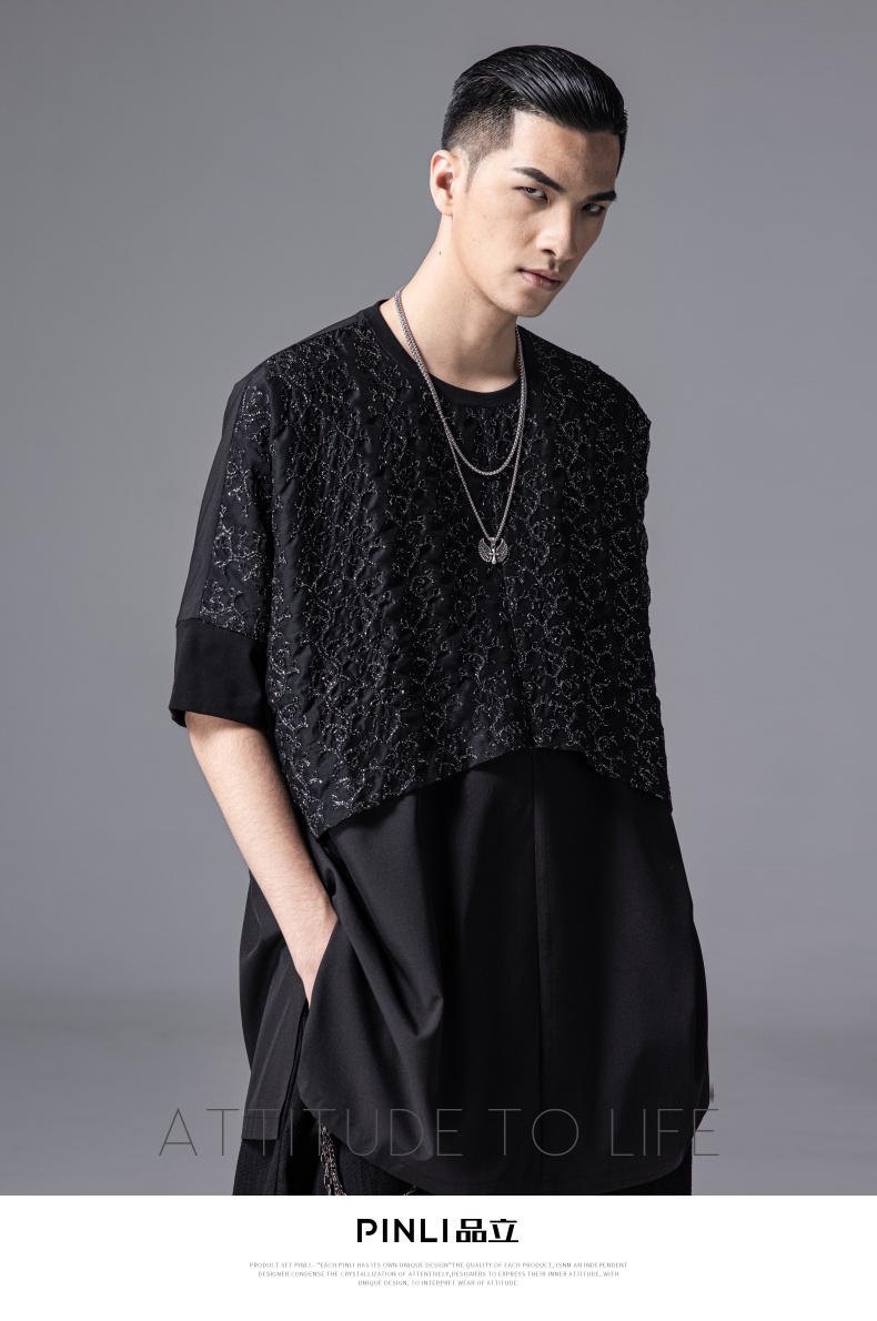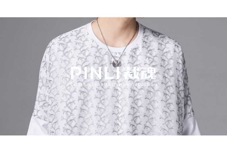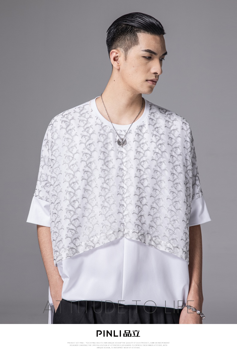 PINLI品立裁魂春季新款宽松提花短袖T恤男士上衣BC211111066
