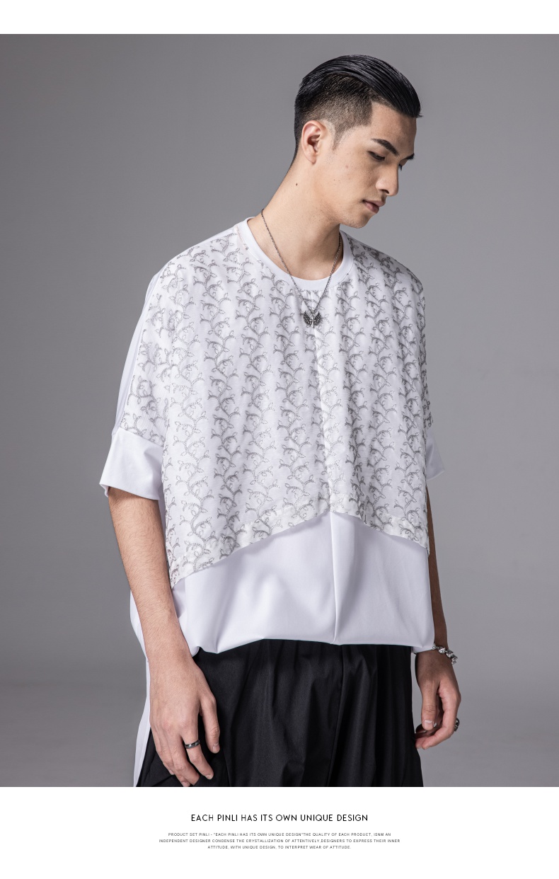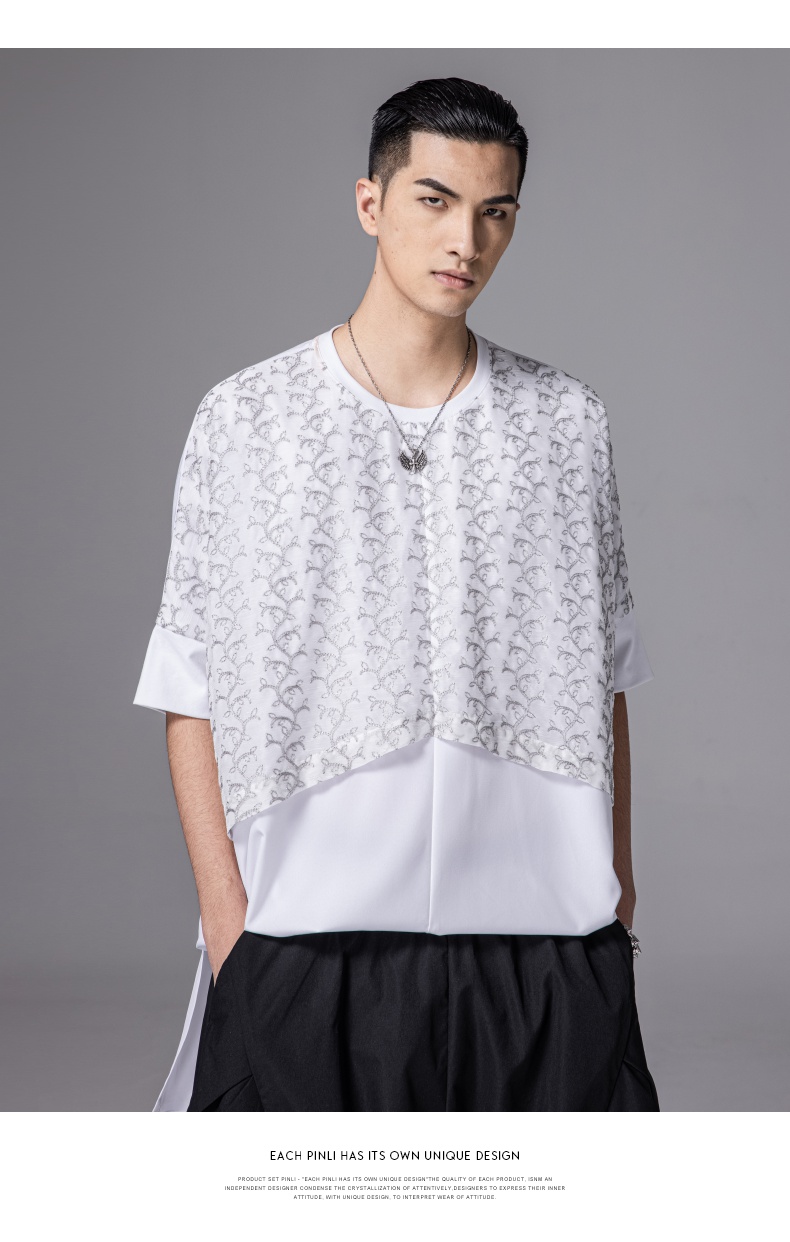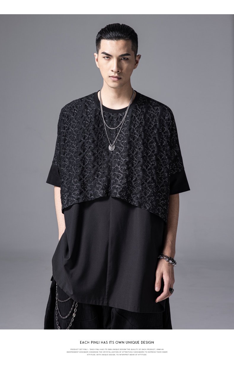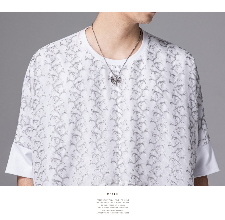 PINLI品立裁魂春季新款宽松提花短袖T恤男士上衣BC211111066