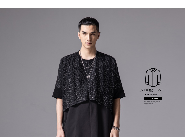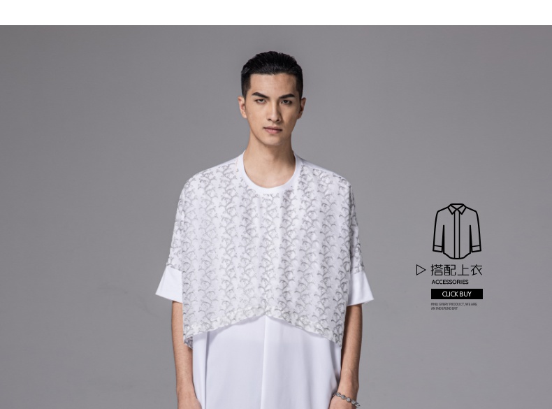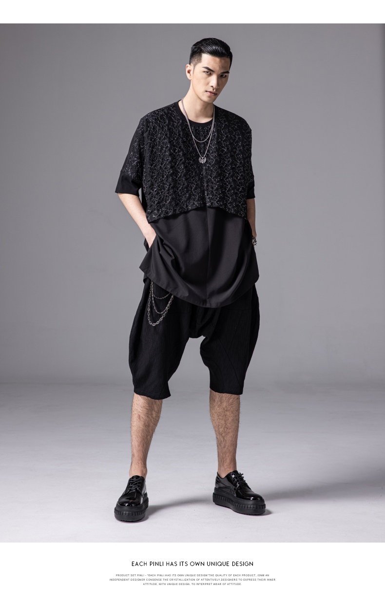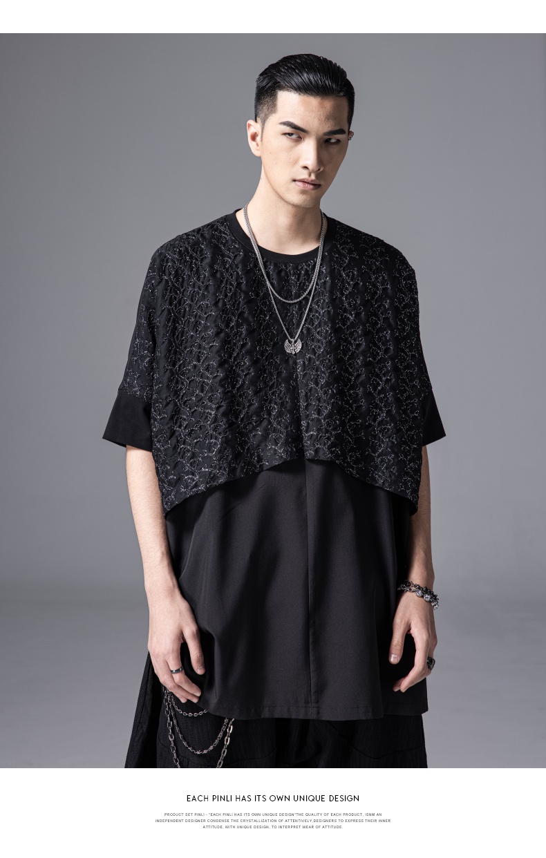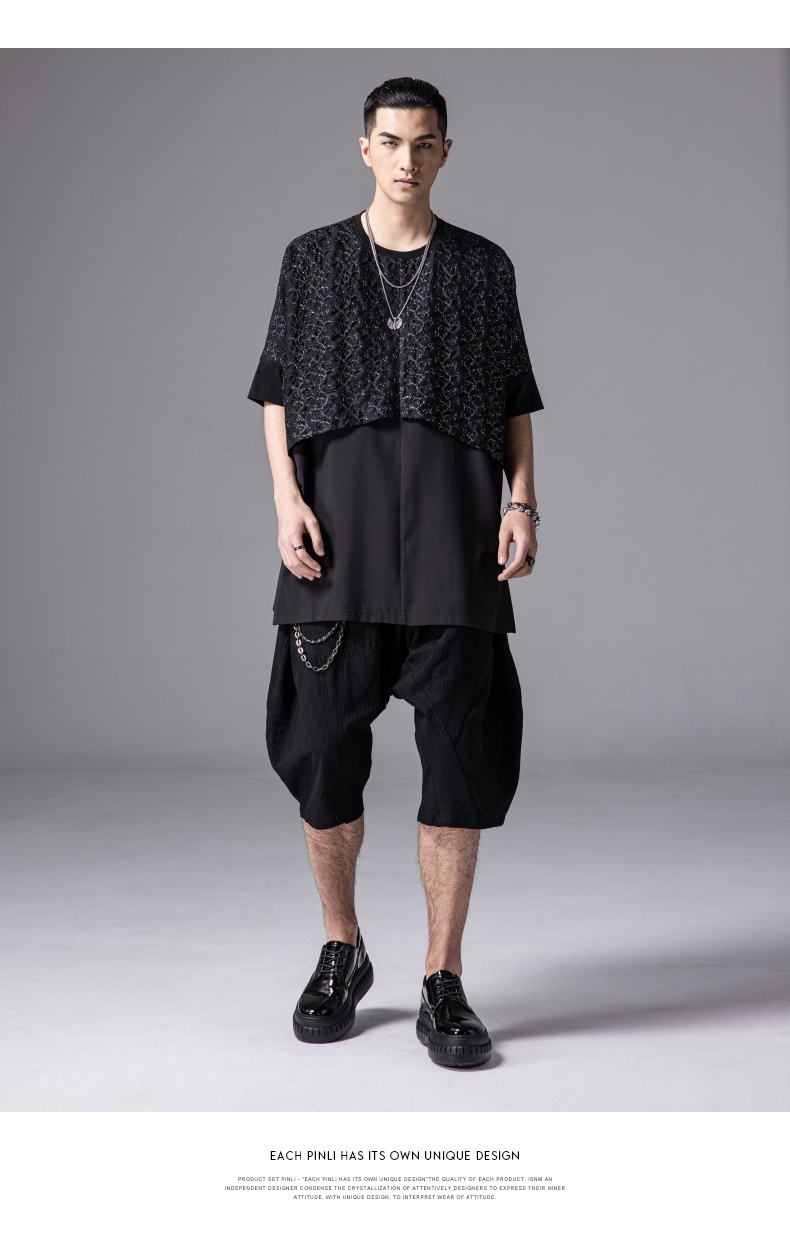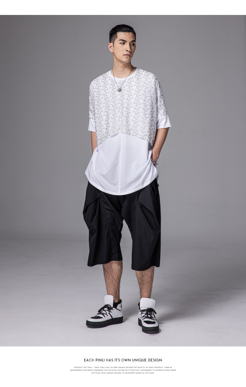 PINLI品立裁魂春季新款宽松提花短袖T恤男士上衣BC211111066
