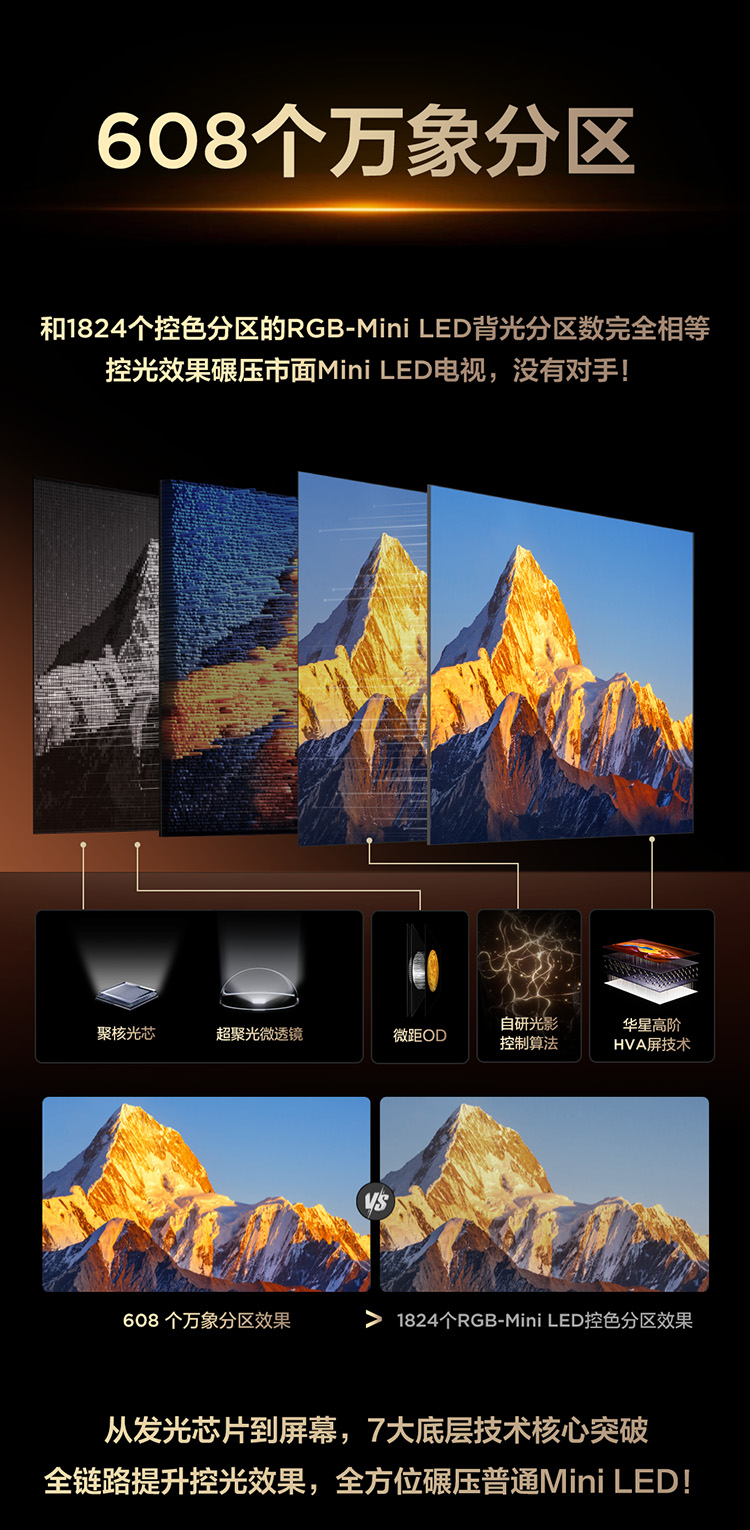 TCL电视 65T7L 65英寸 QD-Mini LED 华星高阶HVA屏 万象分区 绚彩XDR 2200nits 超薄电视